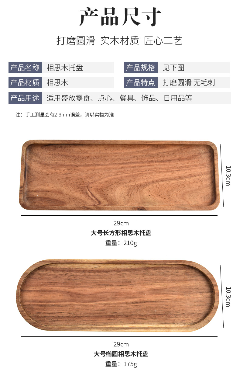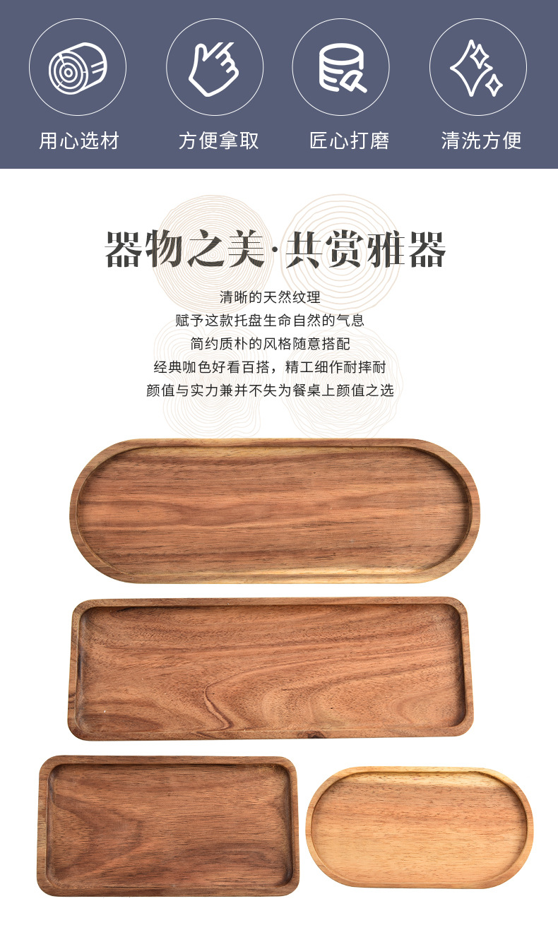 아카시아 나무 트레이 단단한 나무 크리 에이 티브 과일 트레이 멜론 씨앗 트레이 사각형 타원형 커피 트레이 스낵 스낵 트레이 제조 업체 재고 있음
