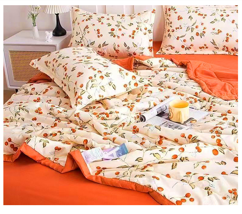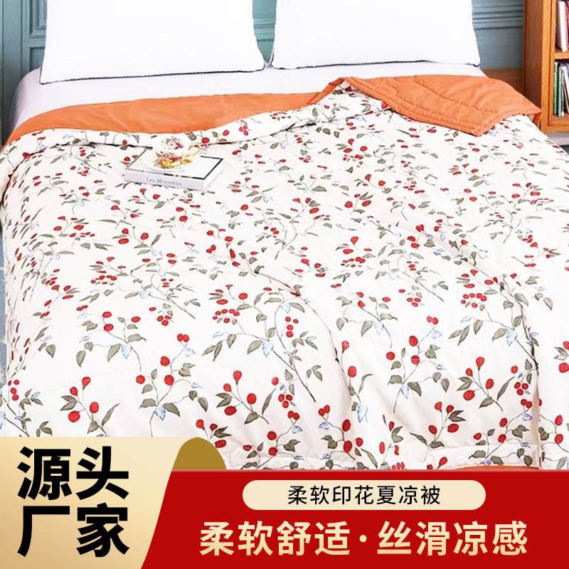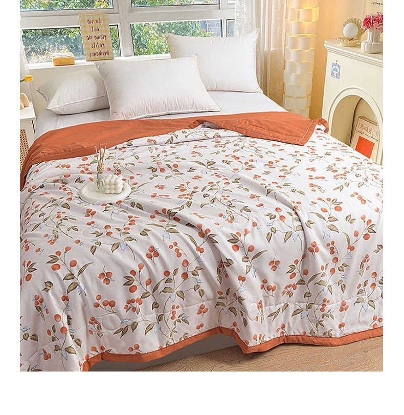 여름용 이불, 워싱 코튼 프린트 여름 이불, 세탁기 사용 가능, 싱글/더블 에어컨 이불, 얇고 시원하며 통기성 좋음