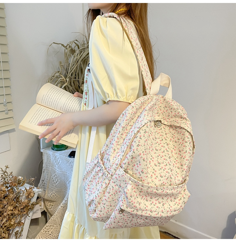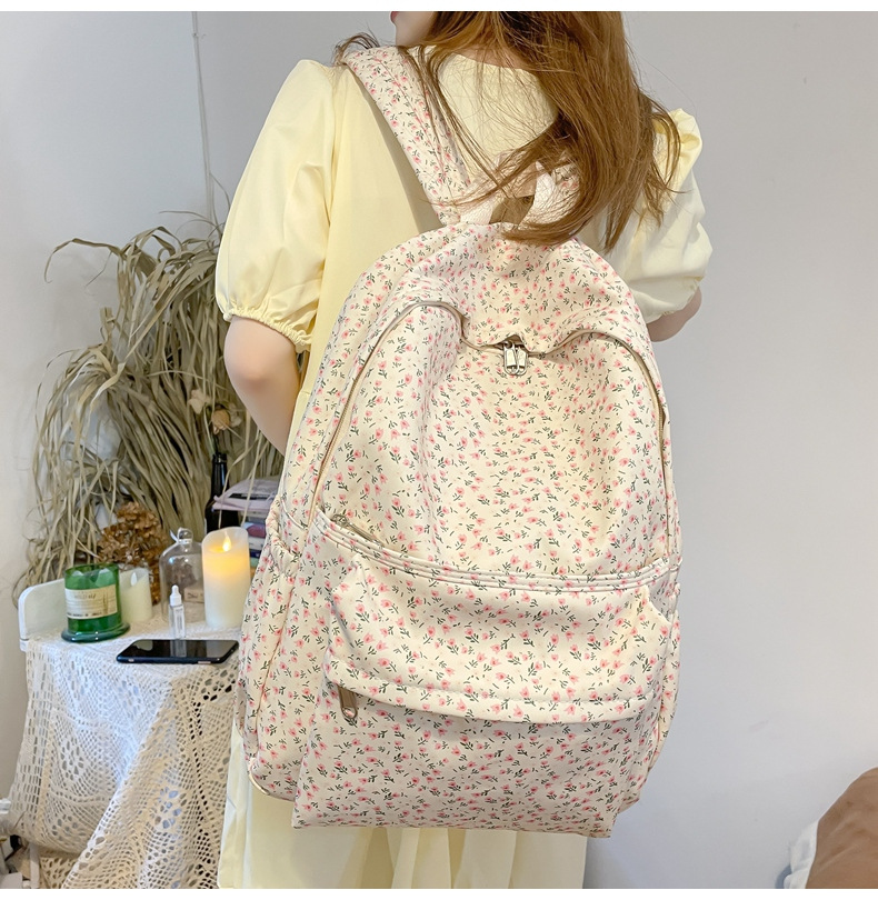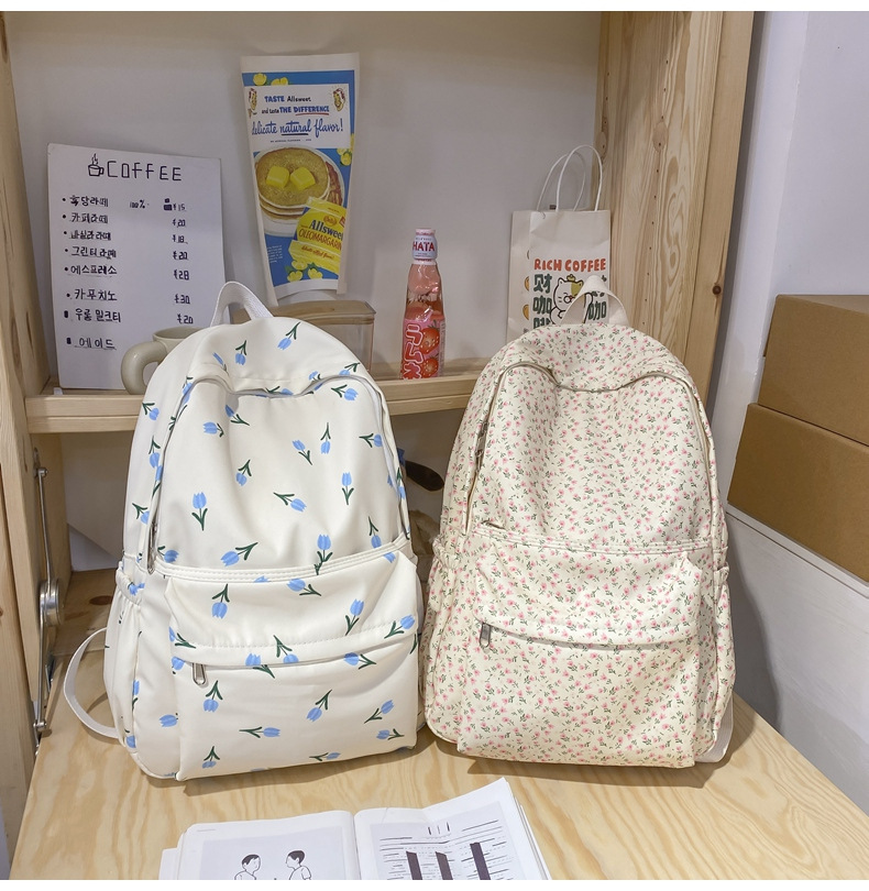 일본 ins 문학 작은 신선한 꽃 가방 배낭 대학 스타일 소녀 학교 가방 대학생 여행 배낭 여성스토어 가기