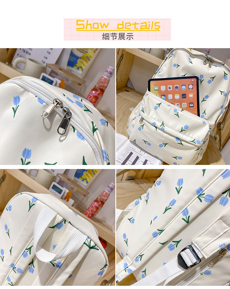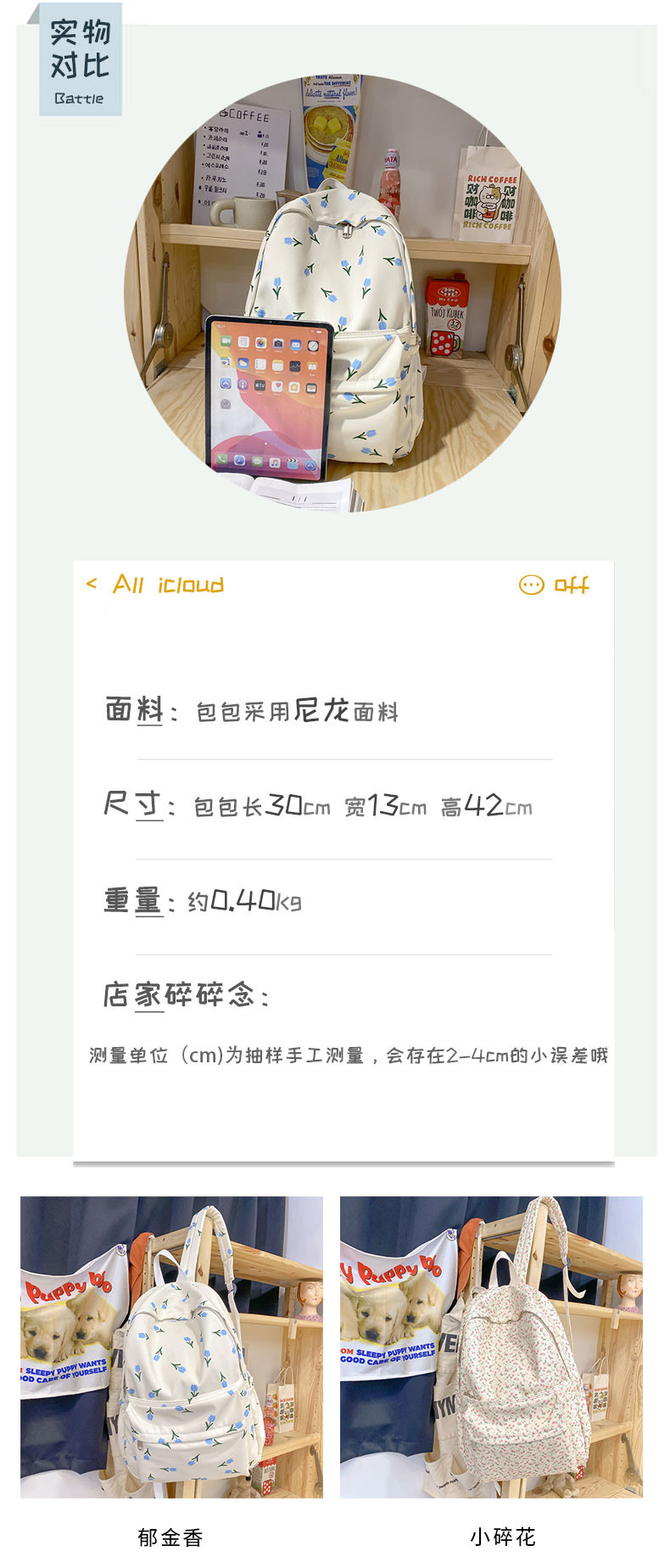 일본 ins 문학 작은 신선한 꽃 가방 배낭 대학 스타일 소녀 학교 가방 대학생 여행 배낭 여성