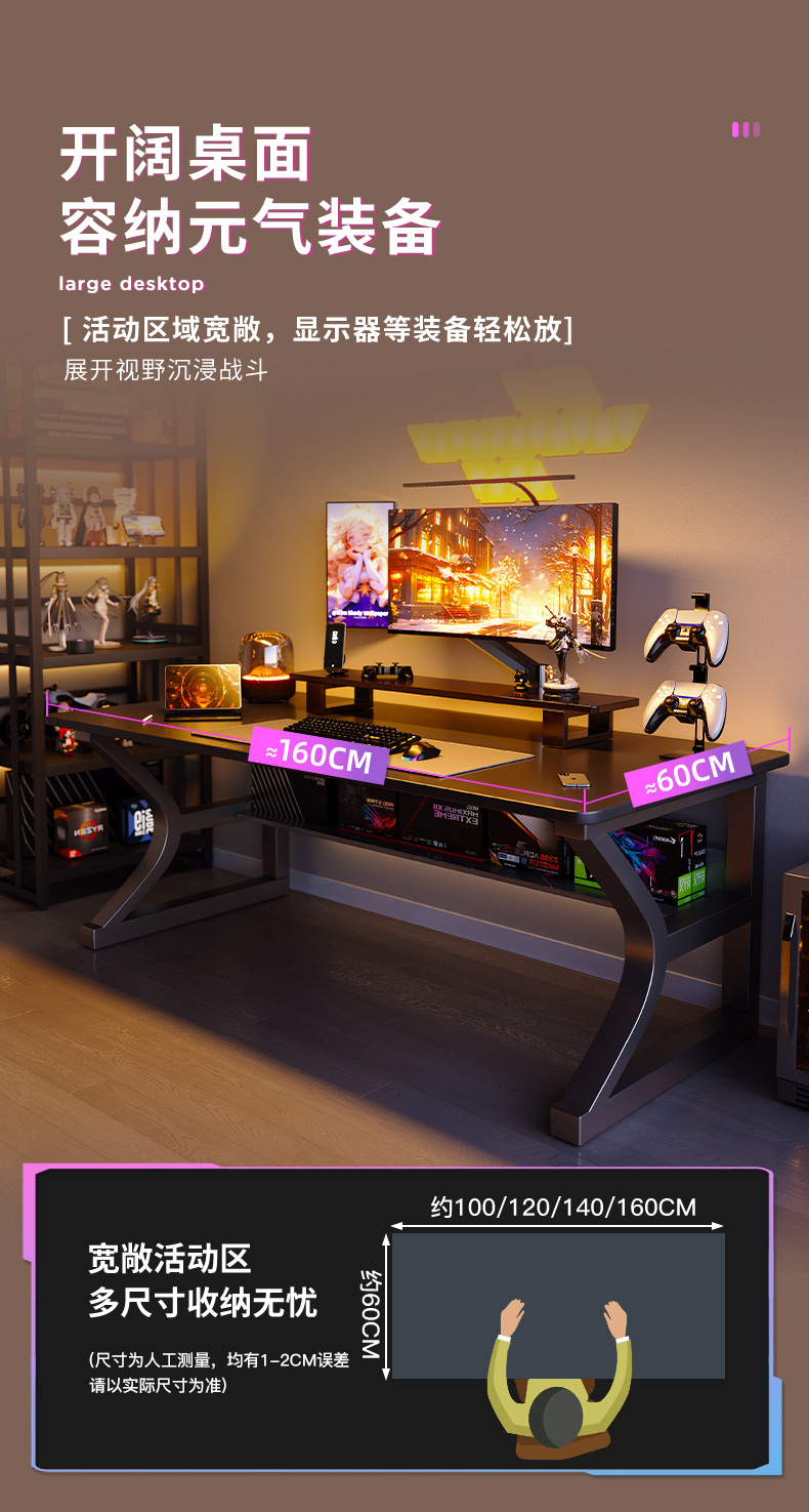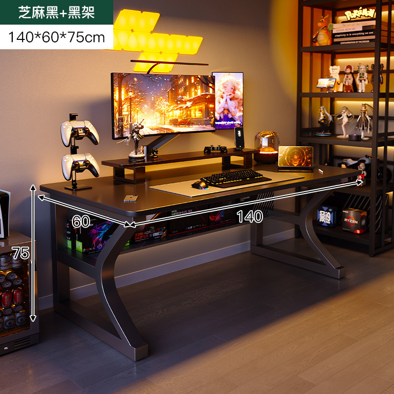 • [두꺼운 40*20mm C자형 강철다리] 블랙 140*60cm (테이블 하부선반으로 강화된 가로판)