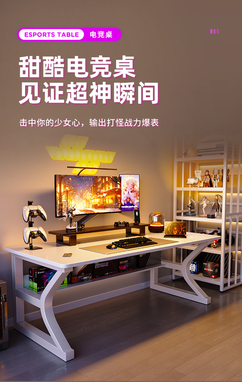 白色电脑桌台式家用电竞桌卧室书桌写字桌简约工作台成人办公桌子
