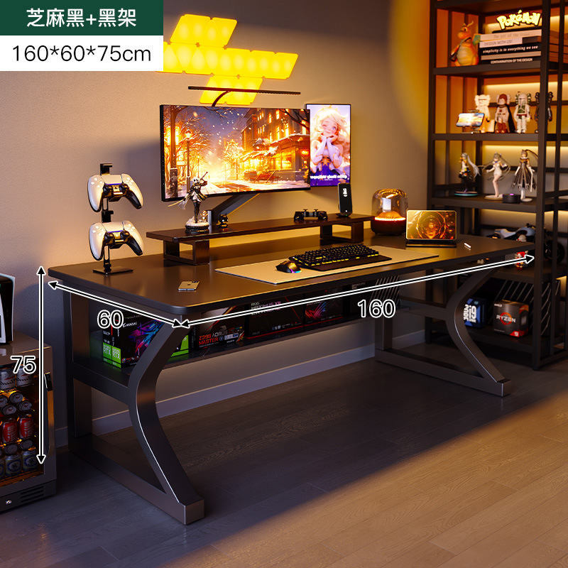 • [굵은 40*20mm C자형 강철다리] 블랙 160*60cm (테이블 하부선반으로 보강된 가로판)