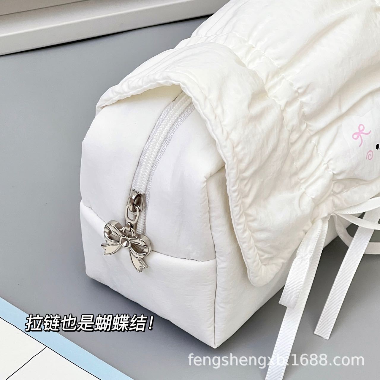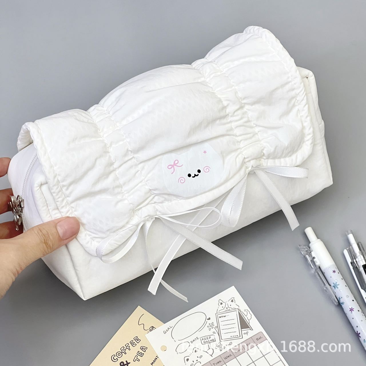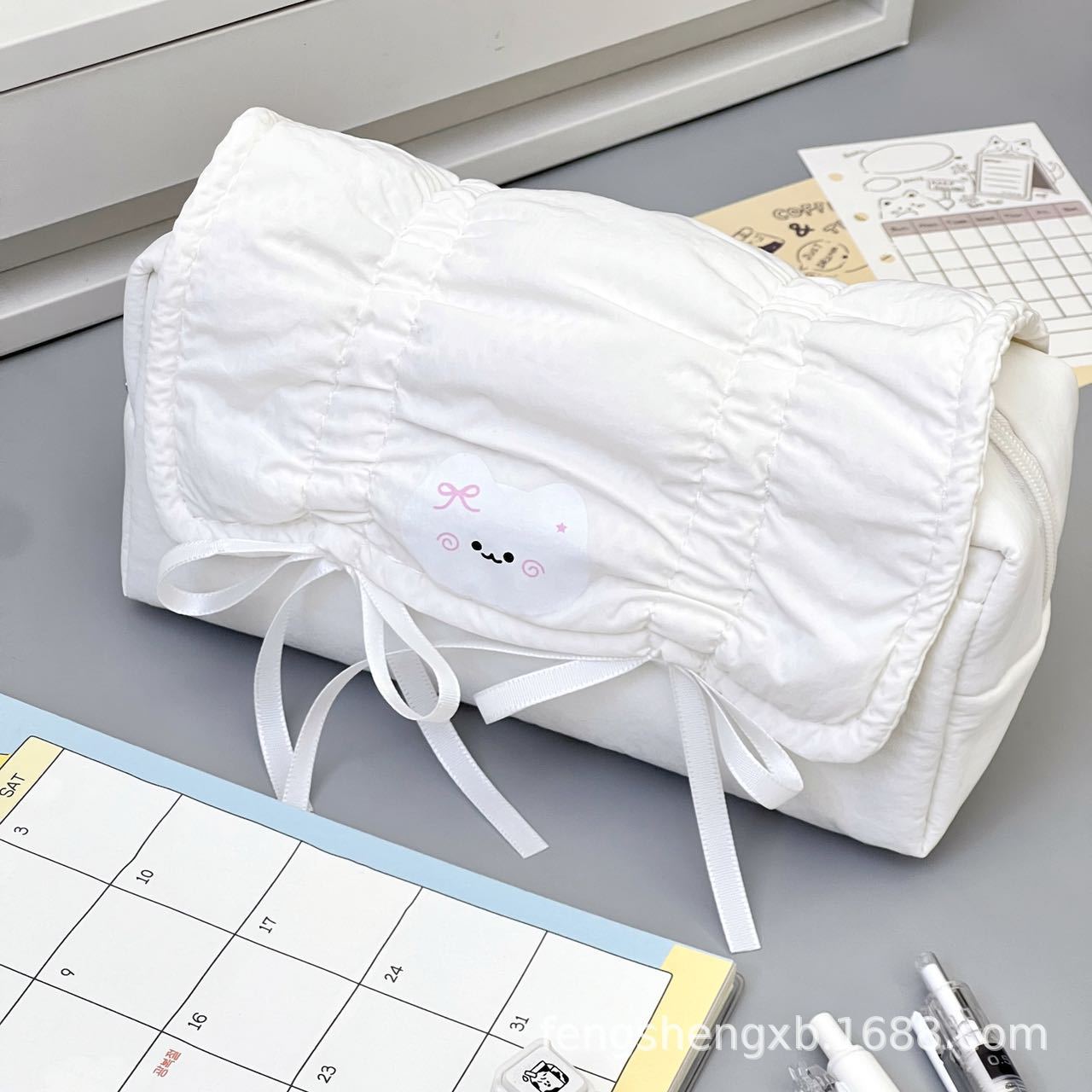 Ins 스타일 솔리드 컬러 부드러운 새끼 고양이 풀 아웃 보우 펜 가방 발레 스타일 대용량 학생 문구 보관 가방스토어 가기
