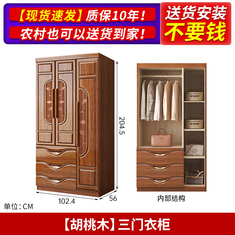 새로운 중국 스타일의 호두 나무 옷장 조각 단단한 나무 마스터 침실 홈 3, 4, 5, 6 도어 개방형 조합 저장 옷장스토어 가기