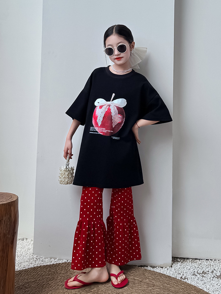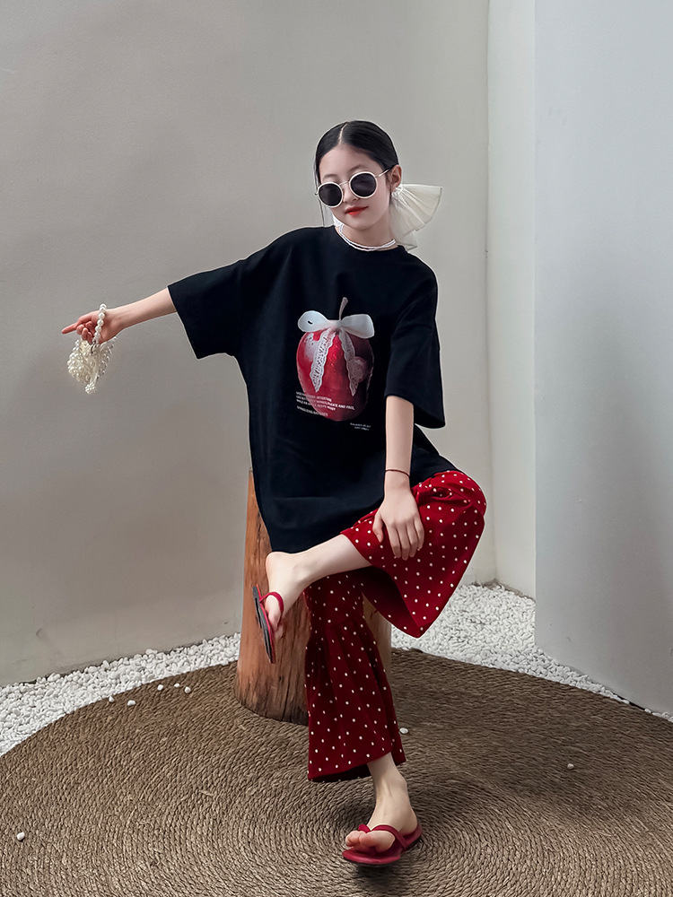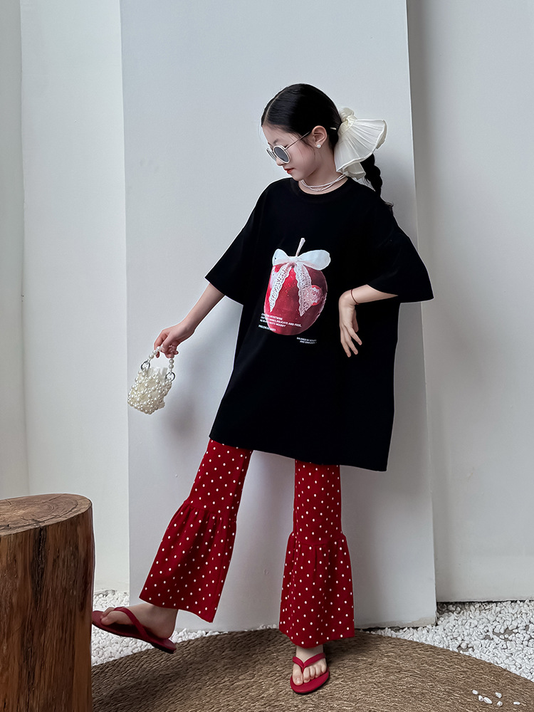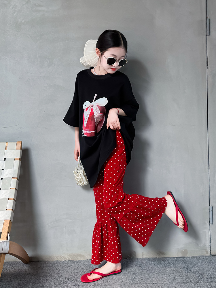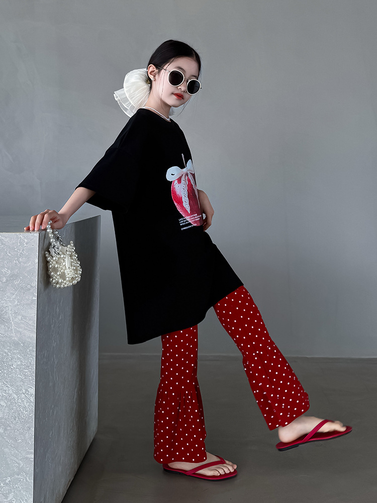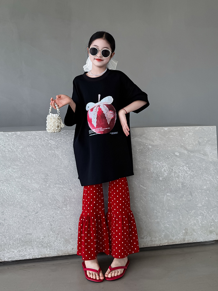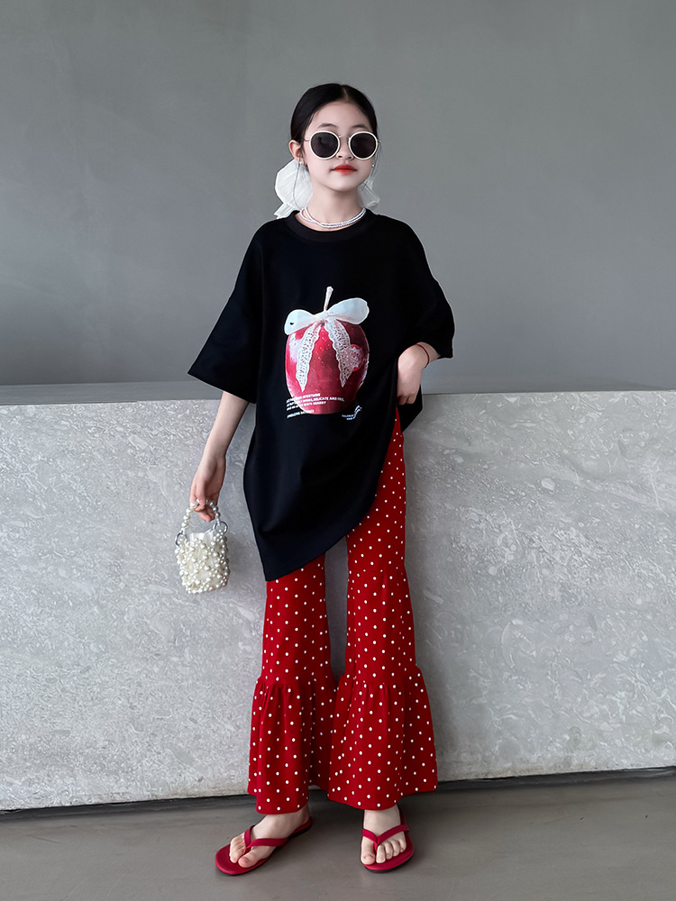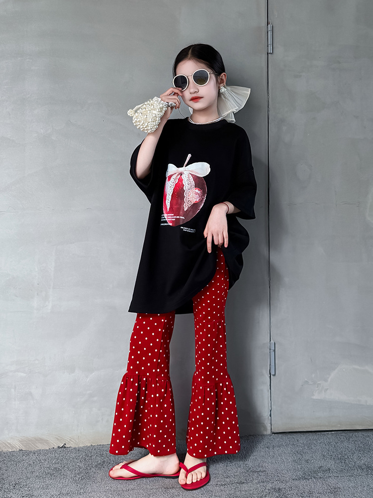 KZ1592 한국어 버전의 새로운 아동복 티셔츠 소녀 큰 아이들의 부모 빨간 폴로 말굽 트럼펫 바지스토어 가기
