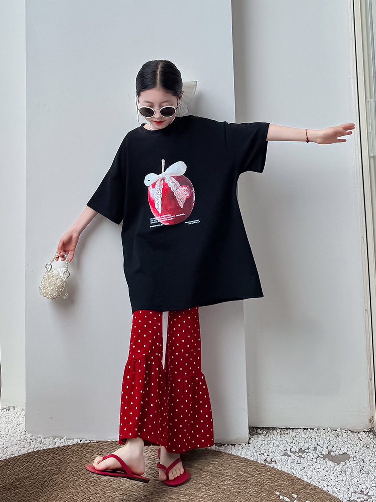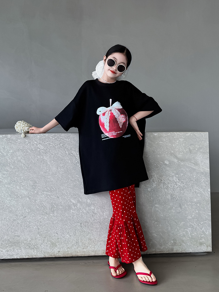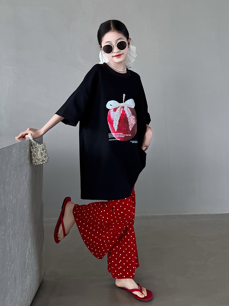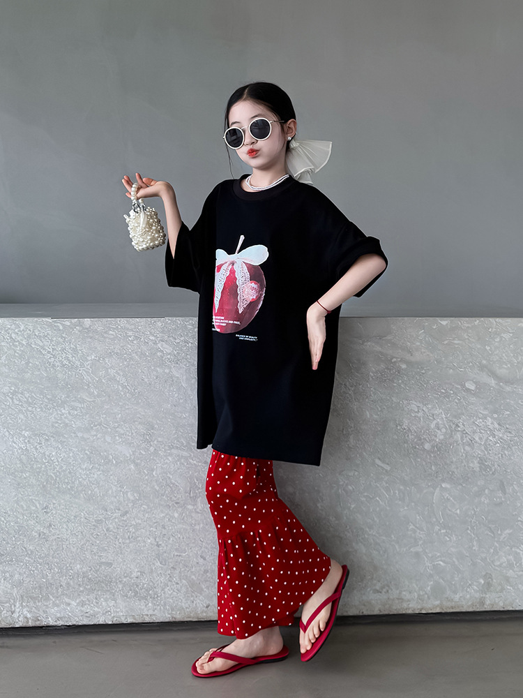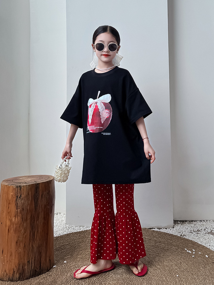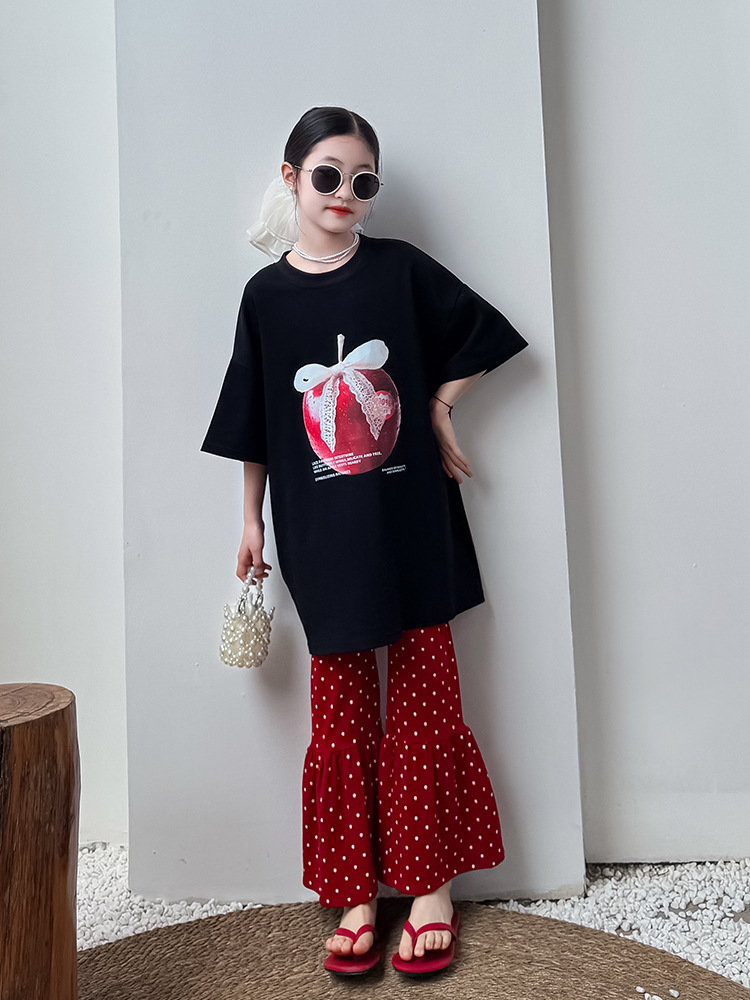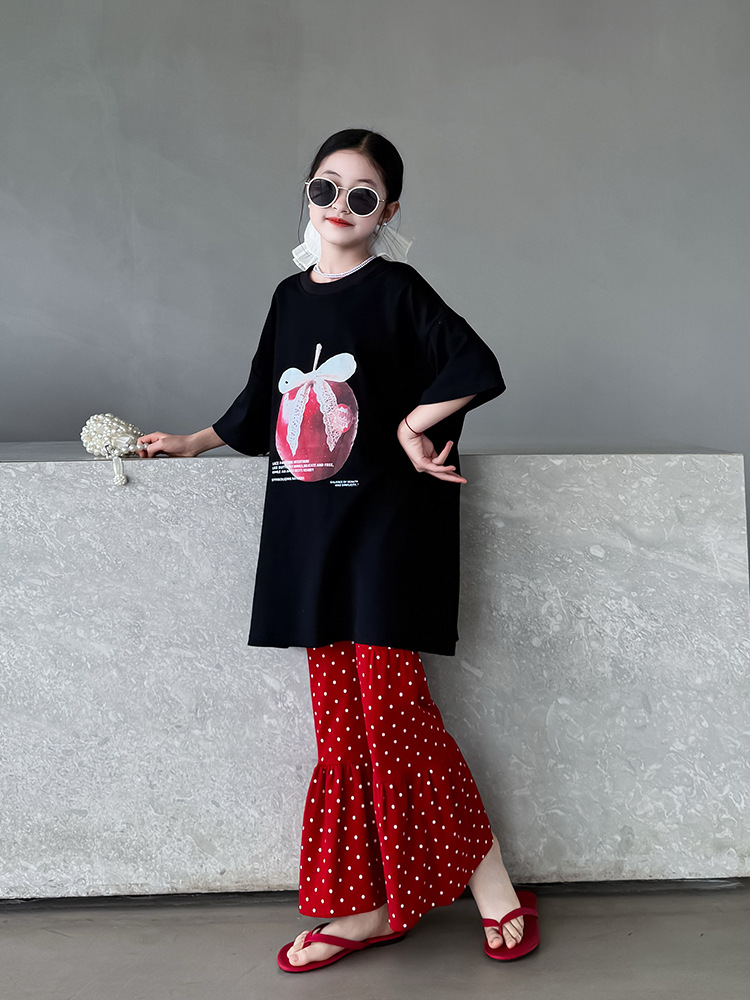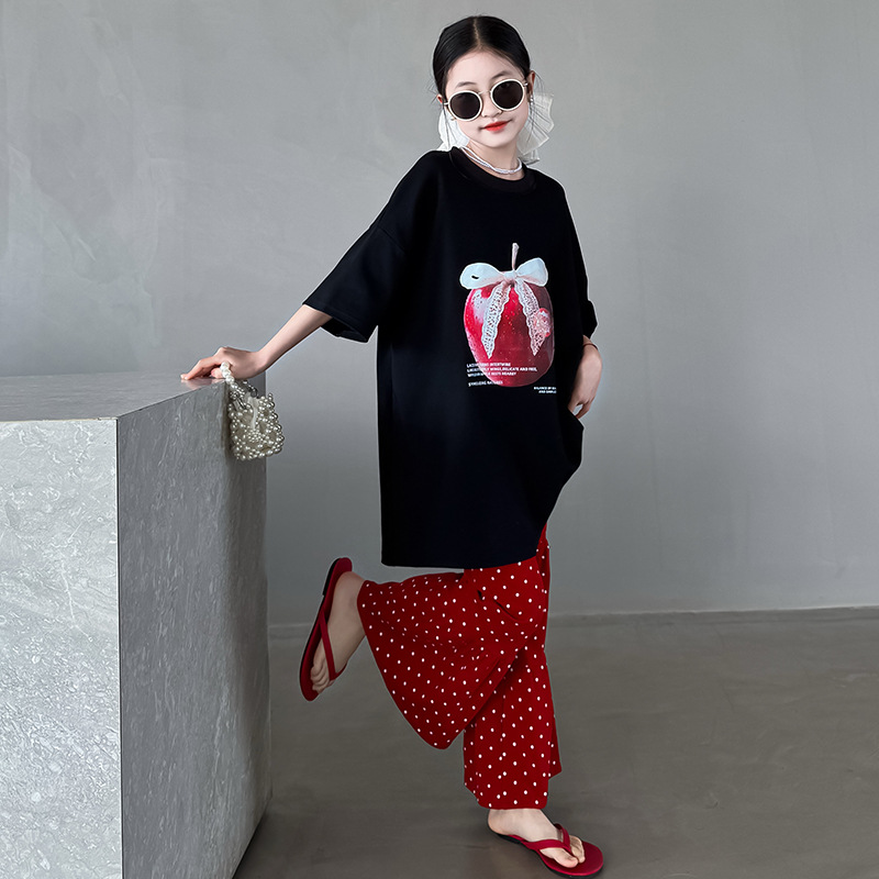 KZ1592 한국어 버전의 새로운 아동복 티셔츠 소녀 큰 아이들의 부모 빨간 폴로 말굽 트럼펫 바지스토어 가기