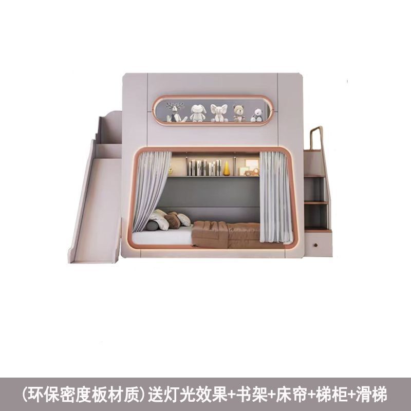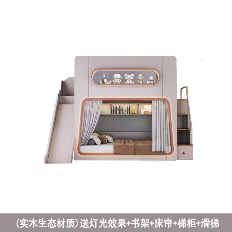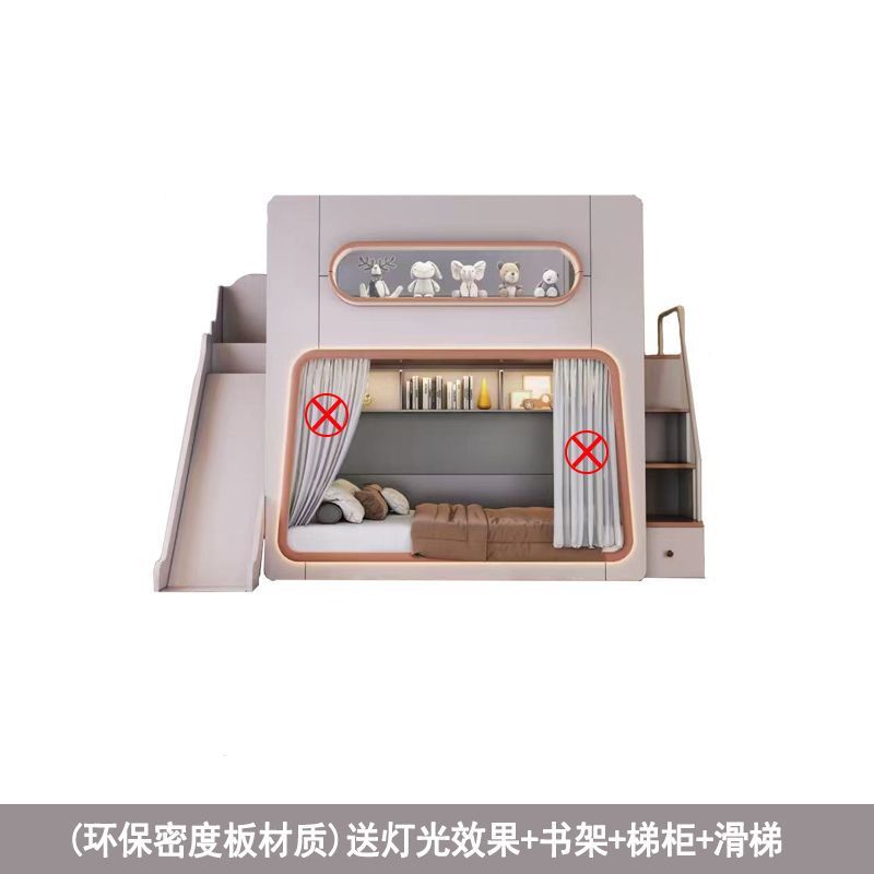 • 스페이스 침대 + 사다리 캐비닛 + 슬라이드 + 침대 커튼 (원목 생태 보드)