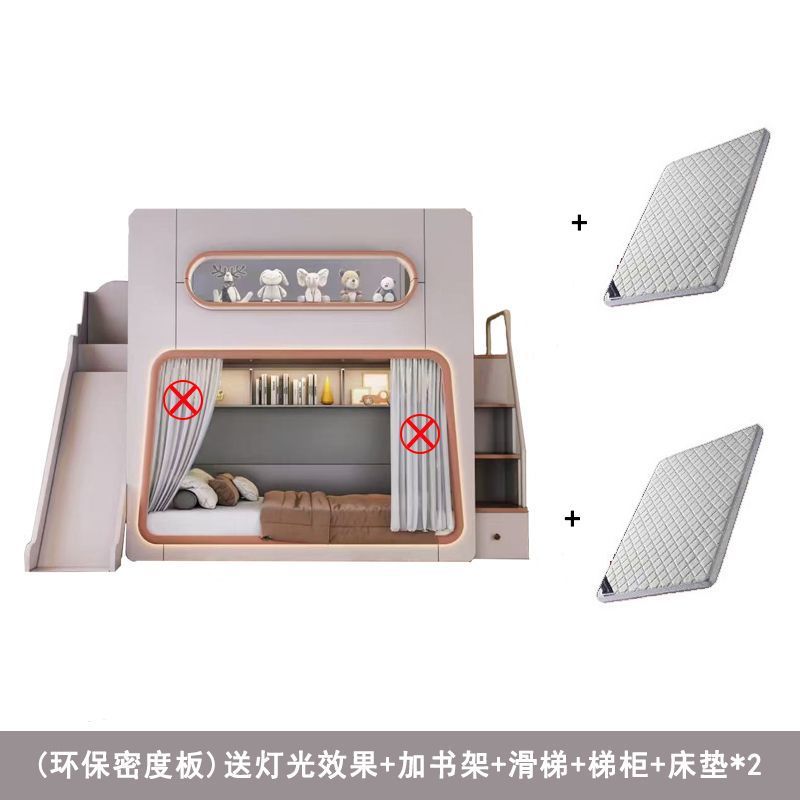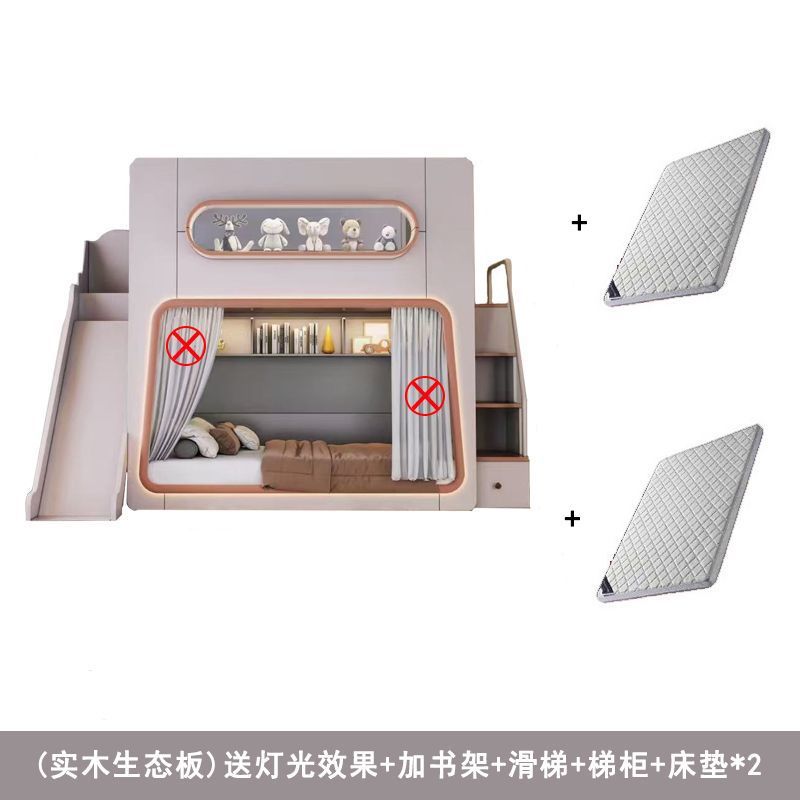 • 스페이스 침대 + 슬라이드 + 사다리 캐비닛 + 매트리스 * 2 (원목 생태 보드)
