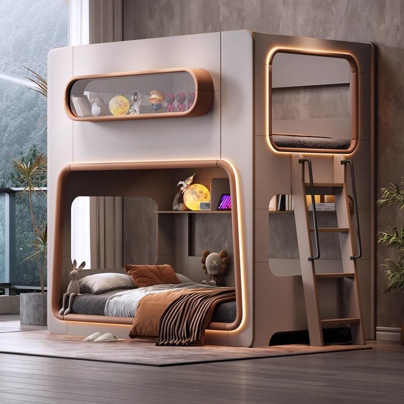단단한 나무 난간, 우주 캡슐 어린이 침대, 작은 아파트, 동일한 너비의 어머니-자식 이층 침대, 자매와 형제의 높고 낮은 이층 침대