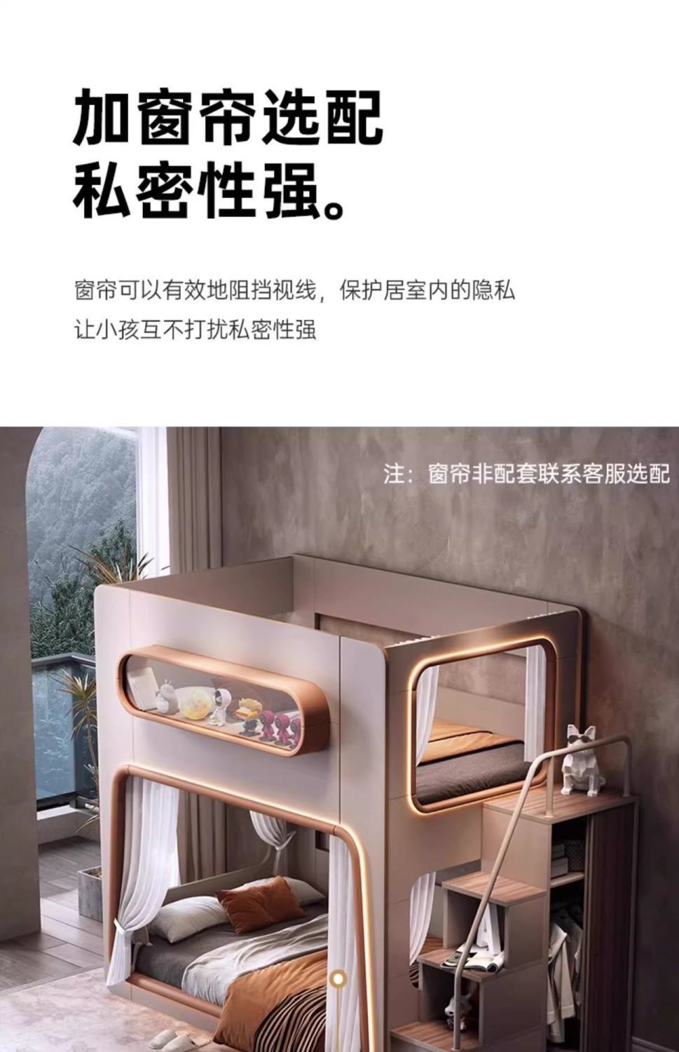 • 스페이스 침대 + 슬라이드 + 사다리 수납장 + 침대 커튼(밀도판)