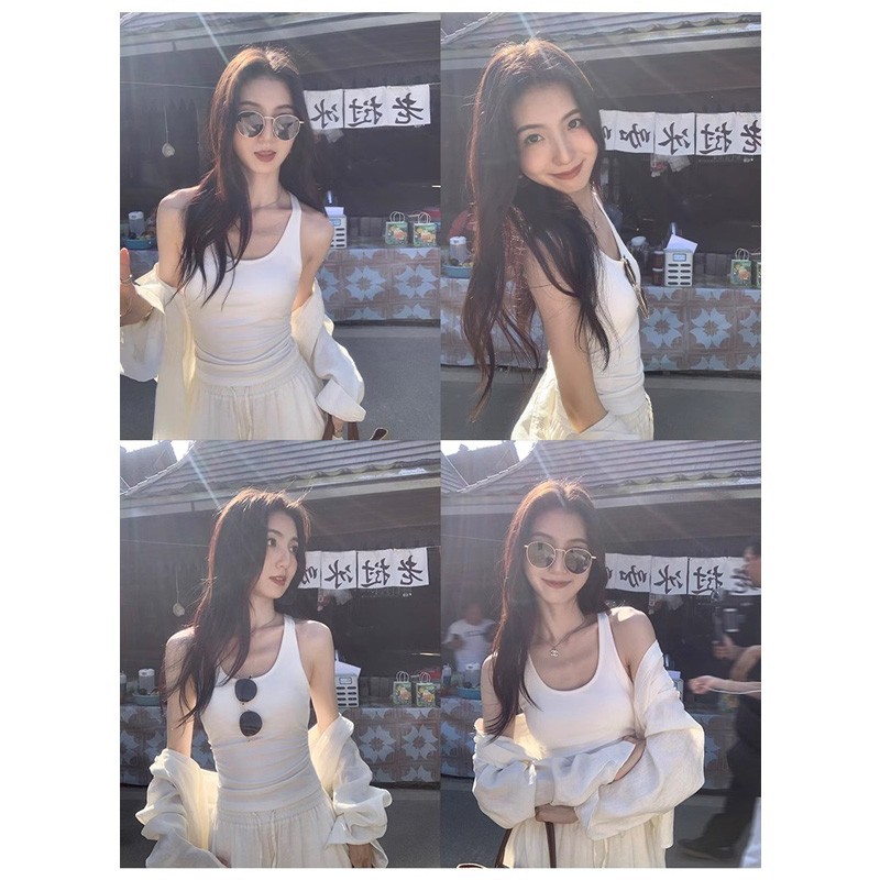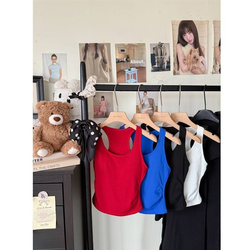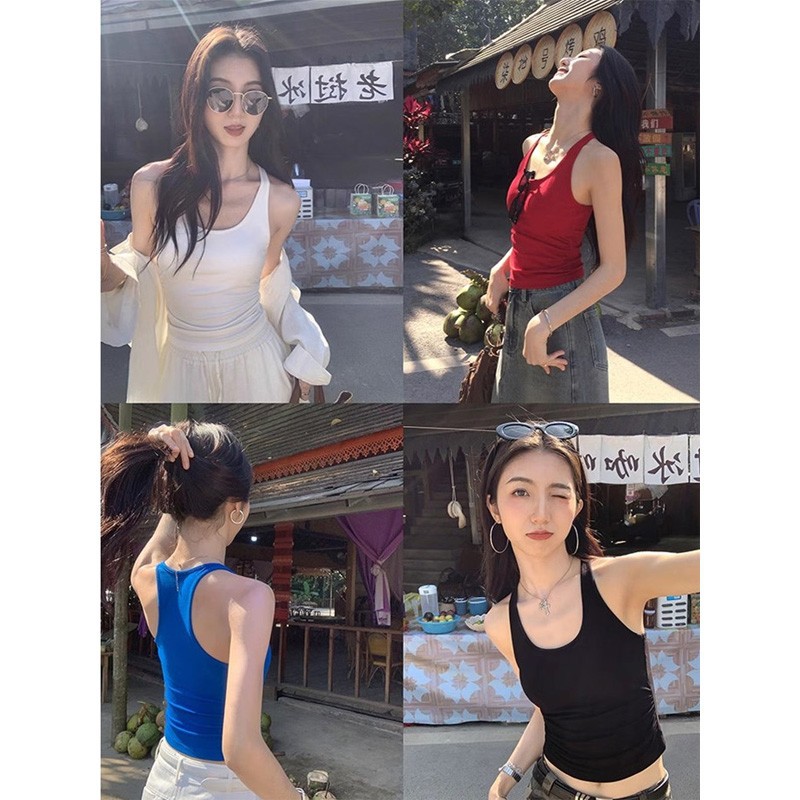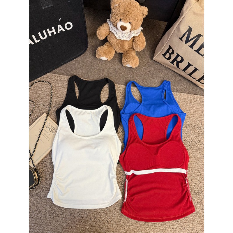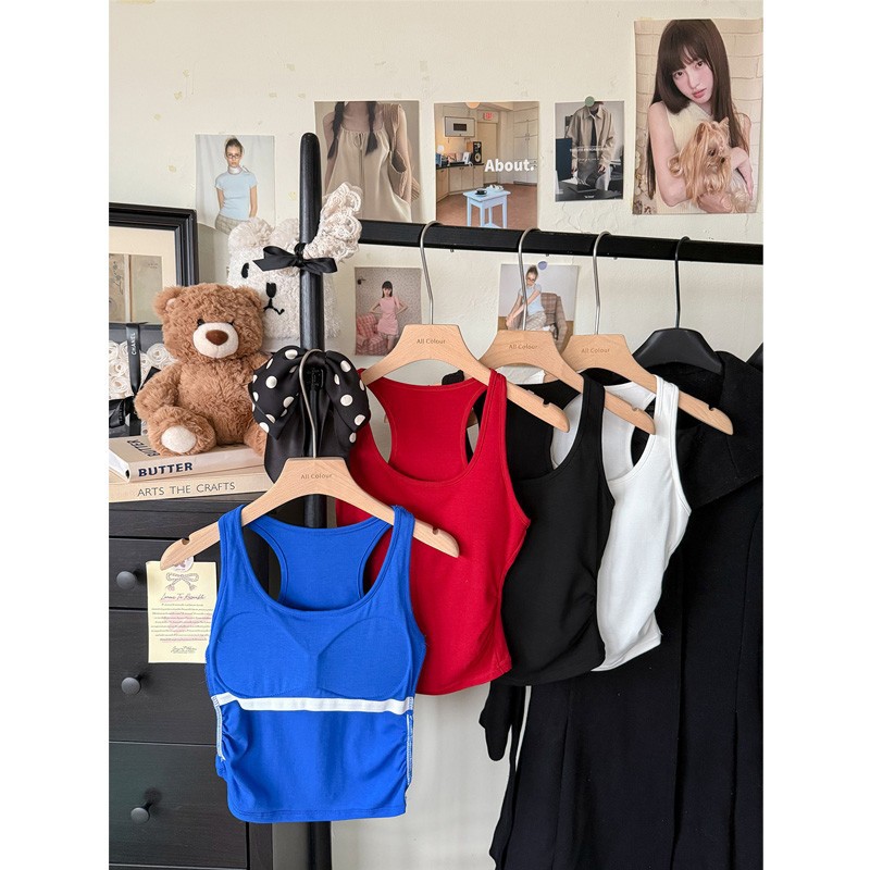 Pure Desire Hot Girl Blue Letter Camisole 여성 여름 슬리밍 하이 엔드 기질 캐주얼 다목적 탑