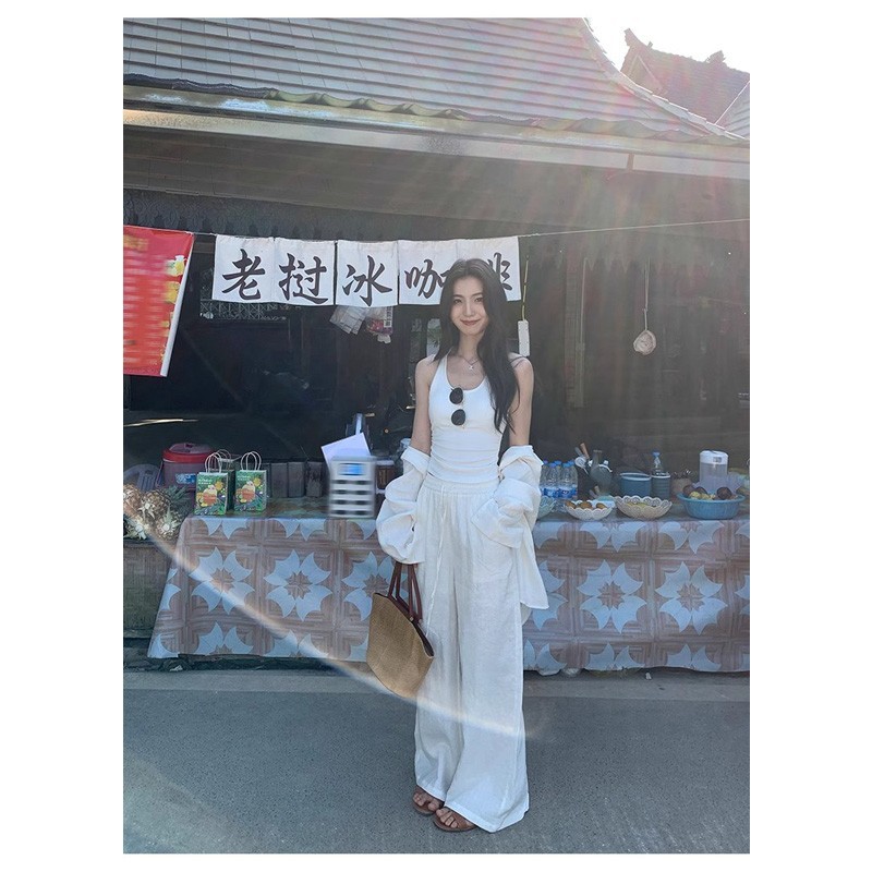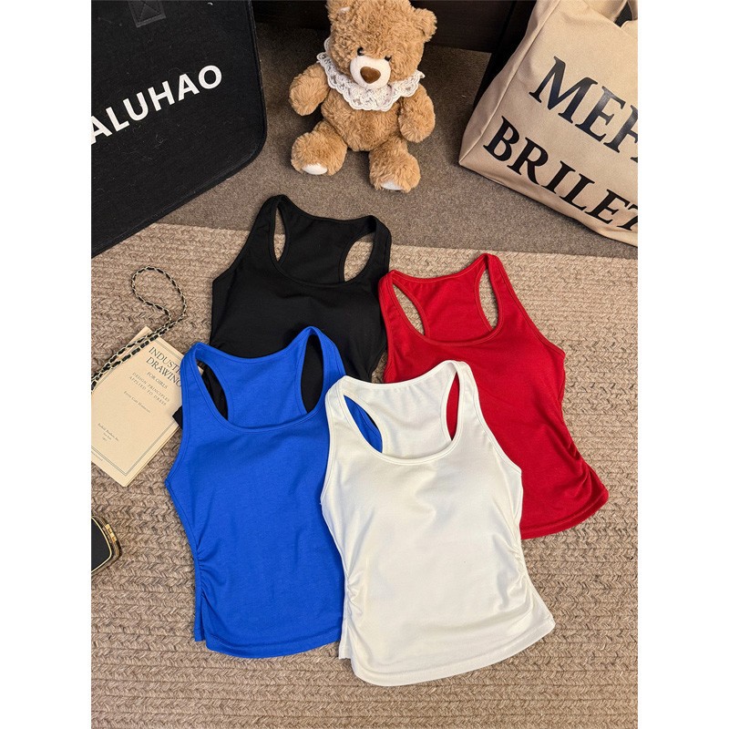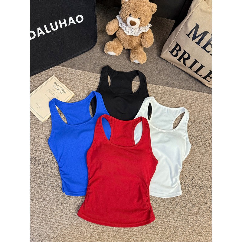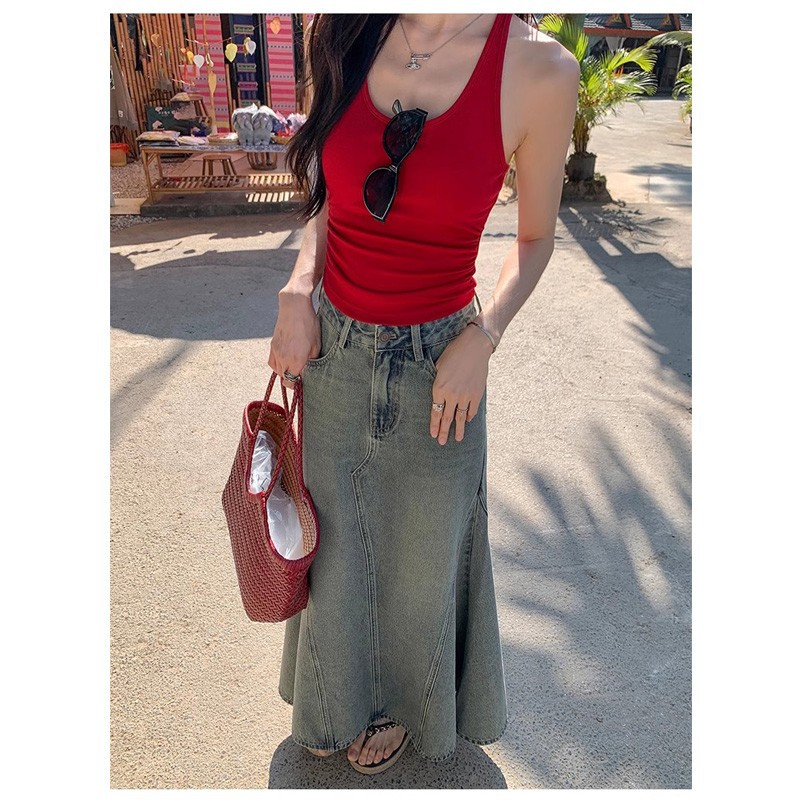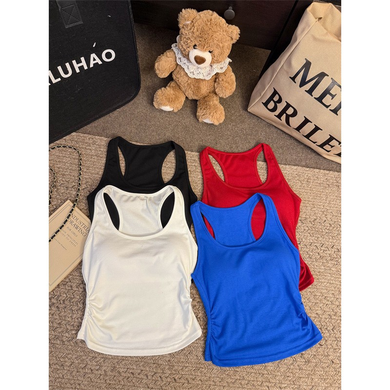 Pure Desire Hot Girl Blue Letter Camisole 여성 여름 슬리밍 하이 엔드 기질 캐주얼 다목적 탑