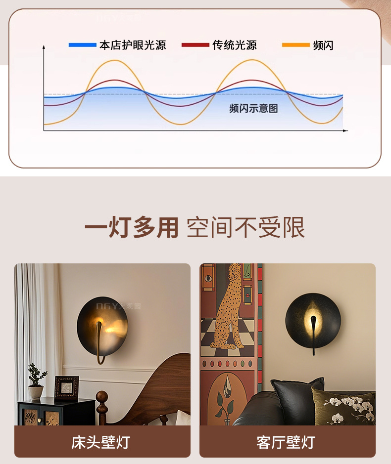 Daguanyuan 벽 램프 미국의 다목적 거실 침실 통로 조명 복고풍 간단한 맞춤형 배경 벽 머리맡 램프