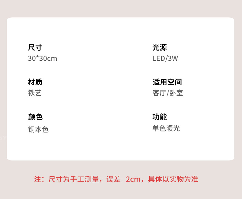 • [구리색] 30cm 단색 따뜻한 빛-3W-전체 스펙트럼
