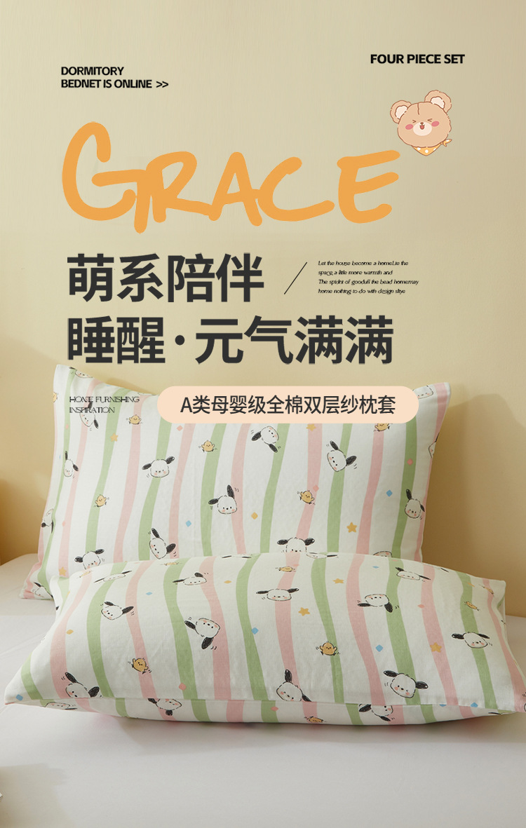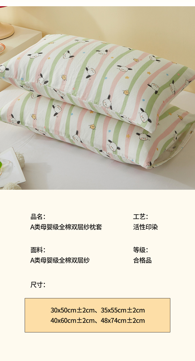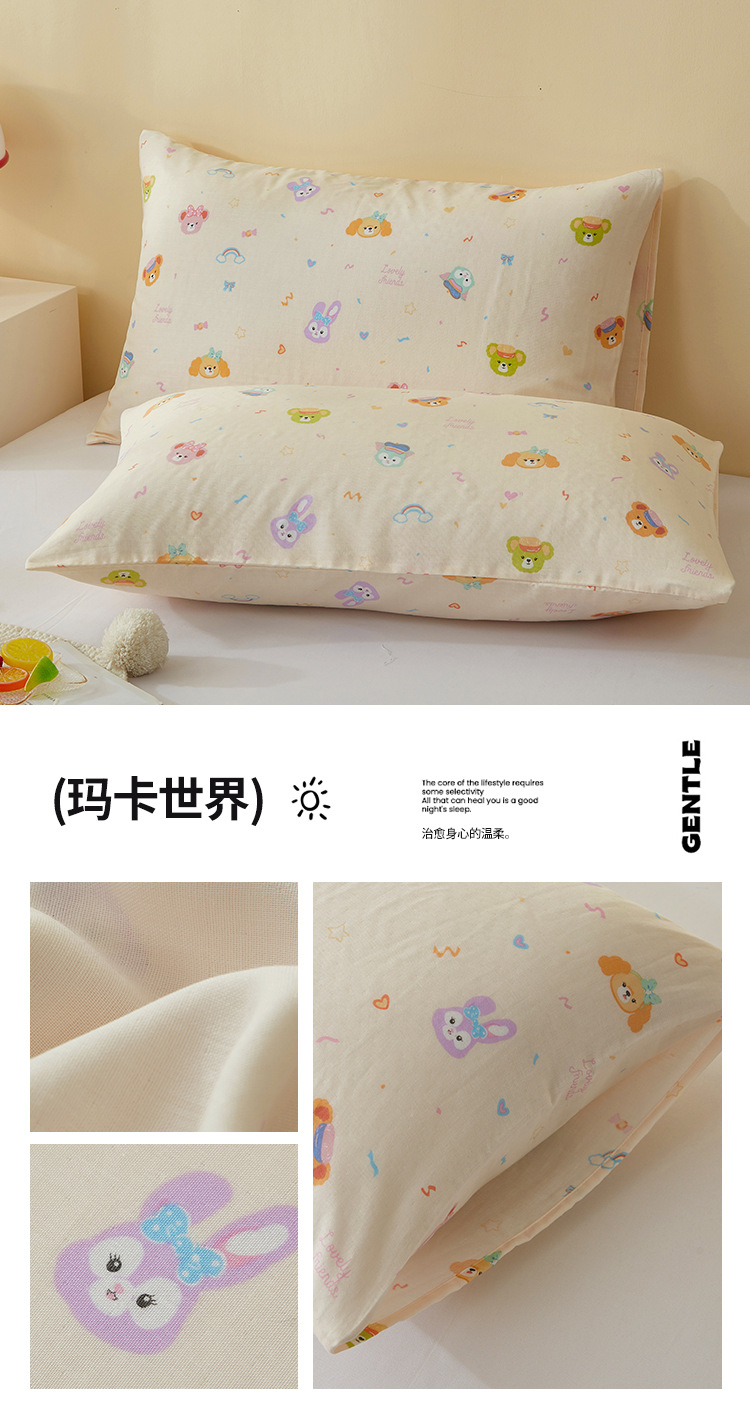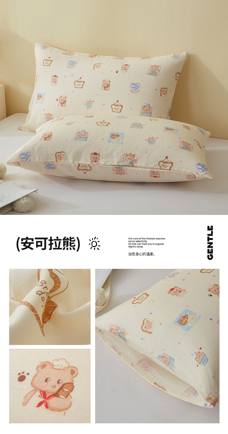 A급 만화 캐릭터 순면 이중 거즈 싱글 베개 커버 어린이, 학생, 성인용 베개 커버, 워싱 코튼 안코라스토어 가기