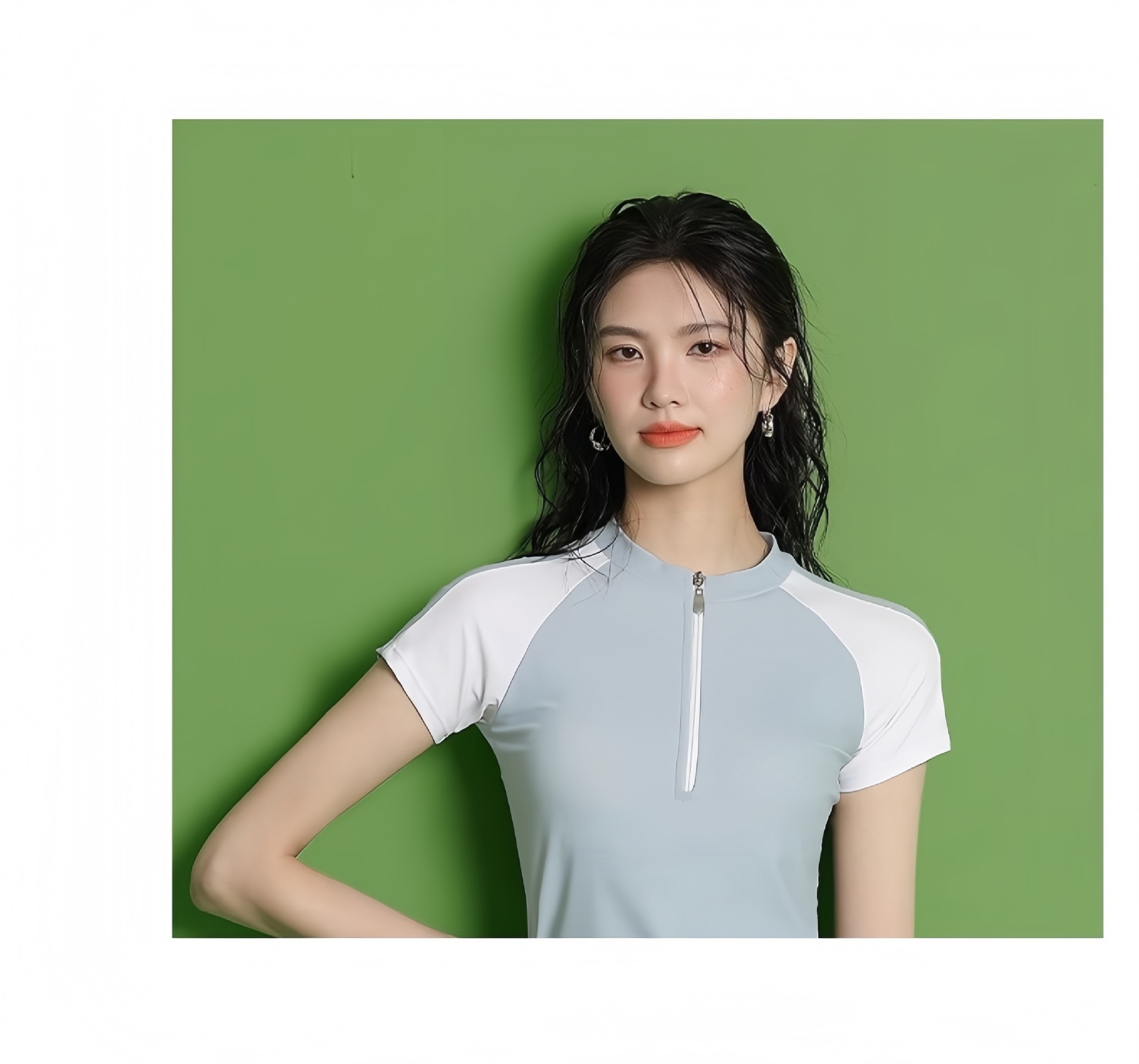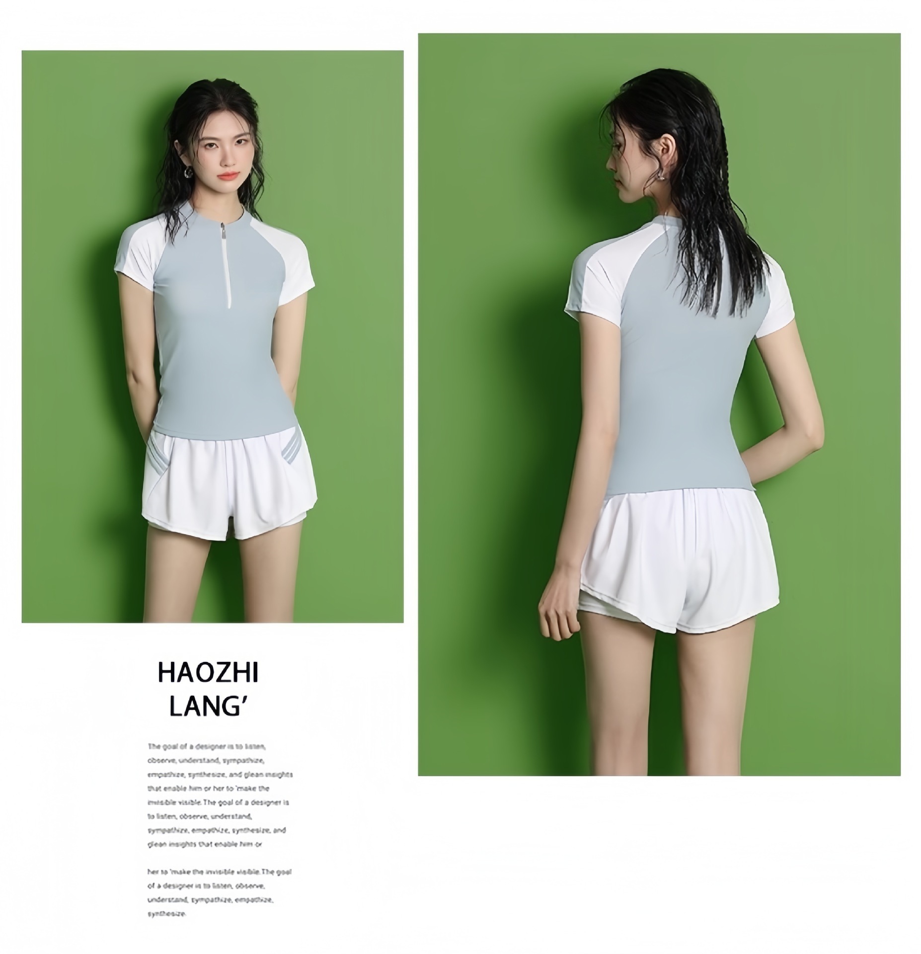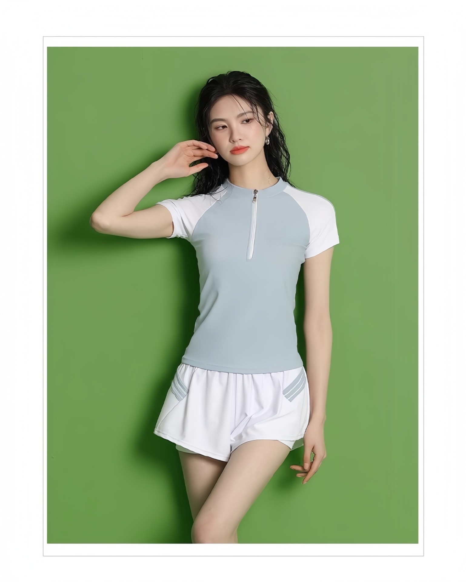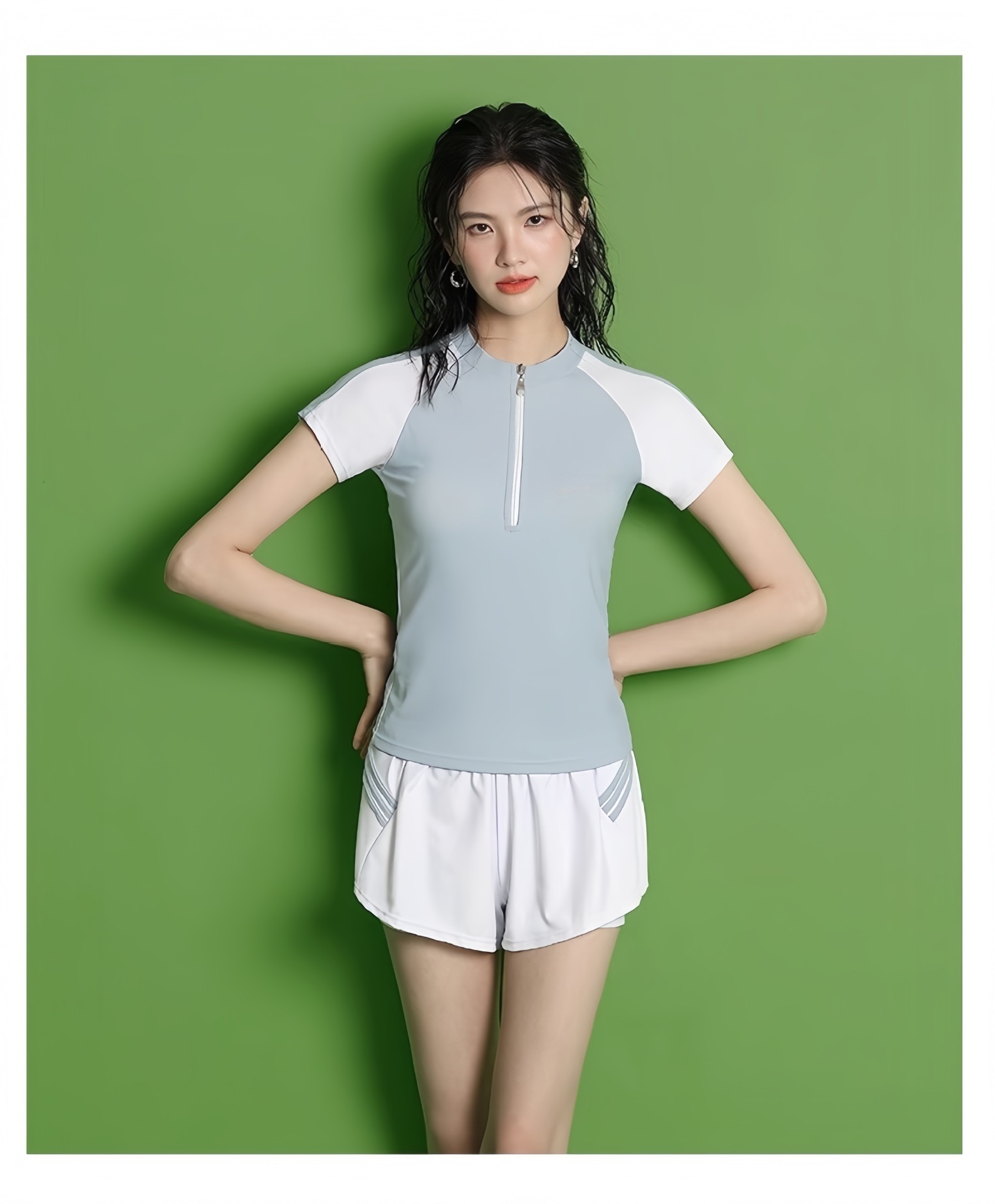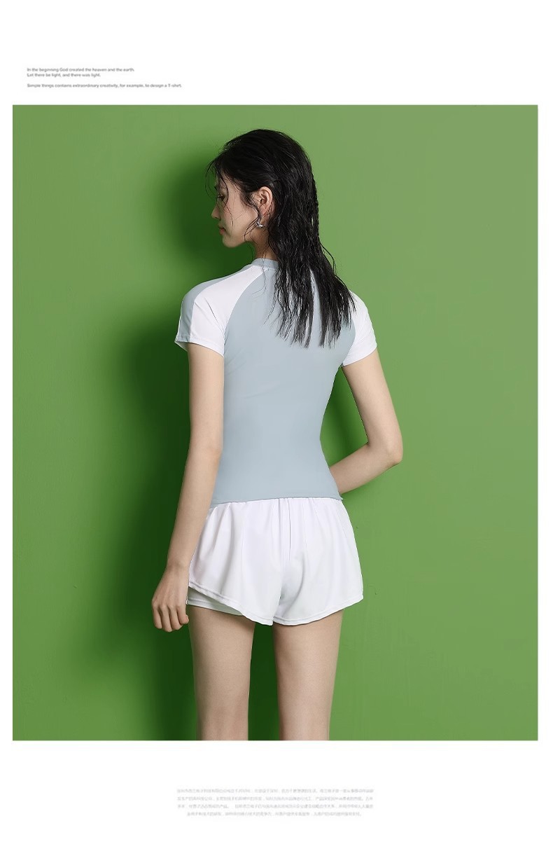 수영복 여성의 새로운 분할 스포츠 반팔 투피스 세트 학생들을위한 보수적 인 슬리밍 온천 수영복 수영장 온천 수영복