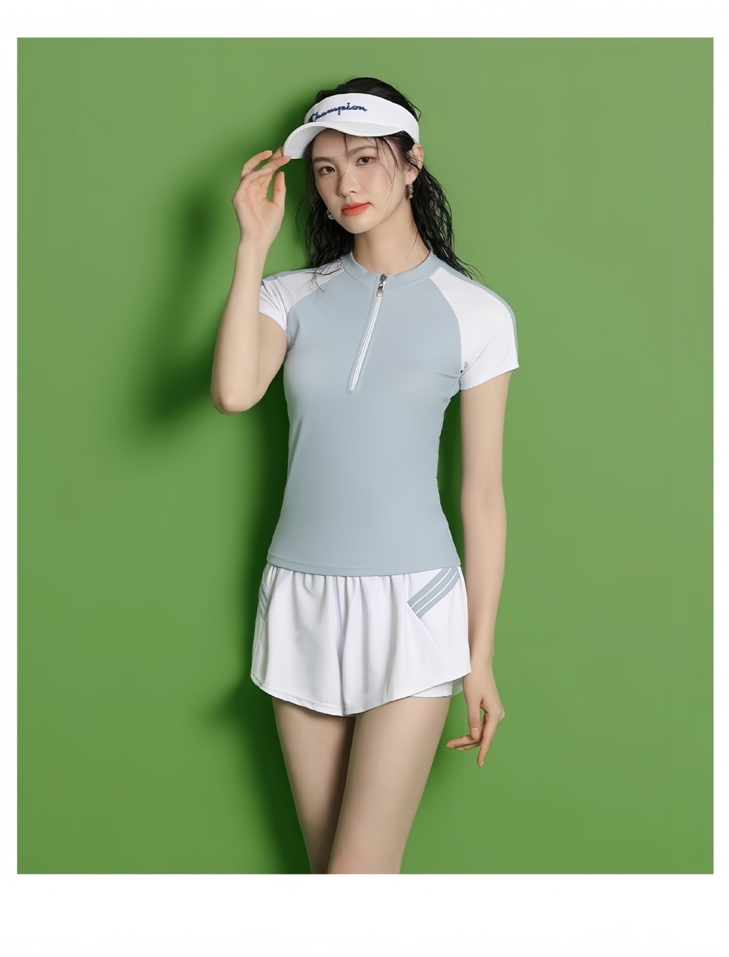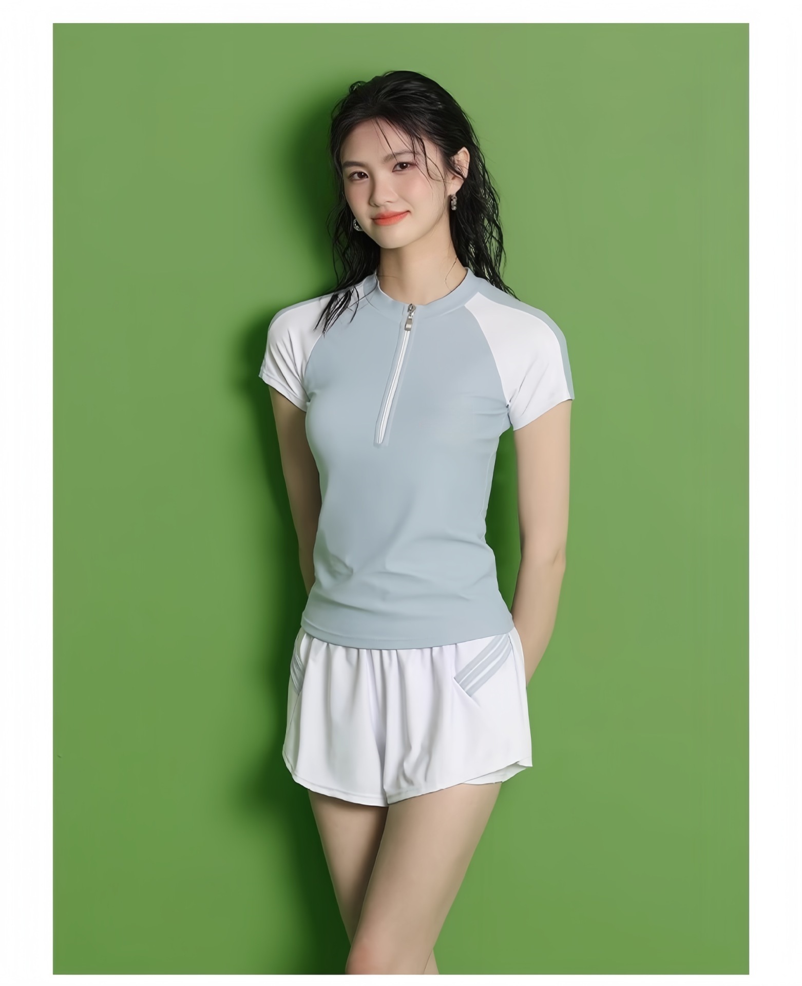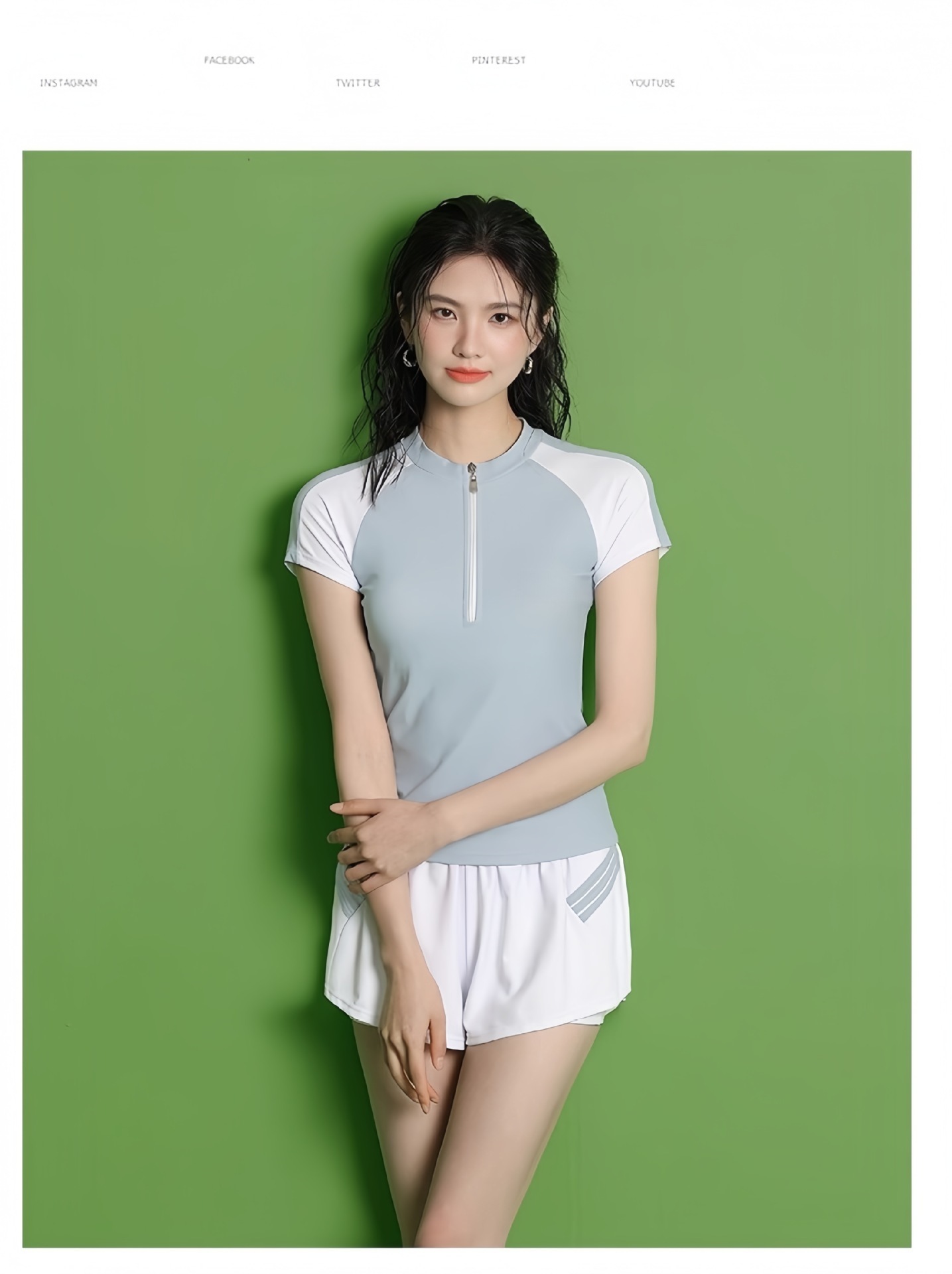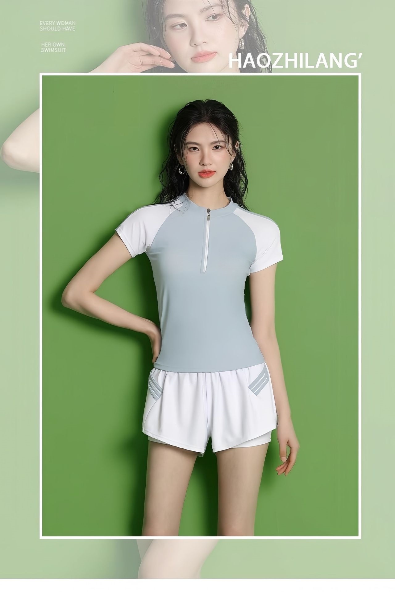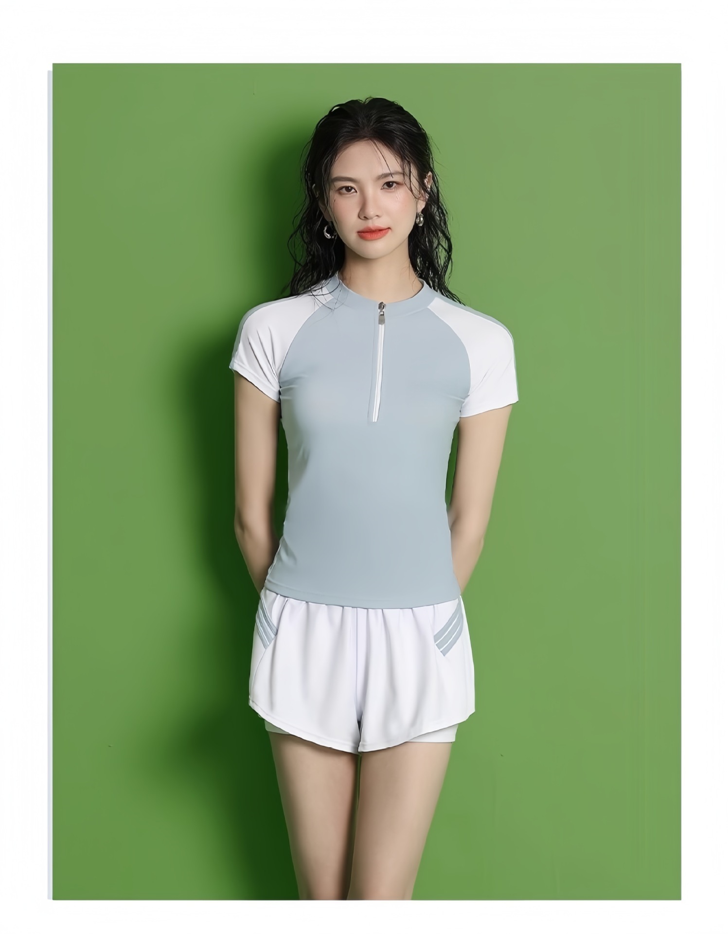 수영복 여성의 새로운 분할 스포츠 반팔 투피스 세트 학생들을위한 보수적 인 슬리밍 온천 수영복 수영장 온천 수영복스토어 가기