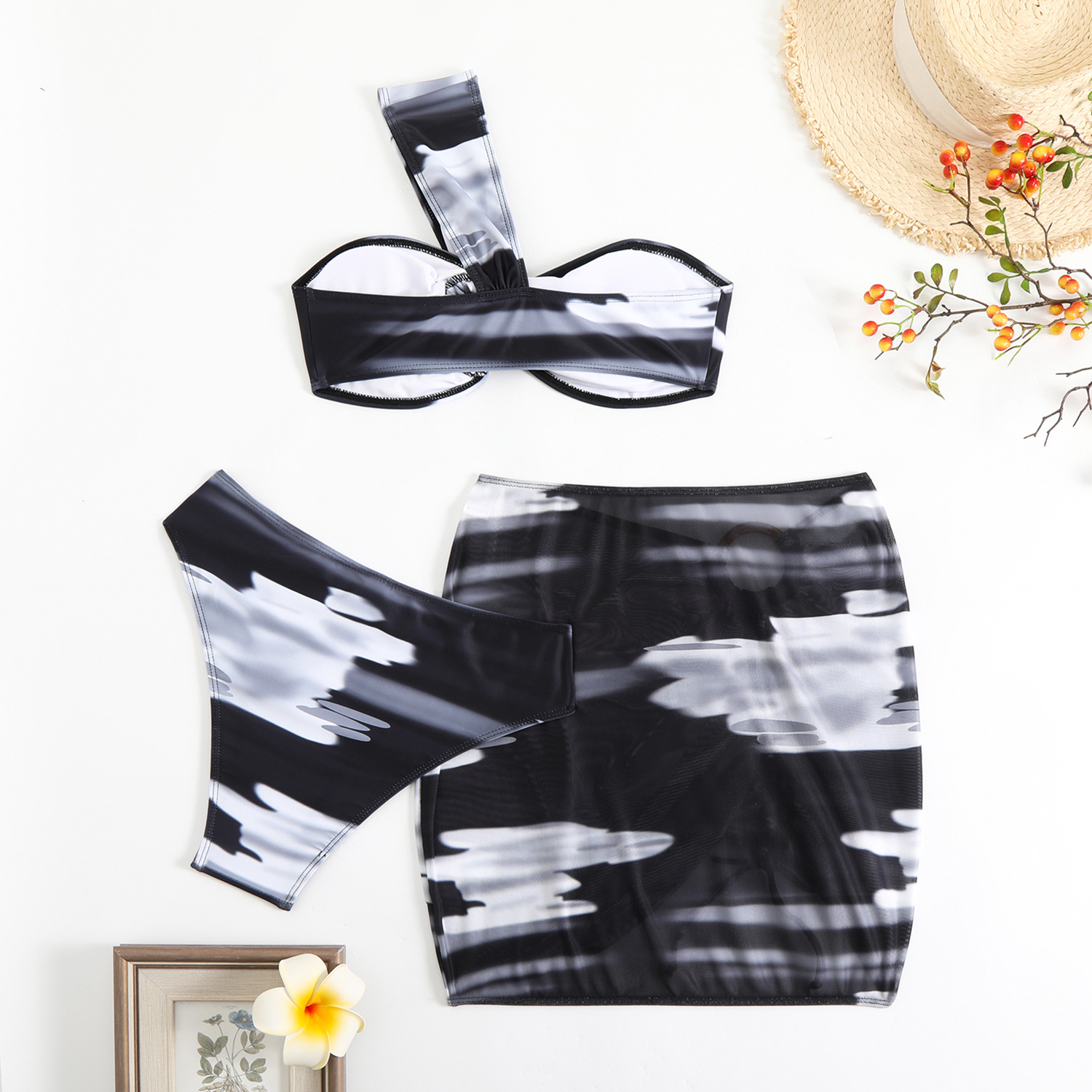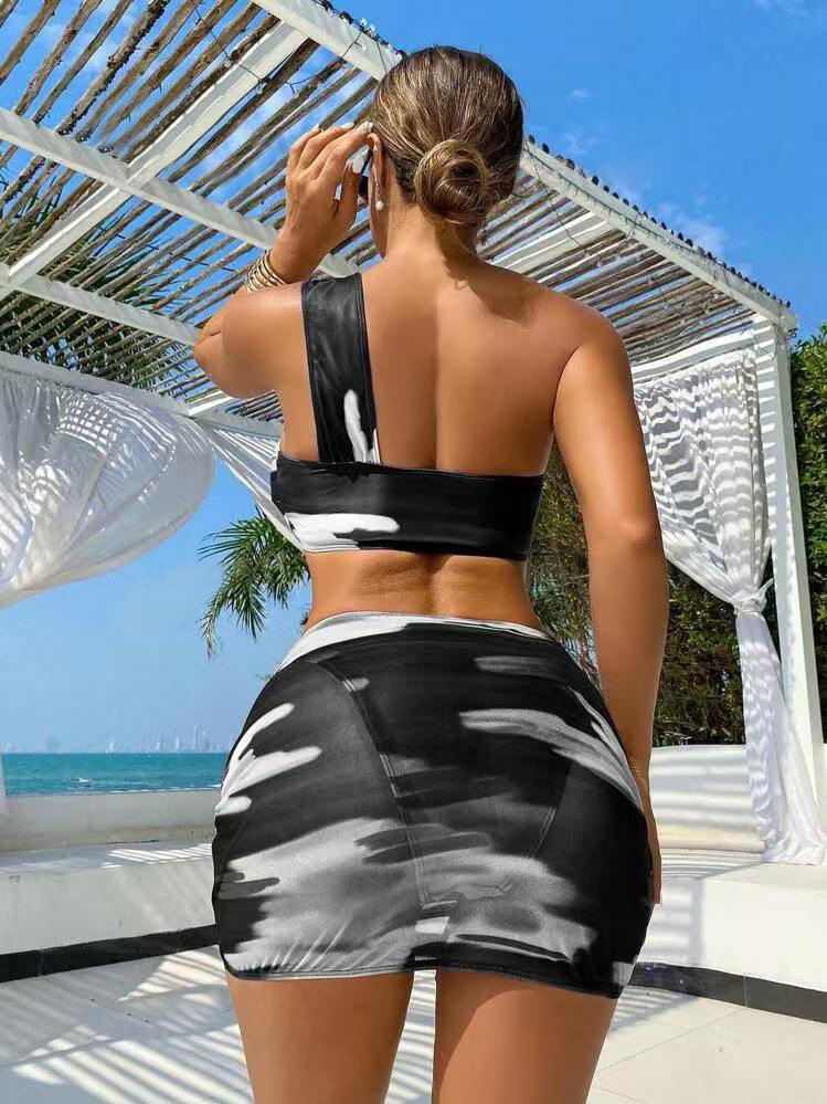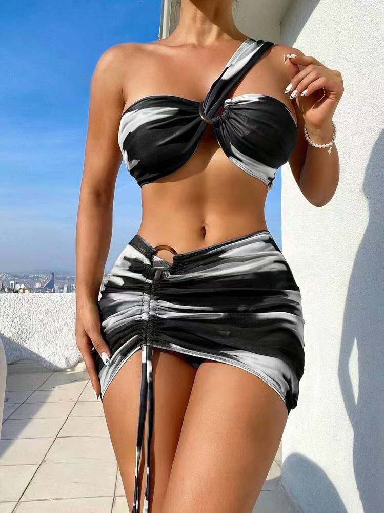 2025 국경을 넘는 새로운 아마존 비키니 대외 무역 여성 3 종 세트 분할 힙합 스커트 백리스 섹시한 수영복