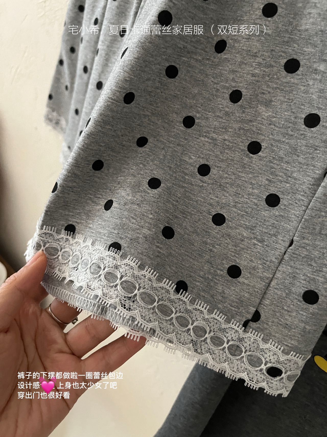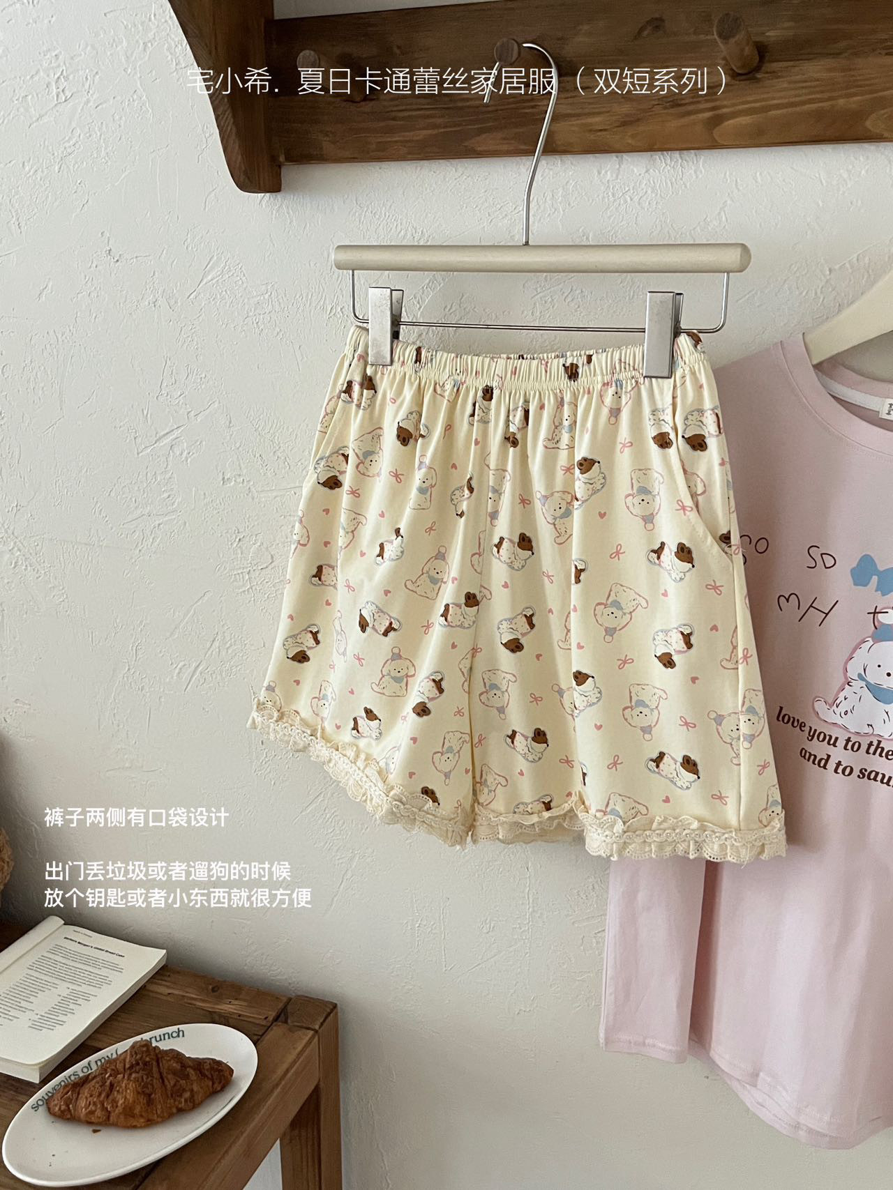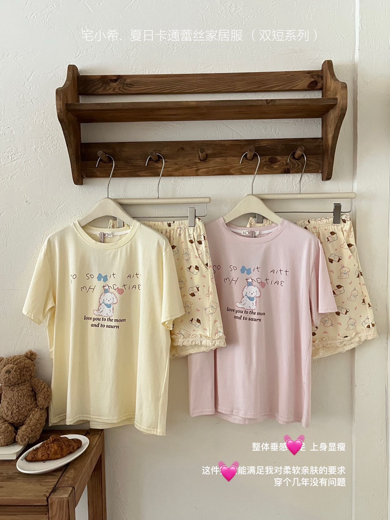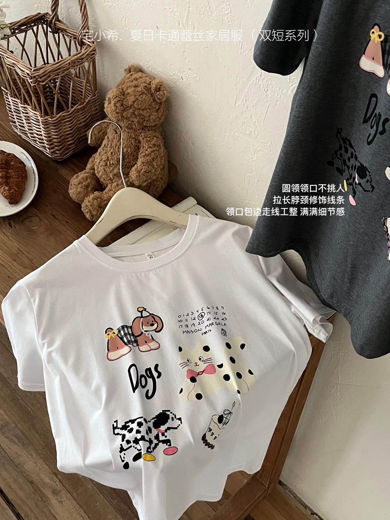 Zaoshixi 여름 만화 레이스 홈웨어 마이크로 비즈니스 인기 얼음 도자기 면 반팔 라운드 넥 느슨한 소녀 잠옷스토어 가기