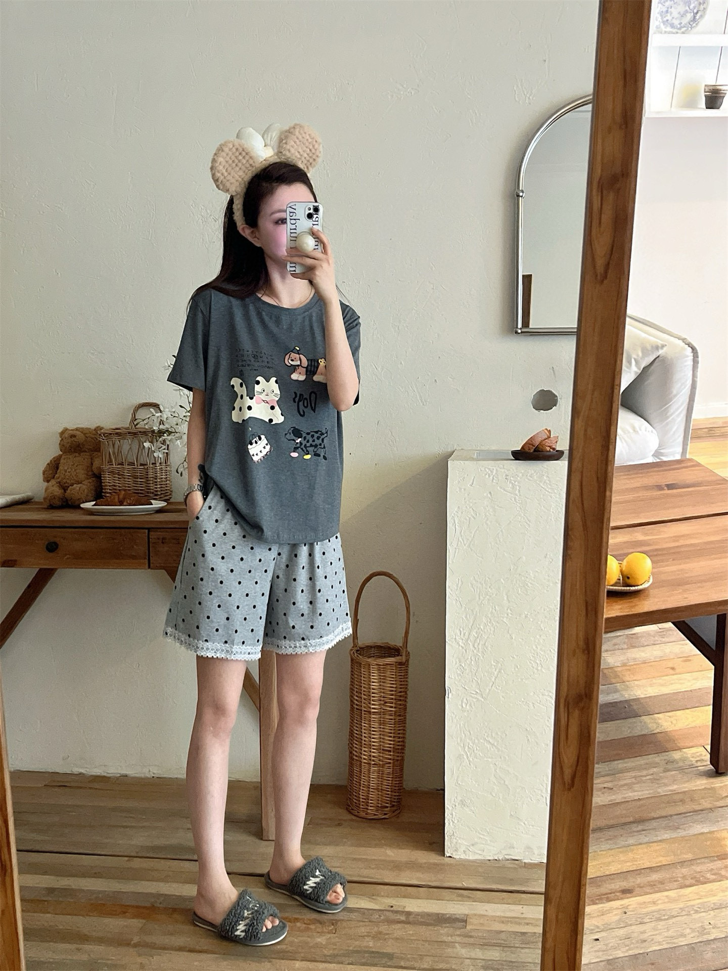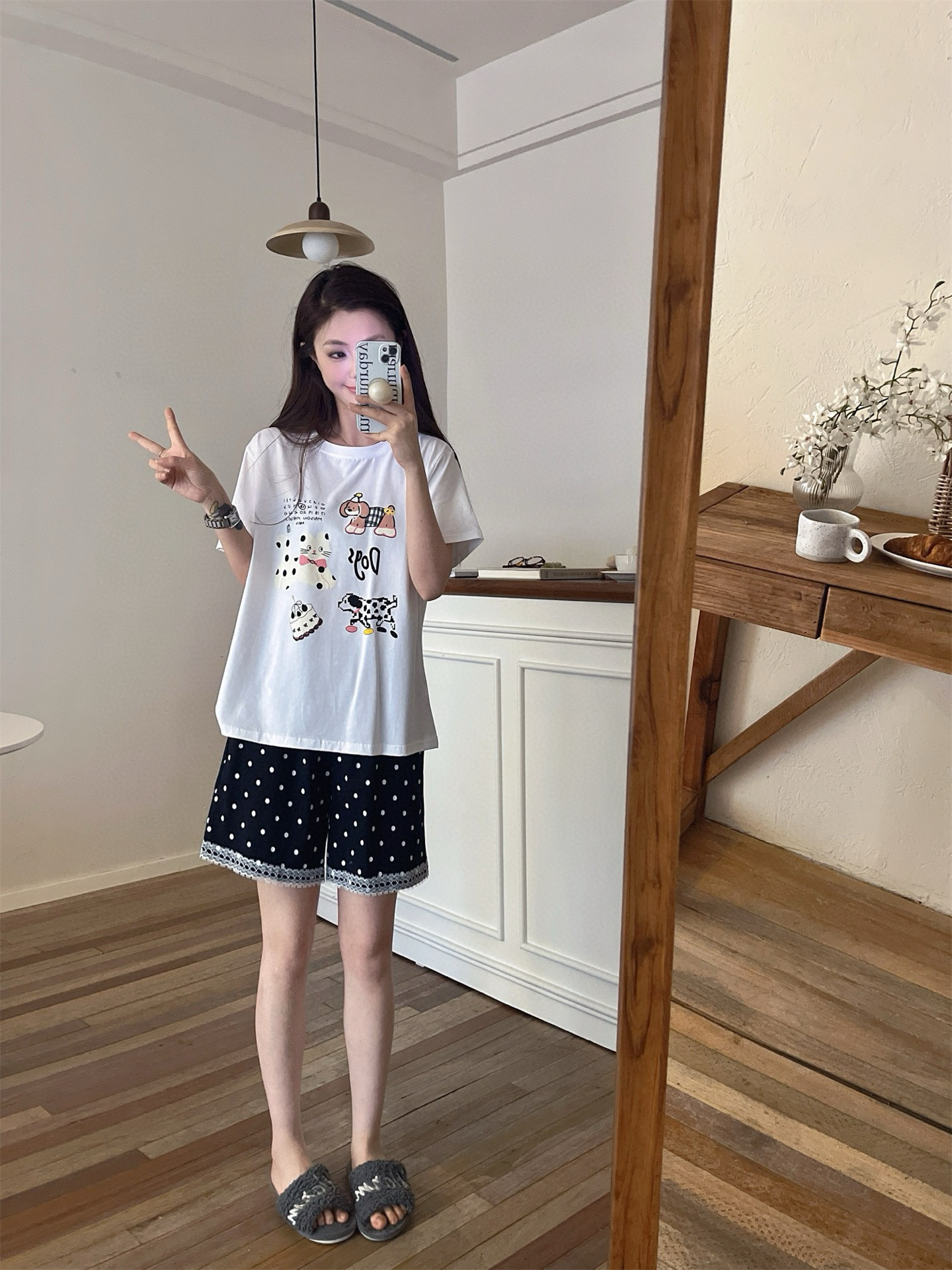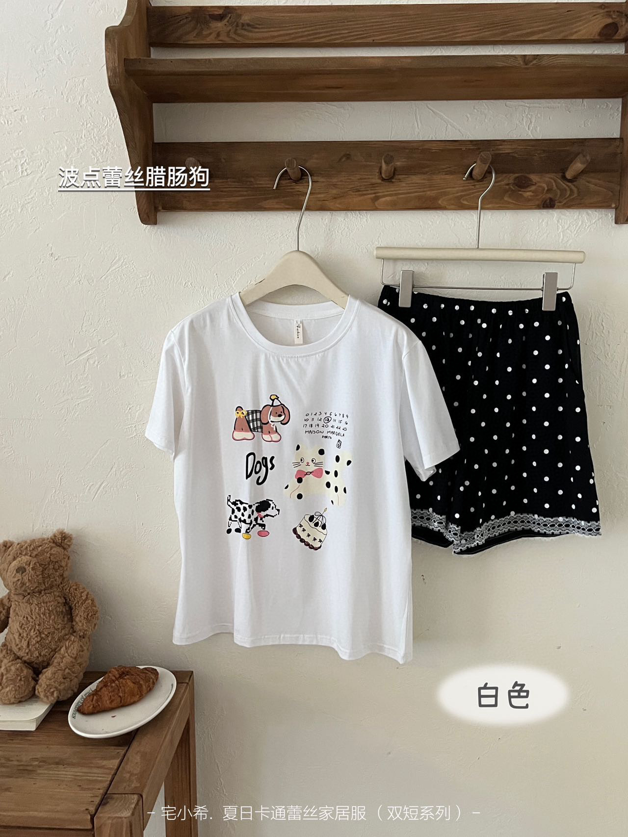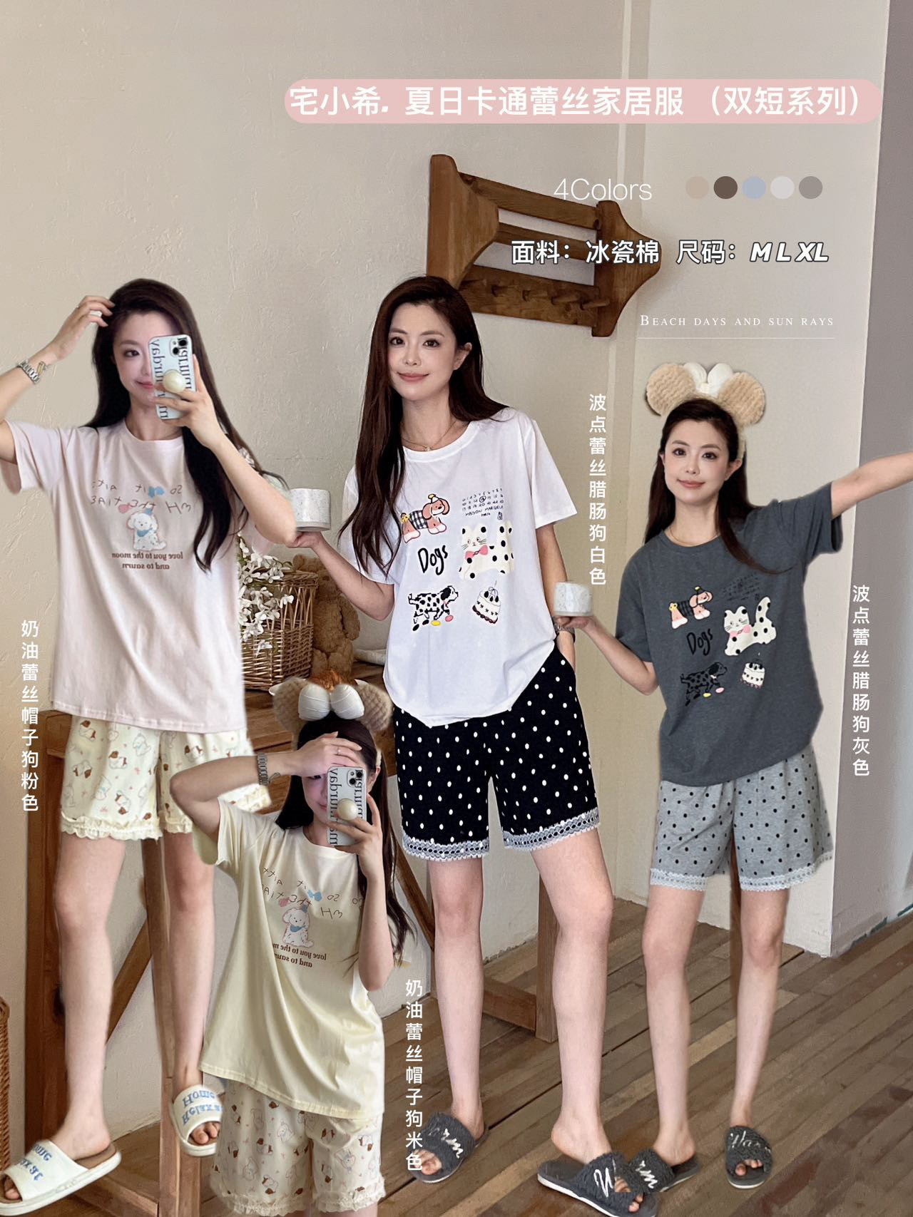 Zaoshixi 여름 만화 레이스 홈웨어 마이크로 비즈니스 인기 얼음 도자기 면 반팔 라운드 넥 느슨한 소녀 잠옷스토어 가기