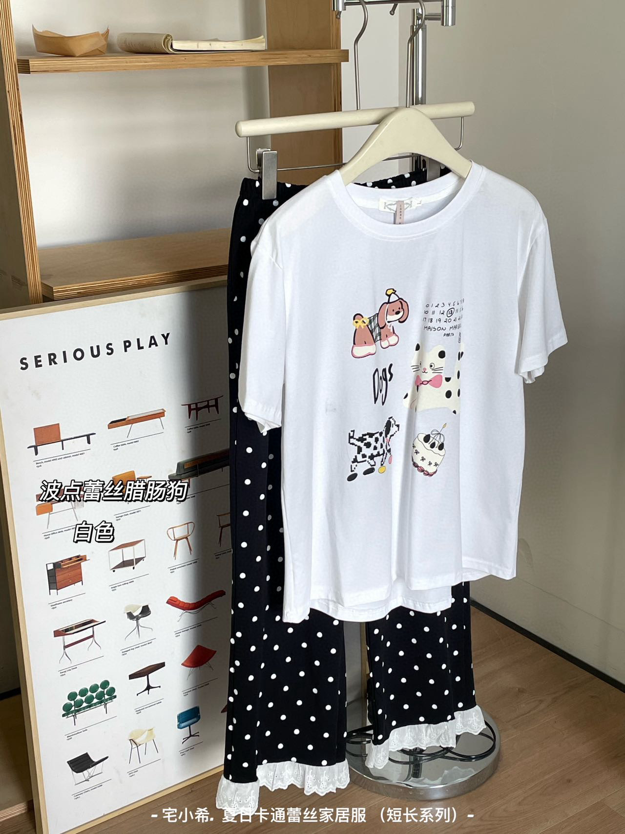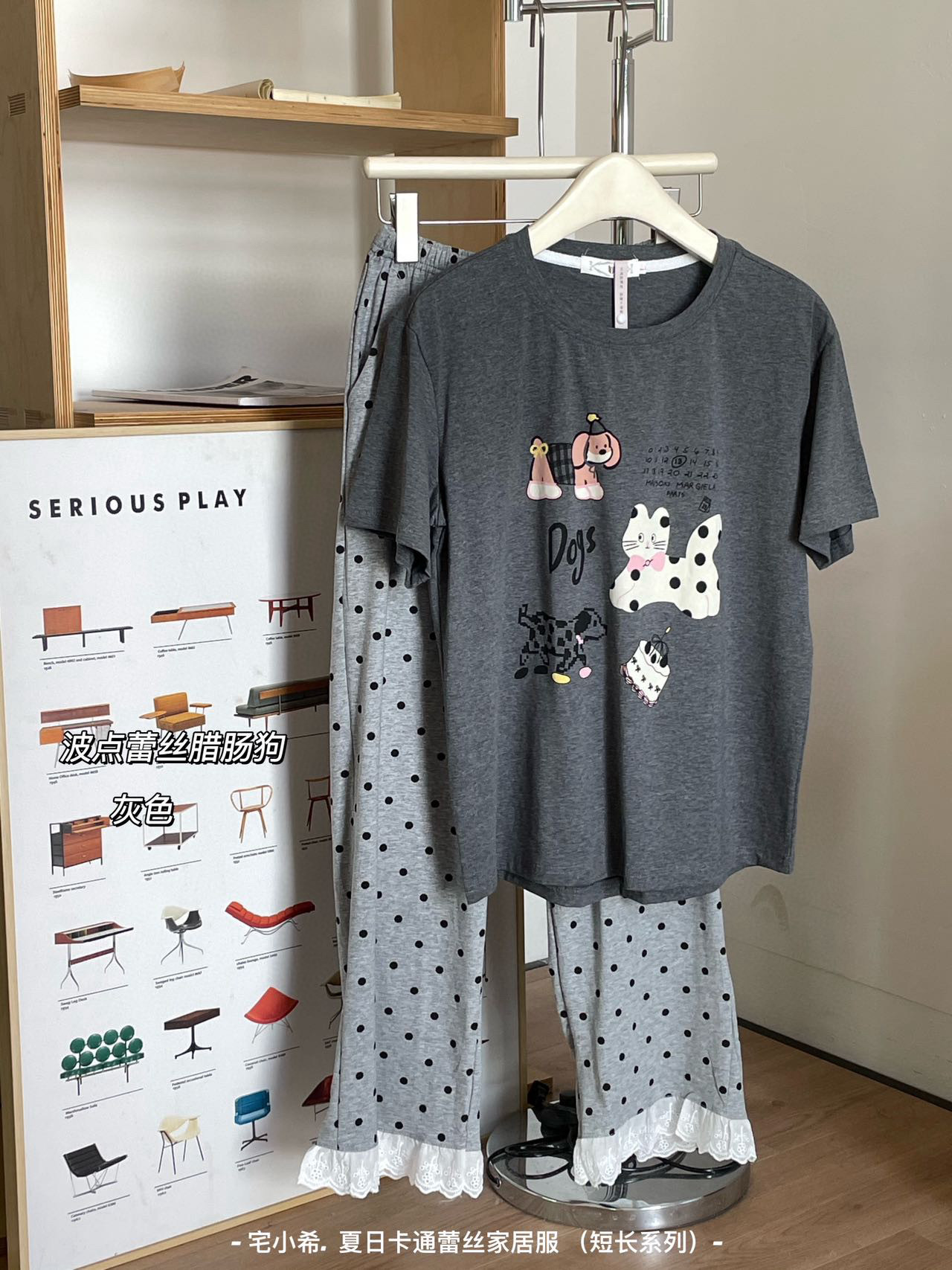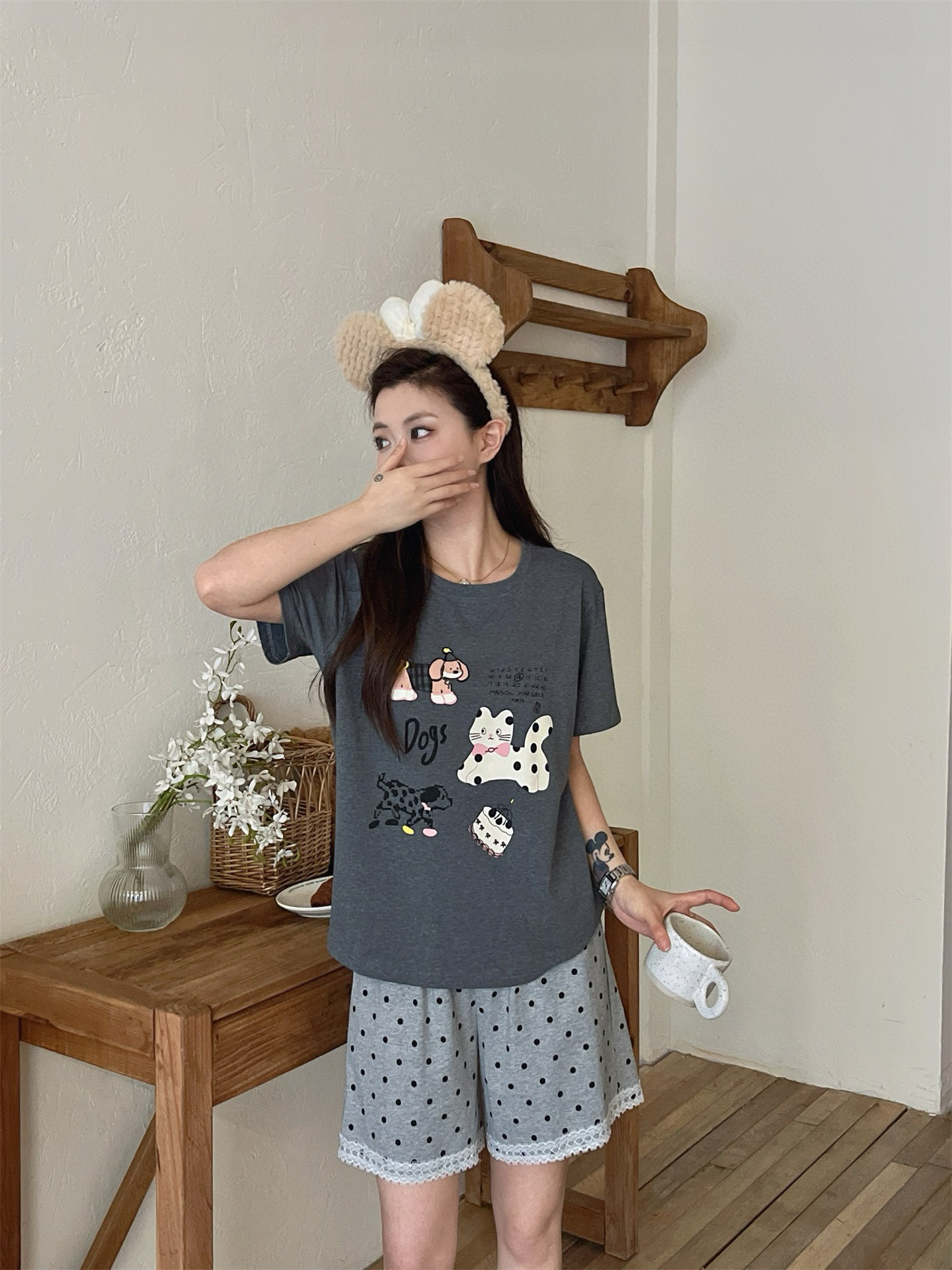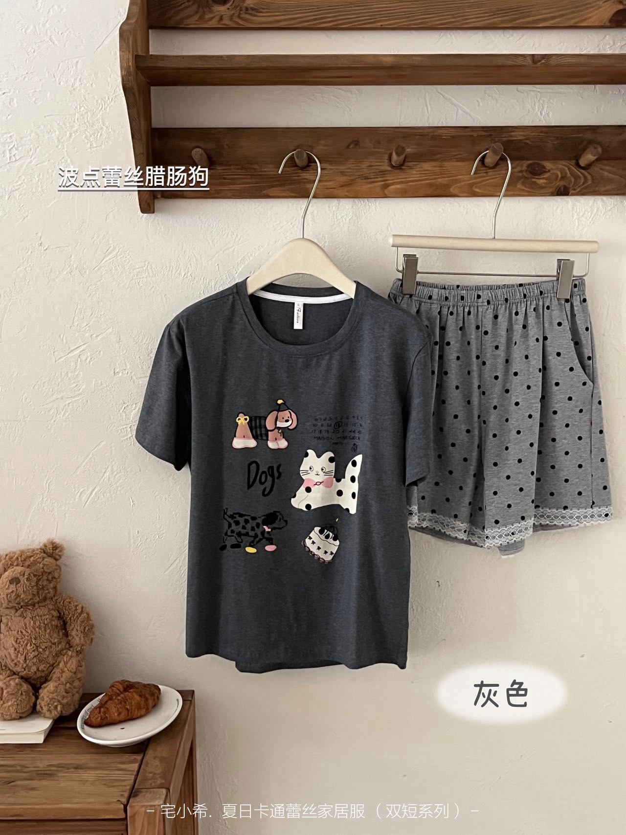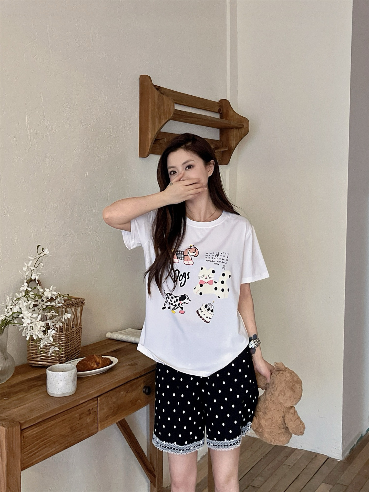 Zaoshixi 여름 만화 레이스 홈웨어 마이크로 비즈니스 인기 얼음 도자기 면 반팔 라운드 넥 느슨한 소녀 잠옷스토어 가기