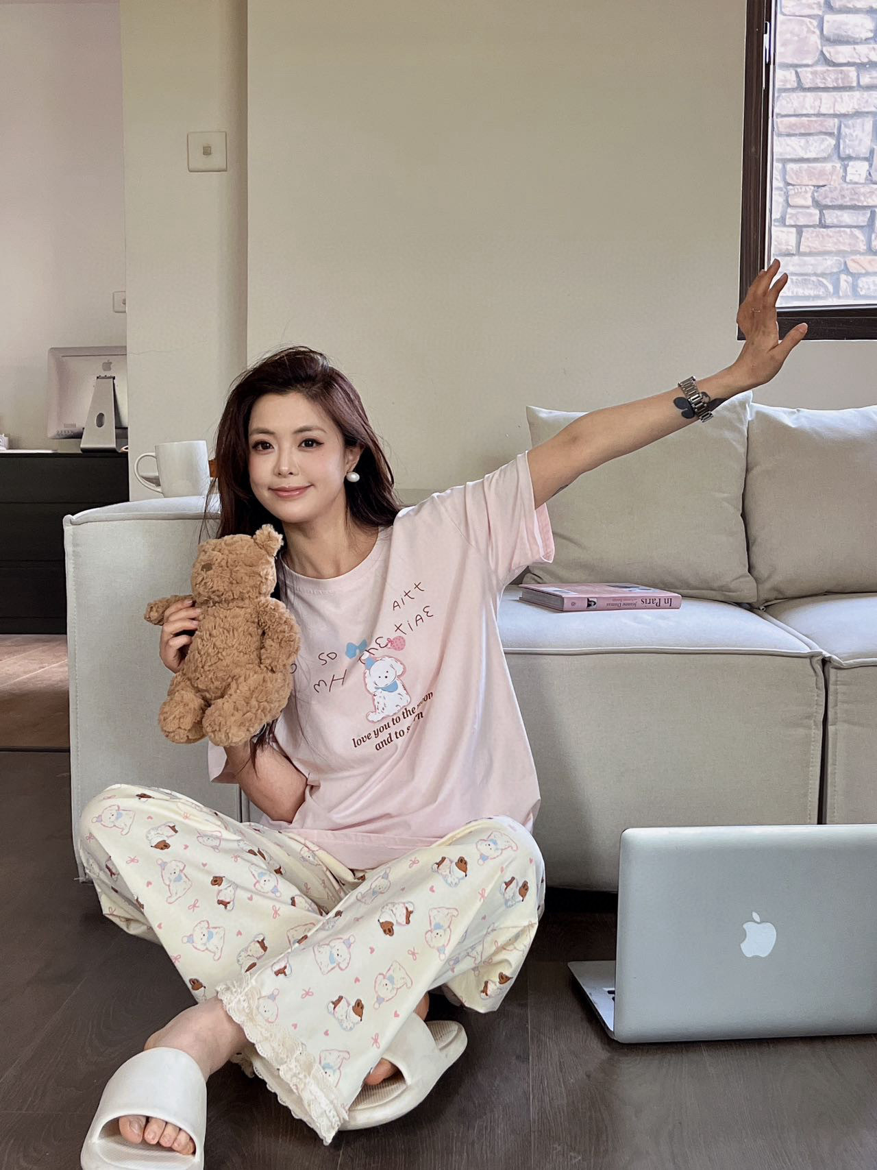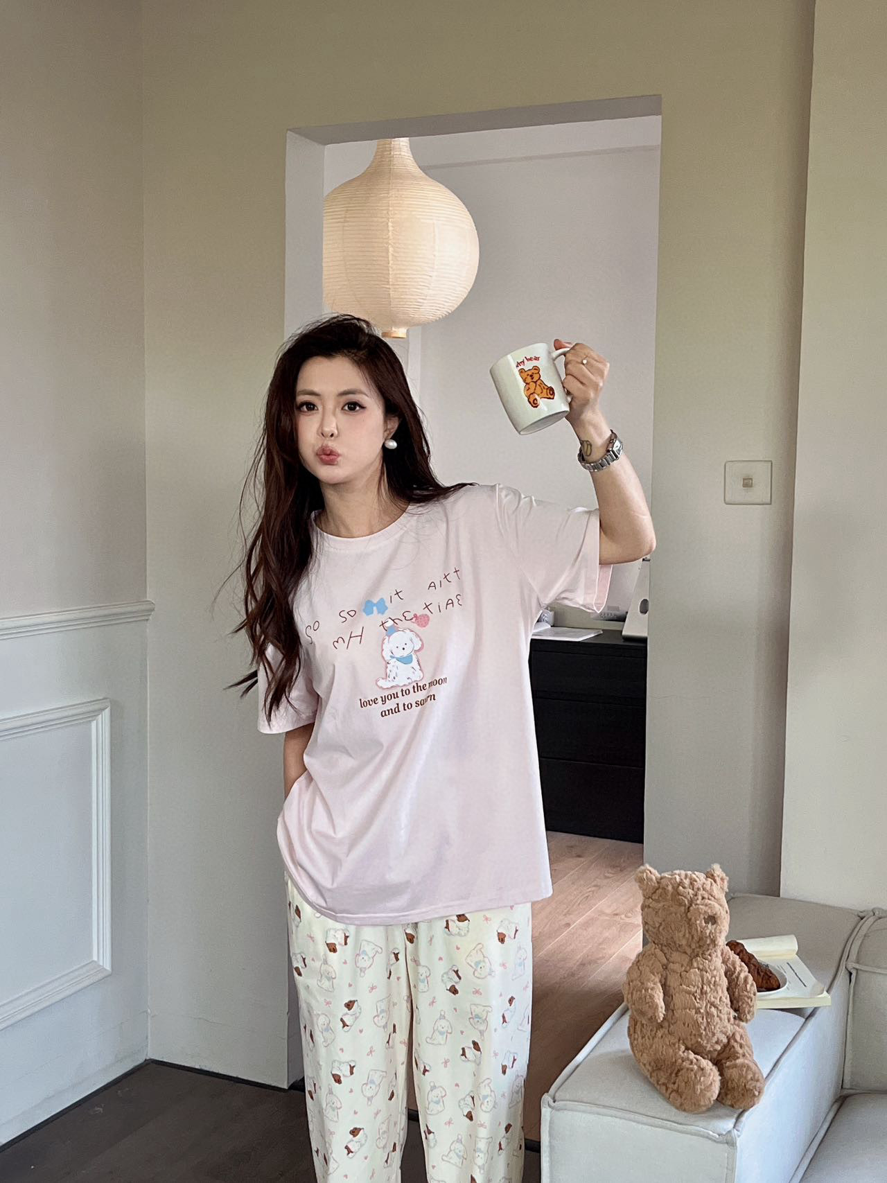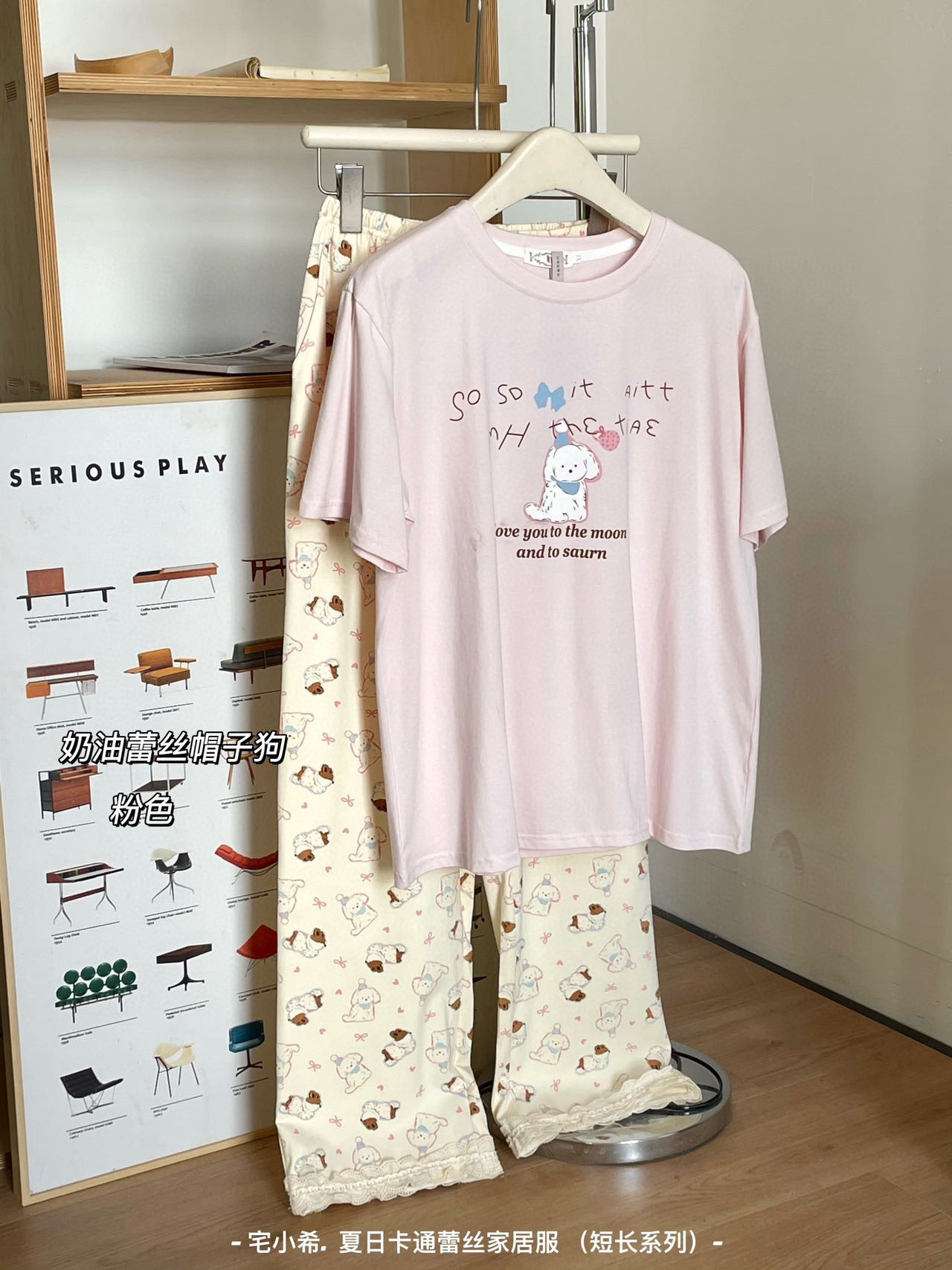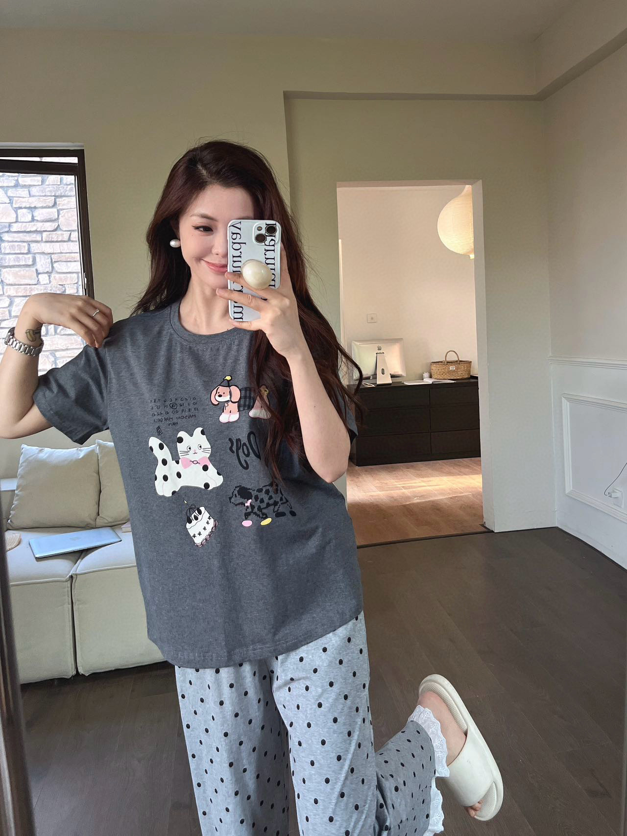 Zaoshixi 여름 만화 레이스 홈웨어 마이크로 비즈니스 인기 얼음 도자기 면 반팔 라운드 넥 느슨한 소녀 잠옷스토어 가기