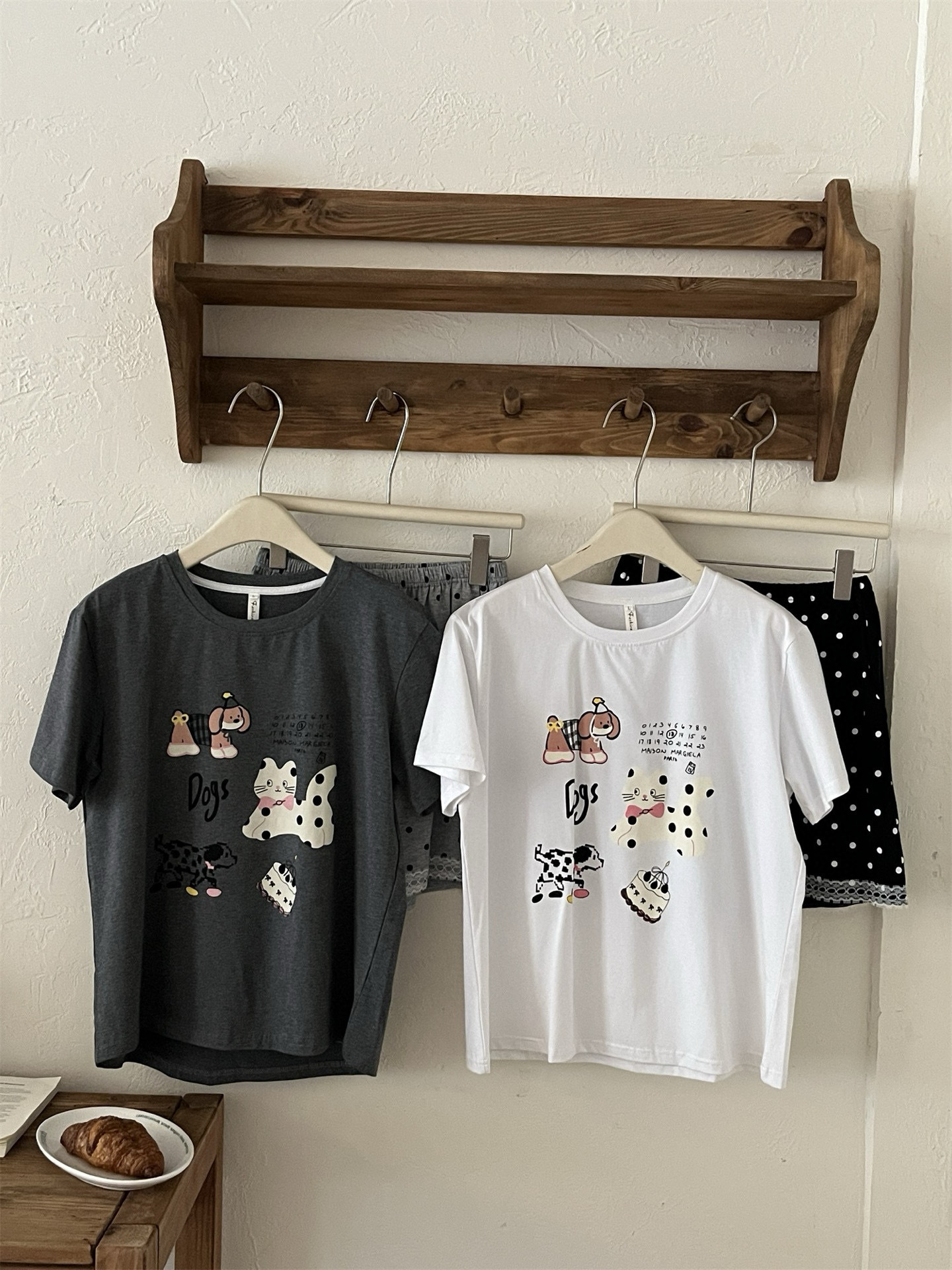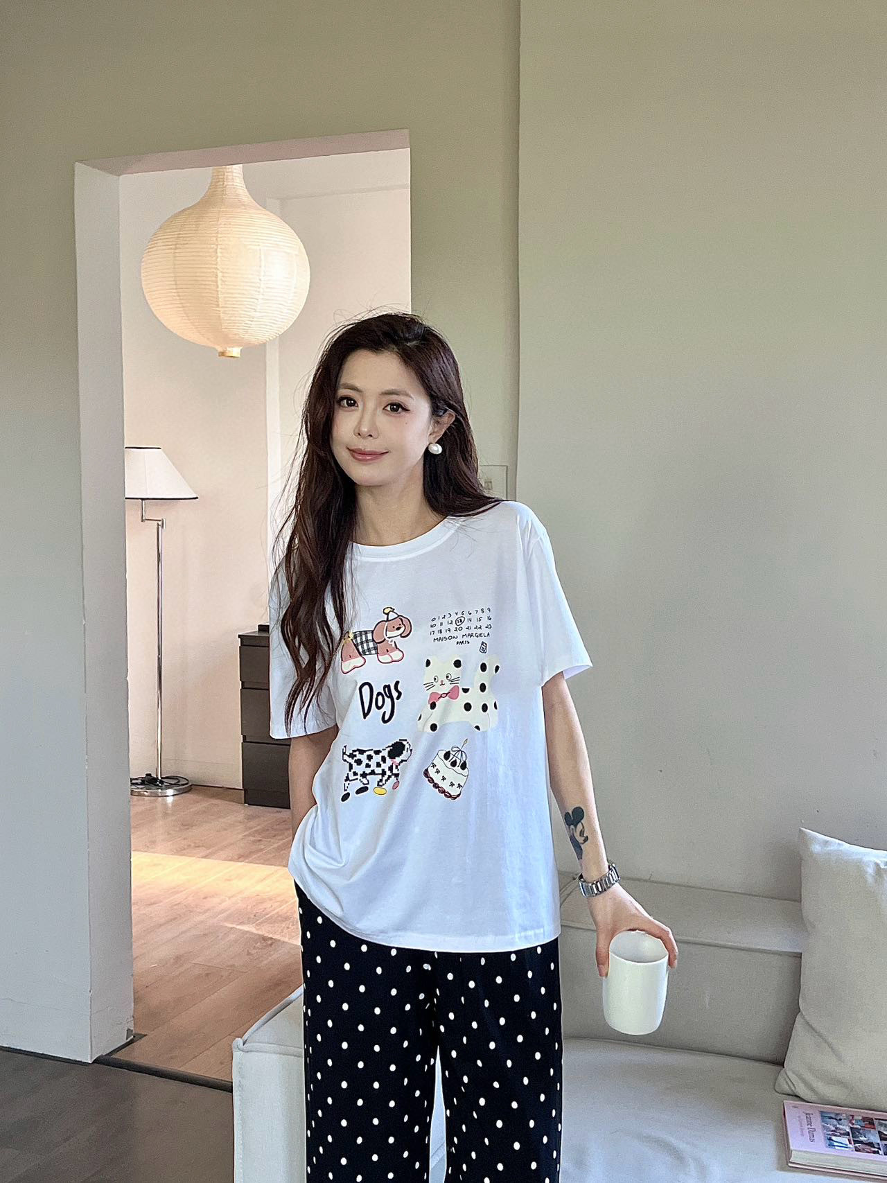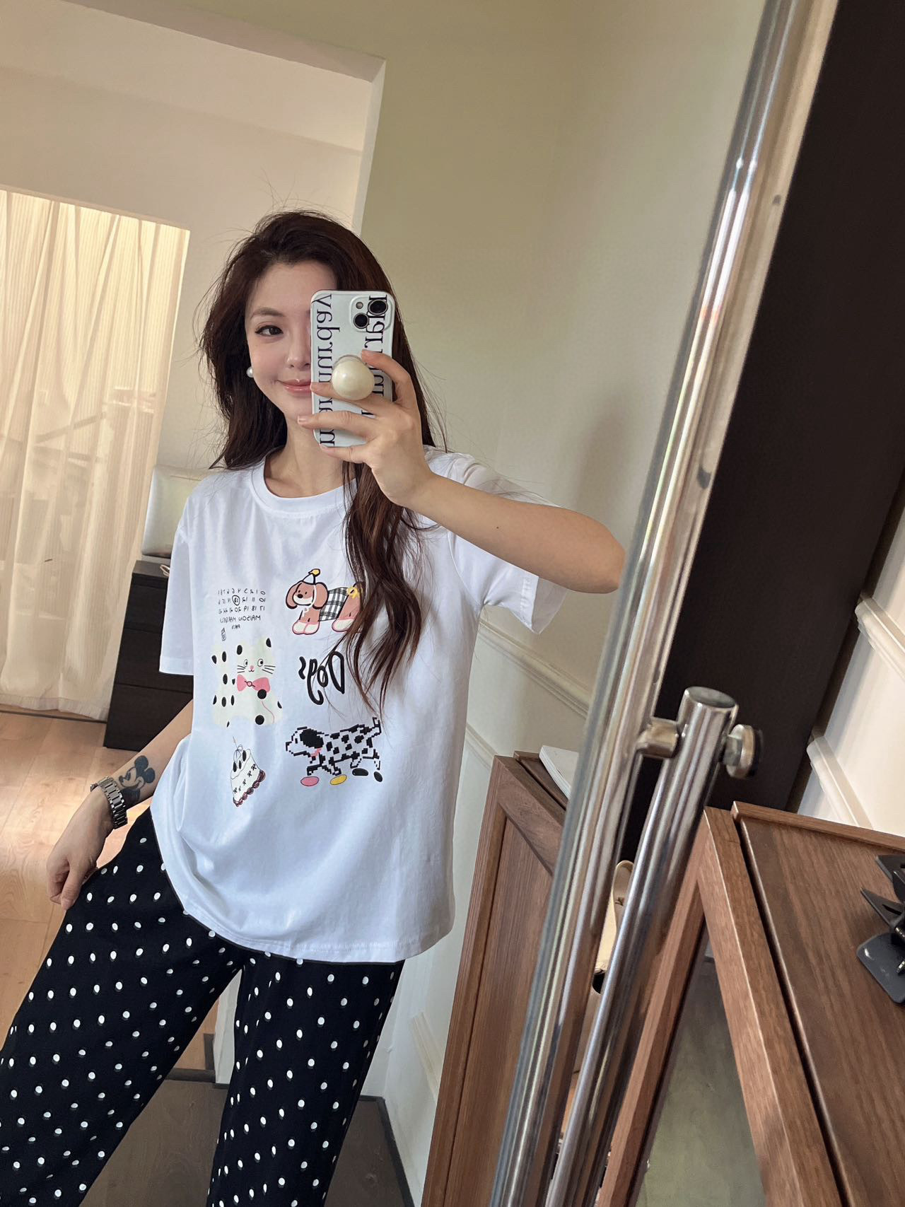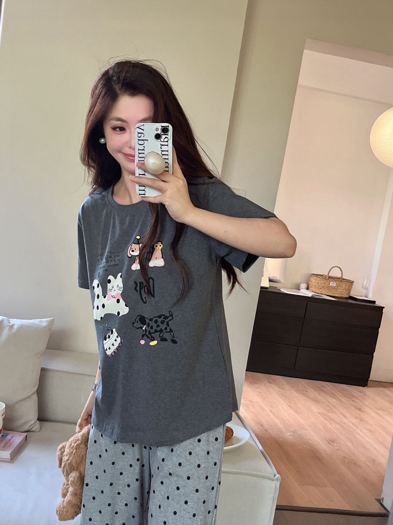 Zaoshixi 여름 만화 레이스 홈웨어 마이크로 비즈니스 인기 얼음 도자기 면 반팔 라운드 넥 느슨한 소녀 잠옷스토어 가기