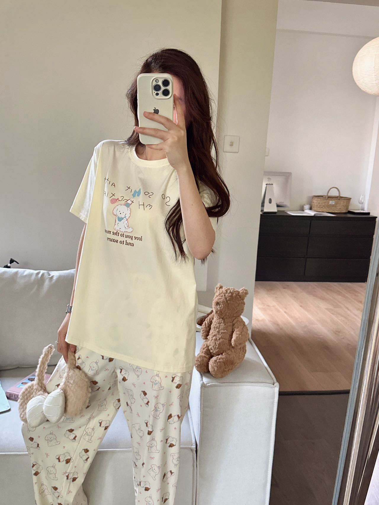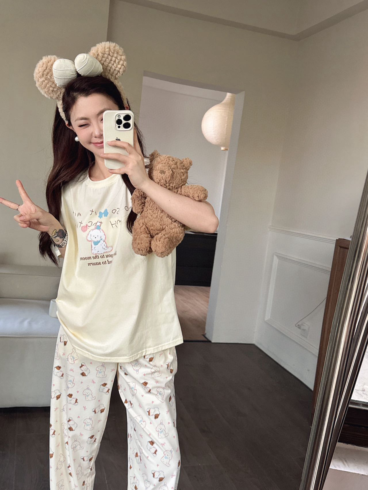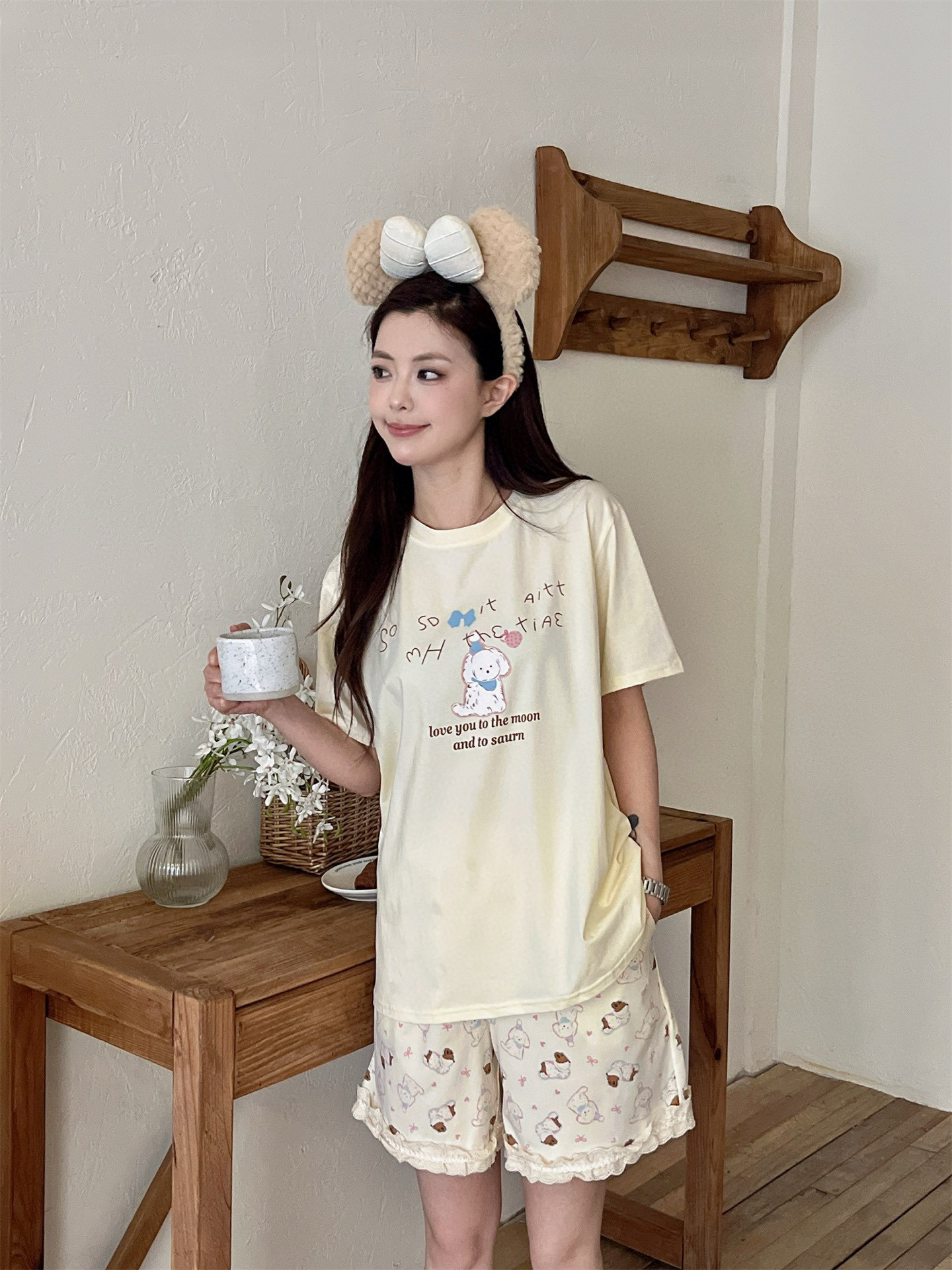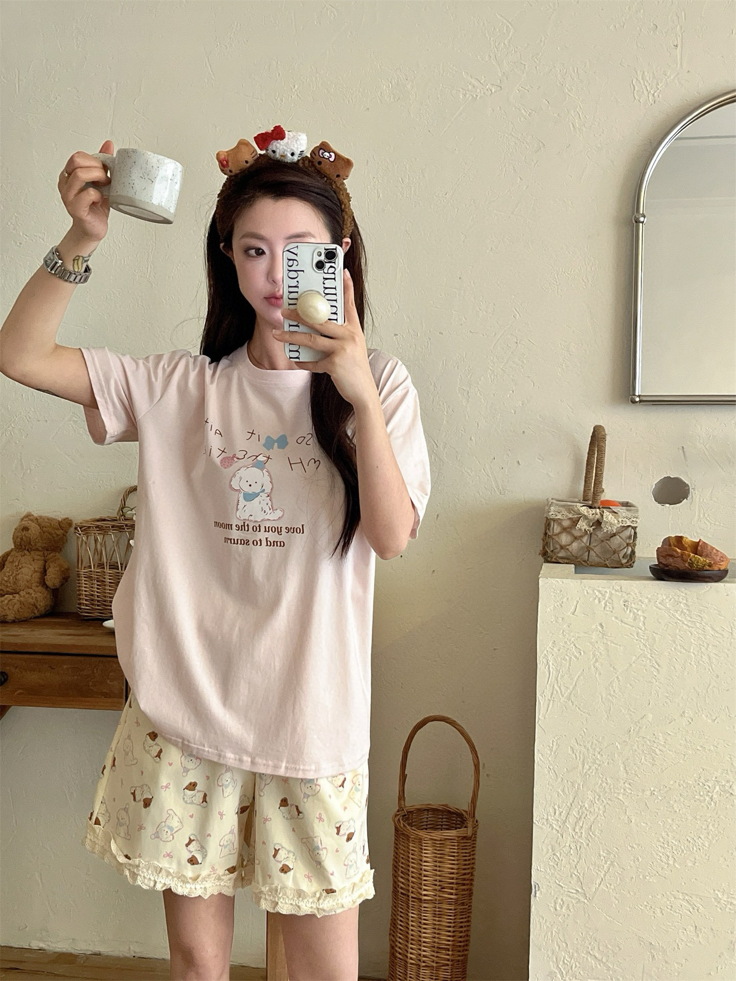 Zaoshixi 여름 만화 레이스 홈웨어 마이크로 비즈니스 인기 얼음 도자기 면 반팔 라운드 넥 느슨한 소녀 잠옷