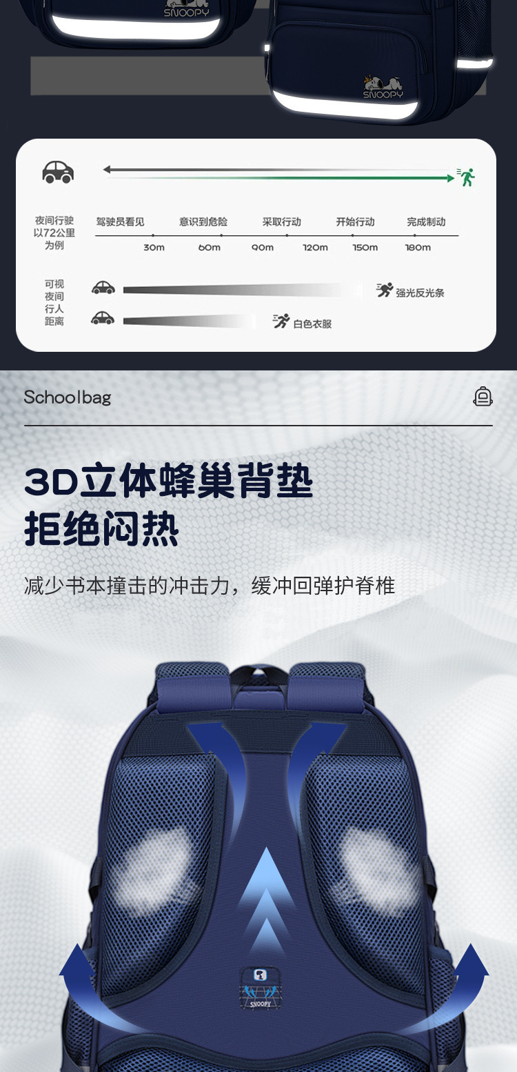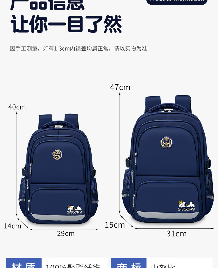 스누피 초등학생 남녀 4~6학년 척추 보호 및 부담 감소 대용량 경량 중학생 배낭