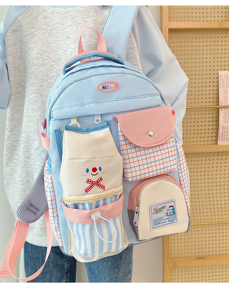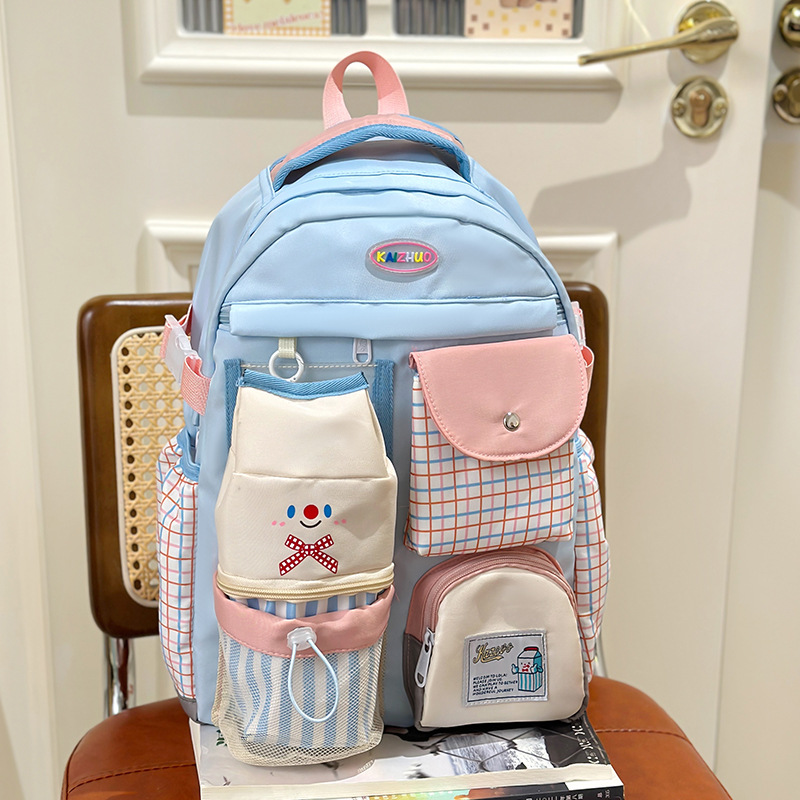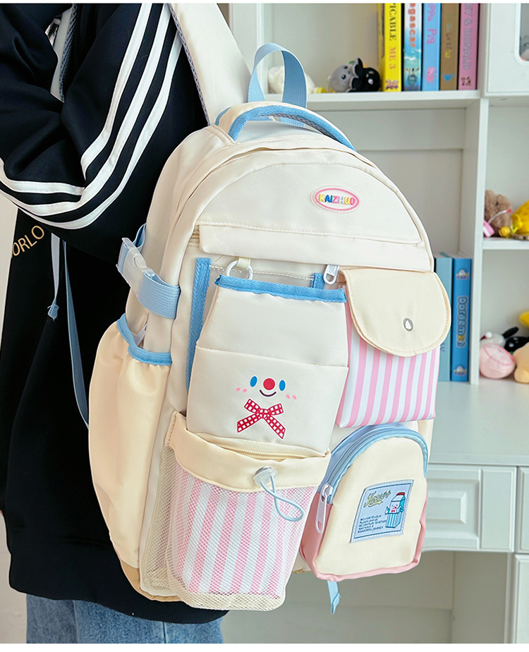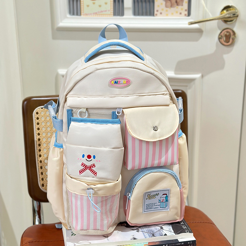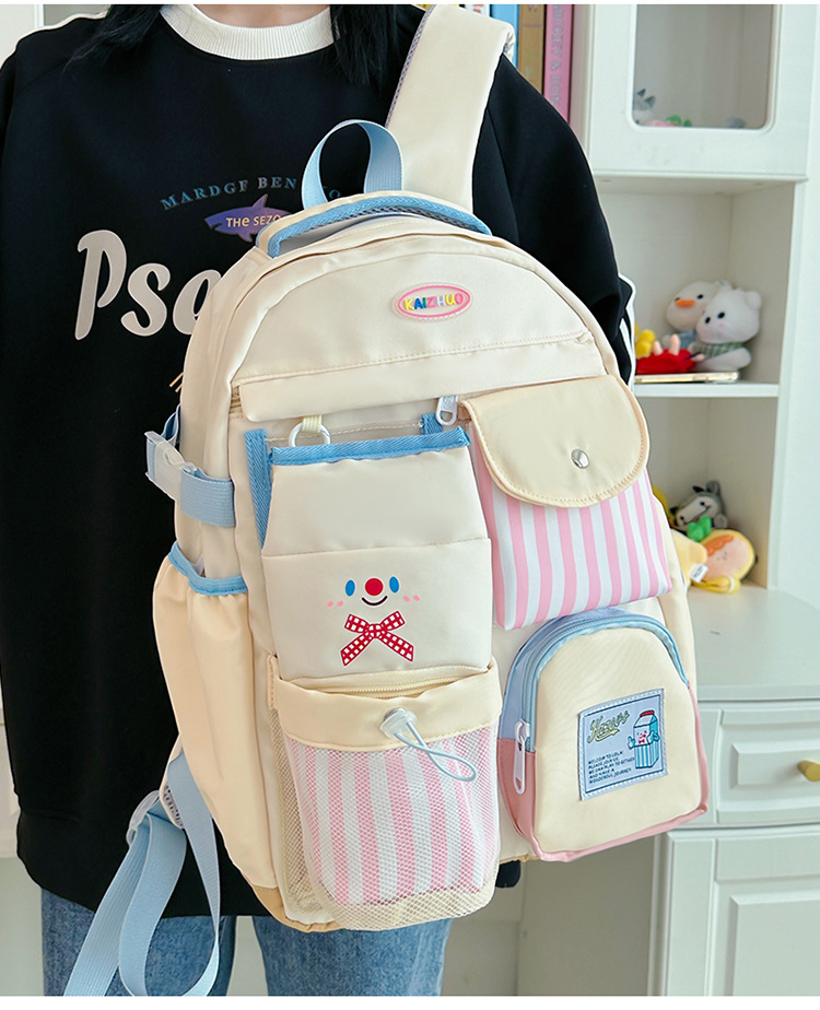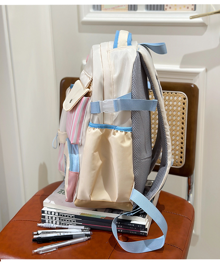 대학 스타일 귀여운 중학생 배낭 대용량 하라주쿠 스타일 고등학교 간단한 경량 멀티 포켓 배낭