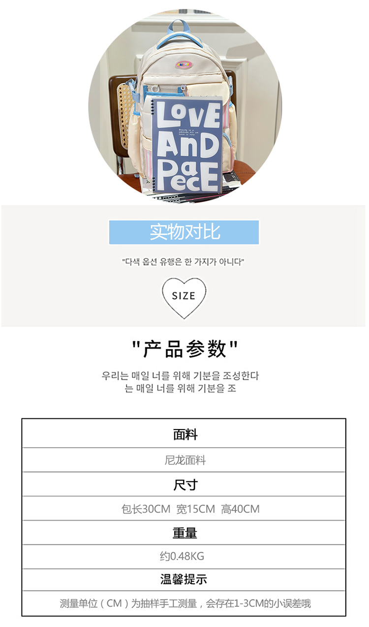 대학 스타일 귀여운 중학생 배낭 대용량 하라주쿠 스타일 고등학교 간단한 경량 멀티 포켓 배낭스토어 가기