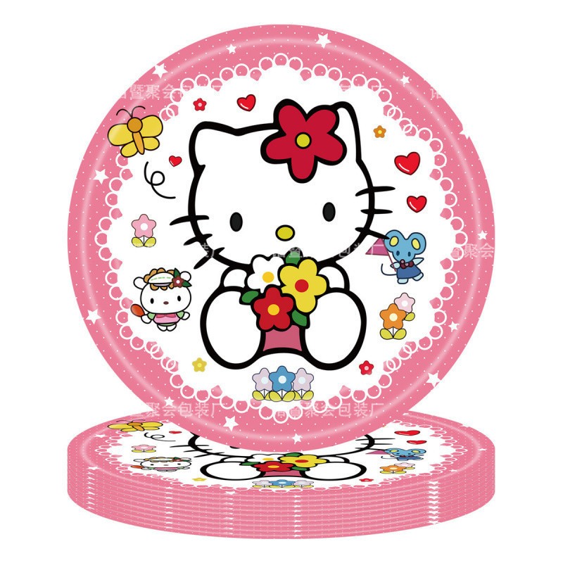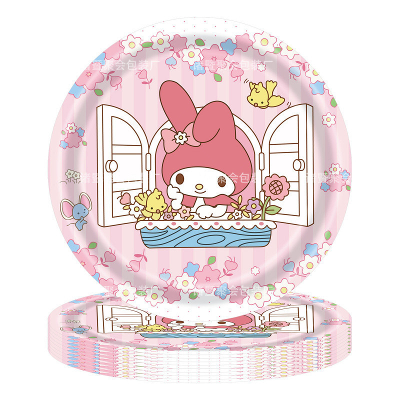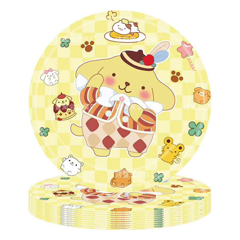 새로운 귀여운 만화 Sanrio Round 7inch 종이 접시 헬로 키티 옥 강아지 쿠로미 파티 장식 식기스토어 가기