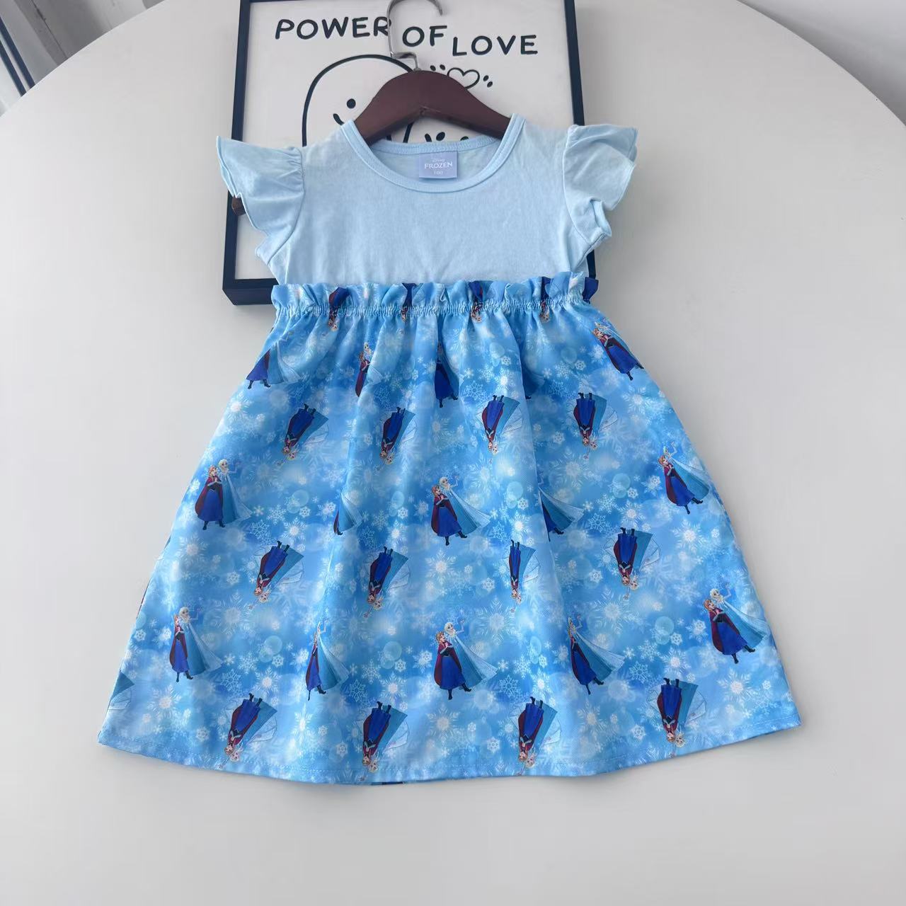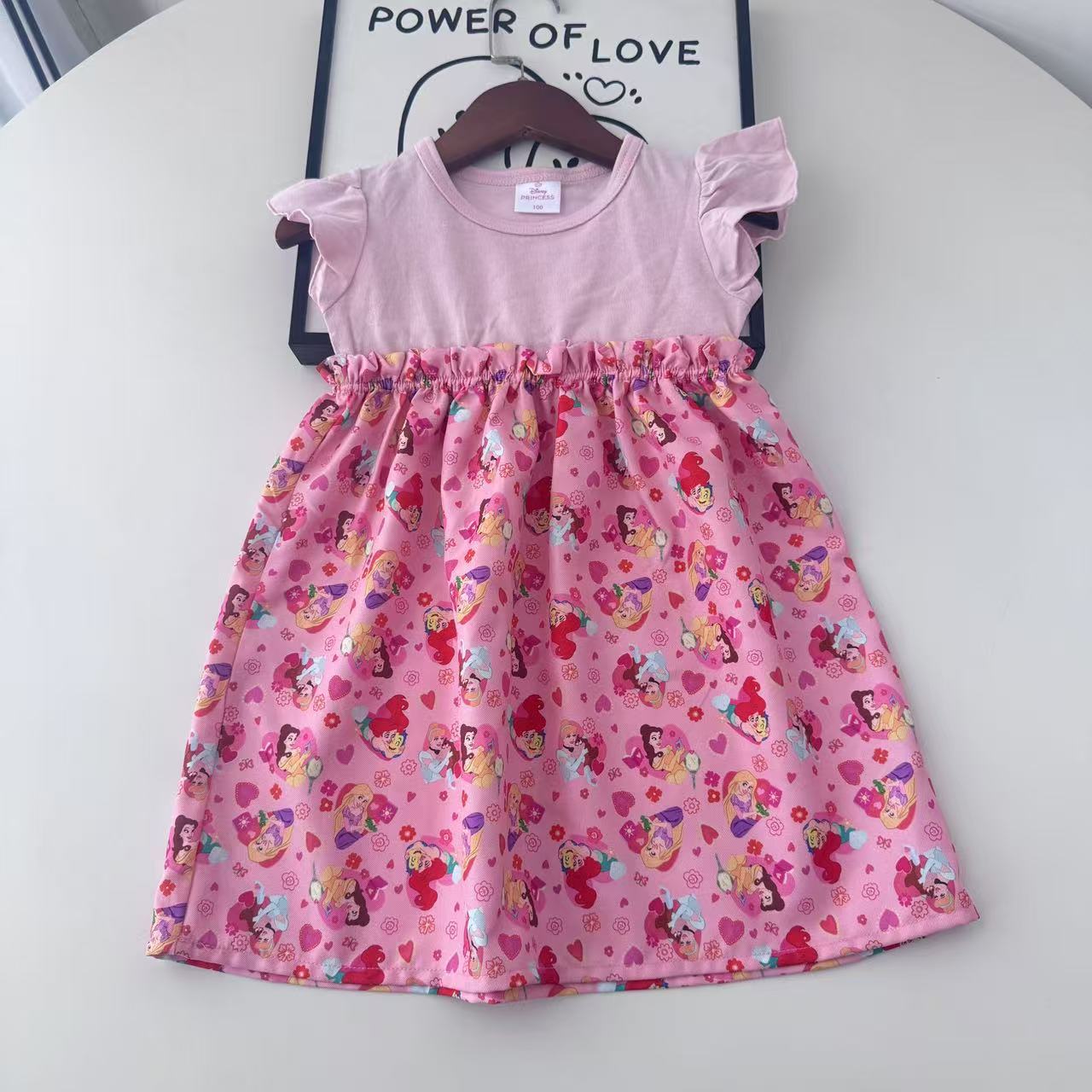 디지아 스티칭 전체 인쇄 원피스 봄/여름 2025 새로운 일본 싱글 소녀의 공주 바람 비행 소매 꽃 치마
