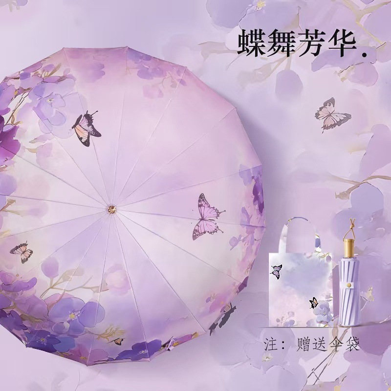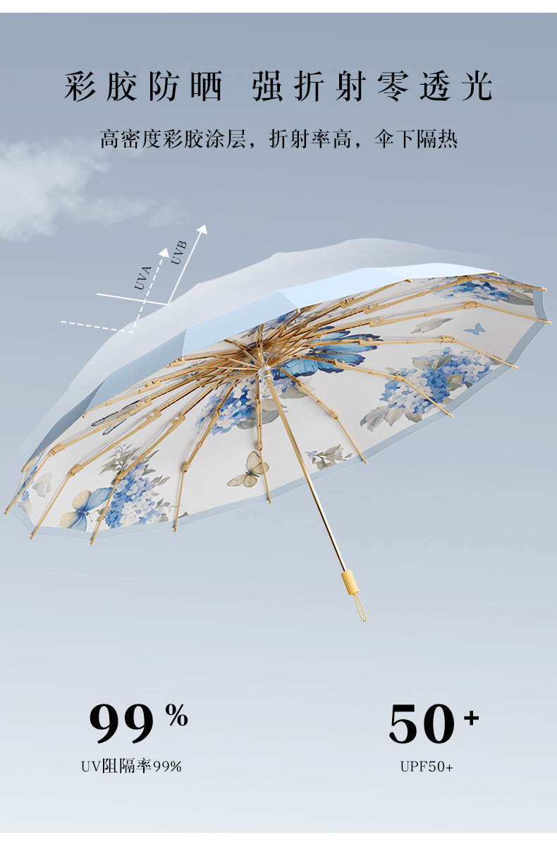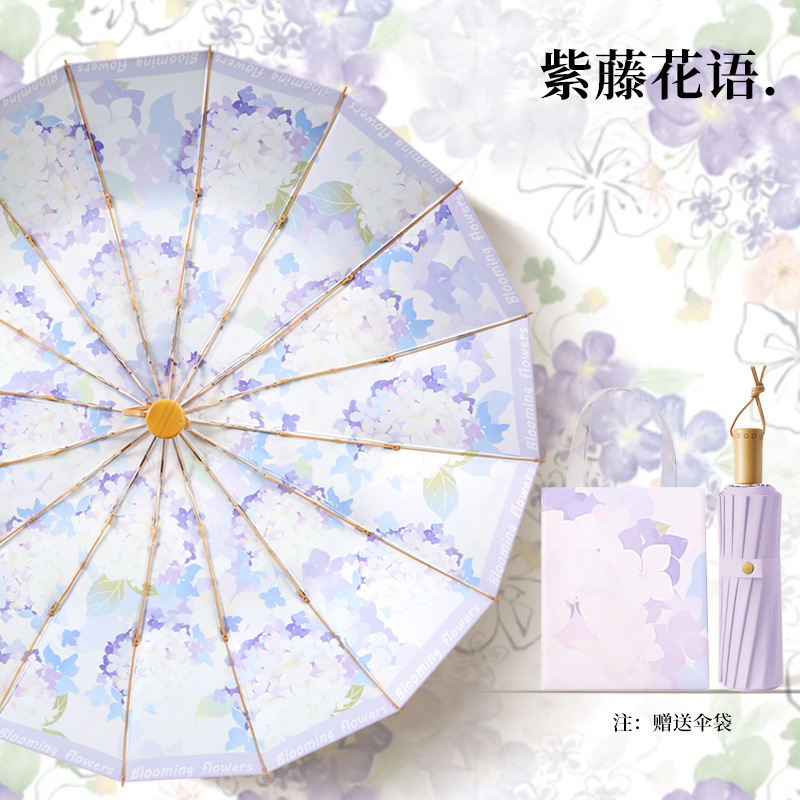 고대 스타일 16 본 우산 대형 접는 우산 비 또는 빛 여성용 파라솔 태양 보호 UV 컬러 접착제 태양 우산스토어 가기