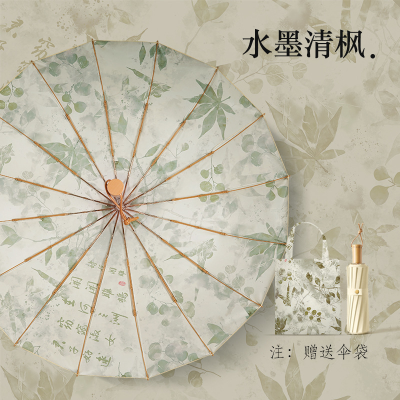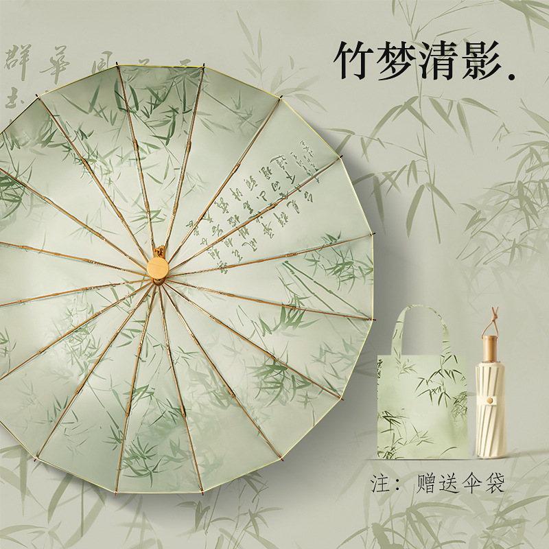 고대 스타일 16 본 우산 대형 접는 우산 비 또는 빛 여성용 파라솔 태양 보호 UV 컬러 접착제 태양 우산