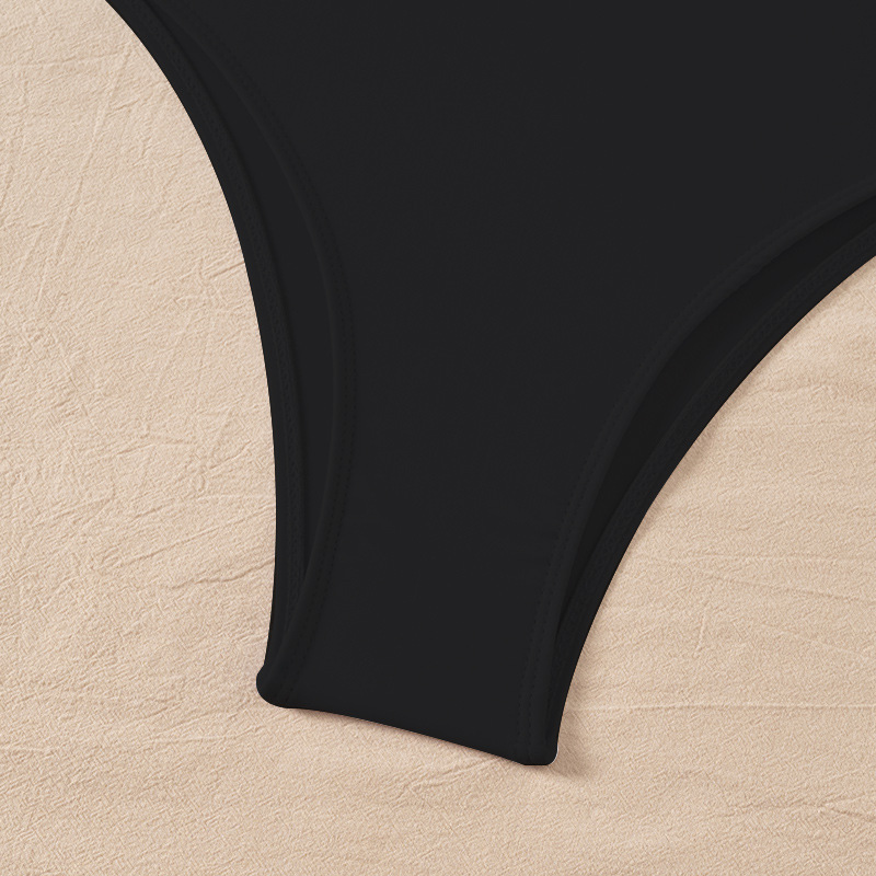 2025 유럽과 미국의 국경 깊은 V 섹시한 비키니는 단색 원피스 수영복 여성 대외 무역 삼각형 속이 빈 수영복을 모았습니다.