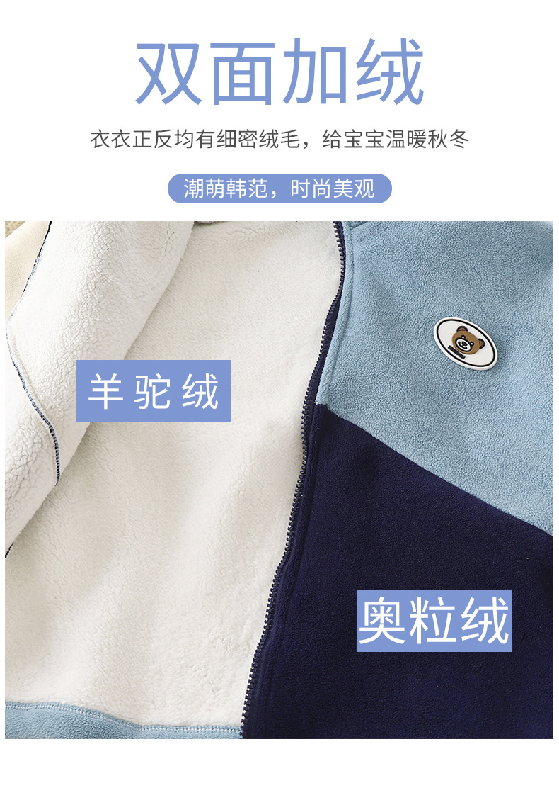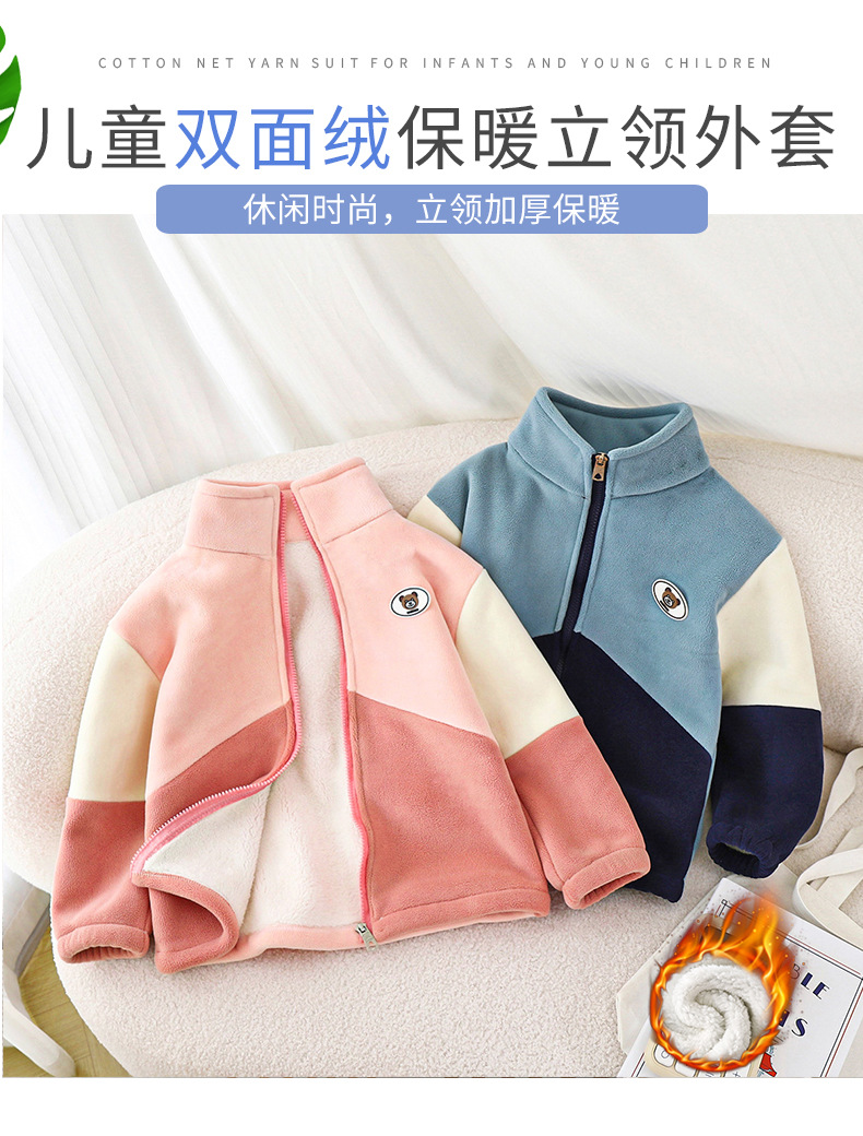 Aoli 벨벳 아동용 벨벳 따뜻한 재킷 스플 라이스 가을, 겨울 새로운 색상 매칭 인기 탑 소년 소녀 의류스토어 가기