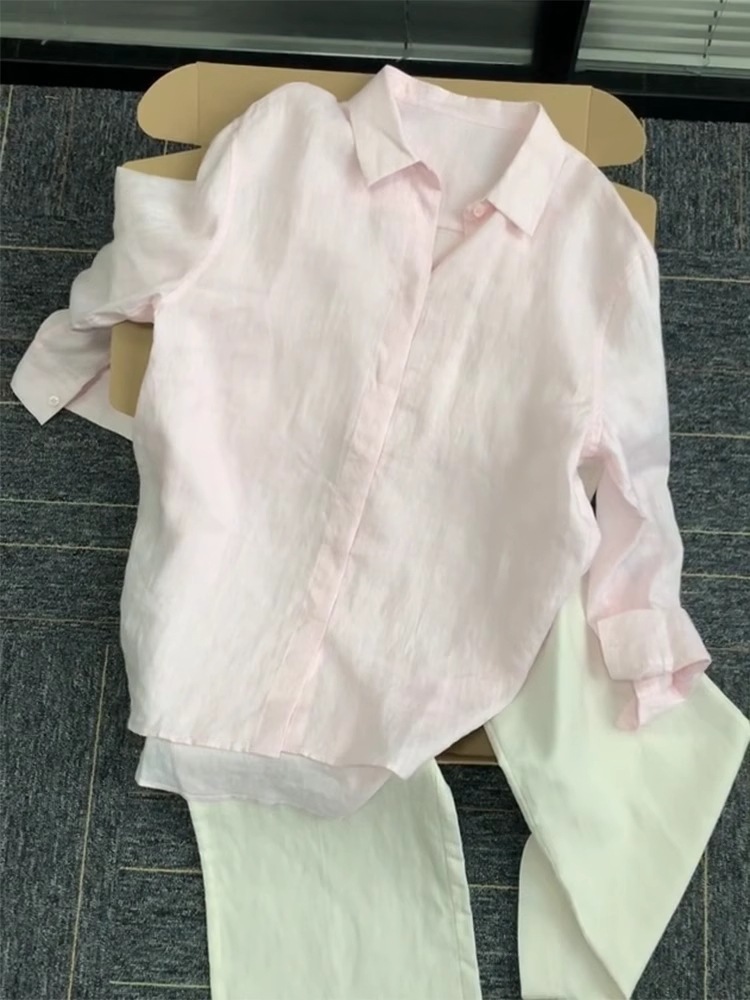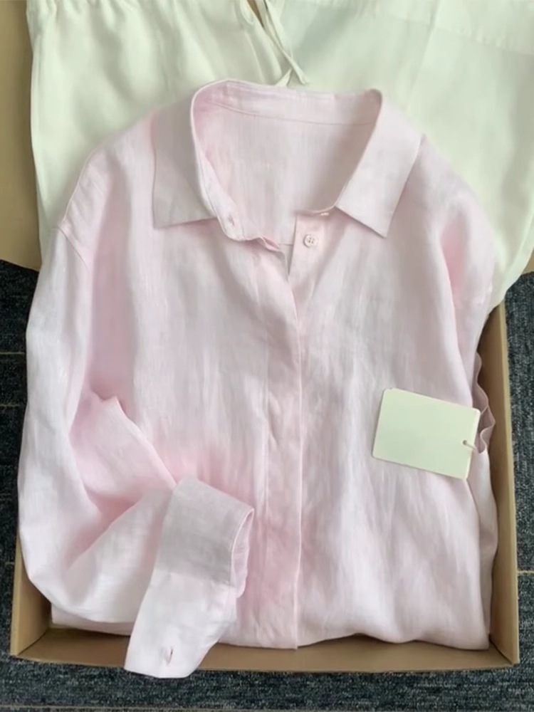 프렌치 리넨 셔츠 여성의 여름 얇은 느슨한 오래 된 돈 바람 리넨 셔츠 긴 소매 선 스크린 면 리넨 탑