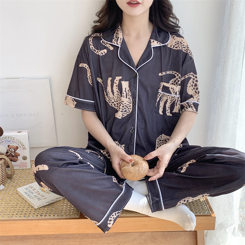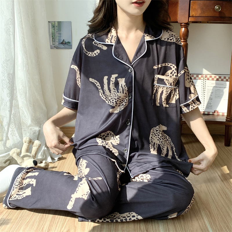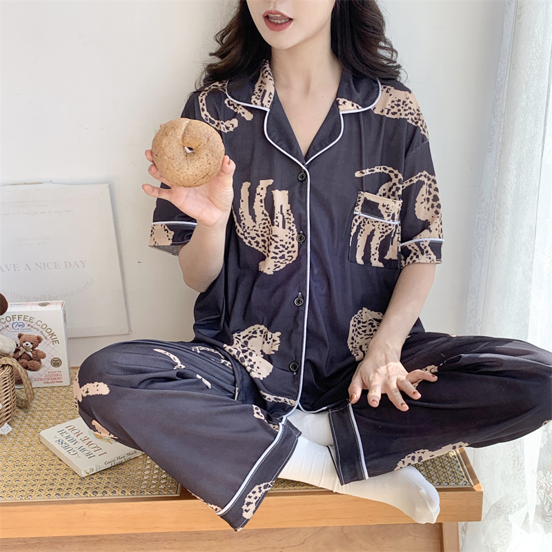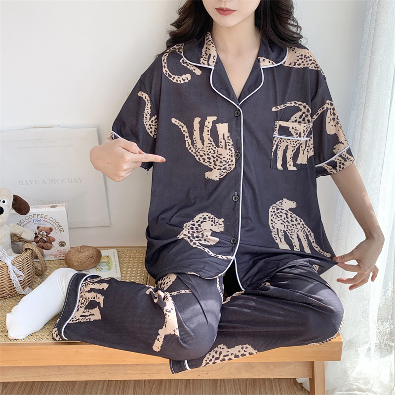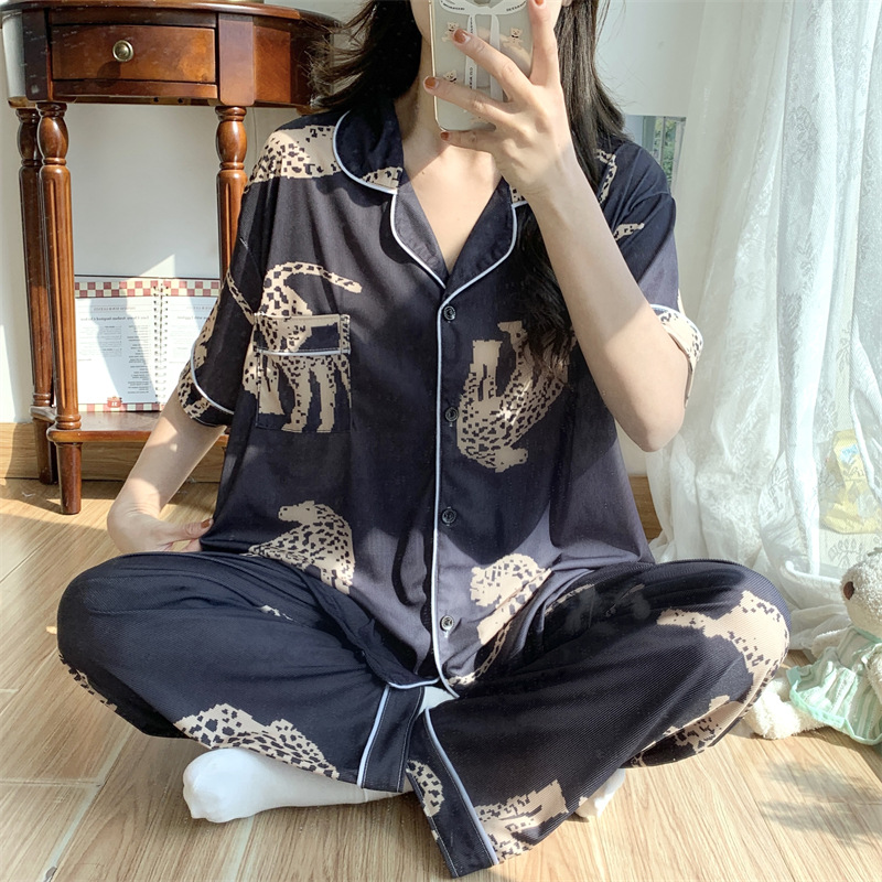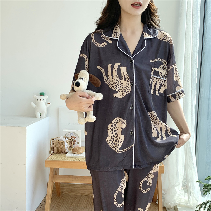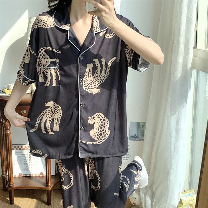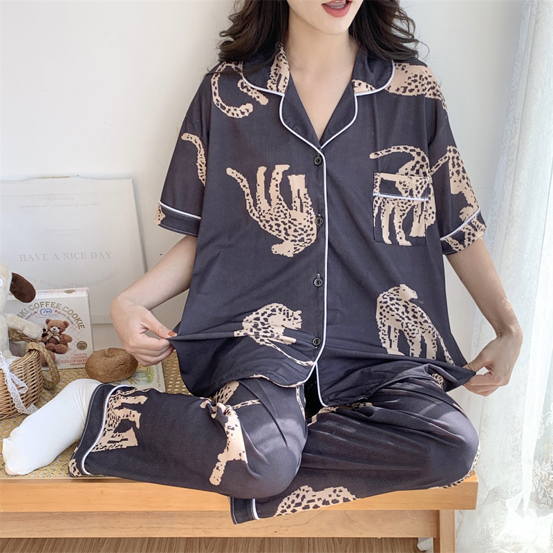 여성용 아이스 실크 반팔 긴바지 3피스 잠옷 세트, 여름용, 큰 사이즈, 뚱뚱한 여성용, 150kg 사이즈, 루즈핏, 만화 캐릭터 홈웨어스토어 가기