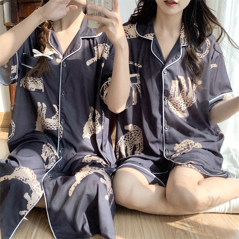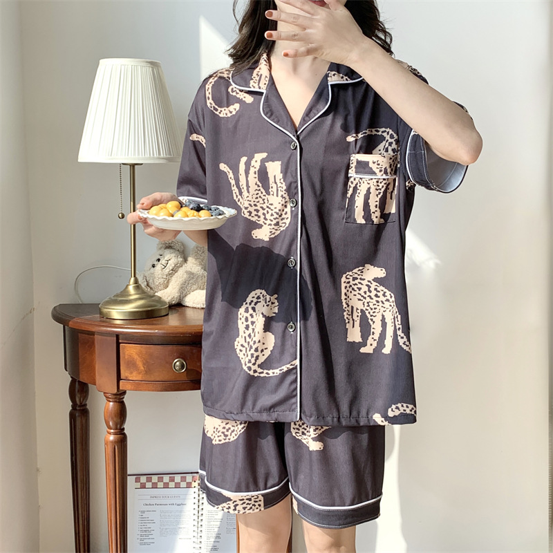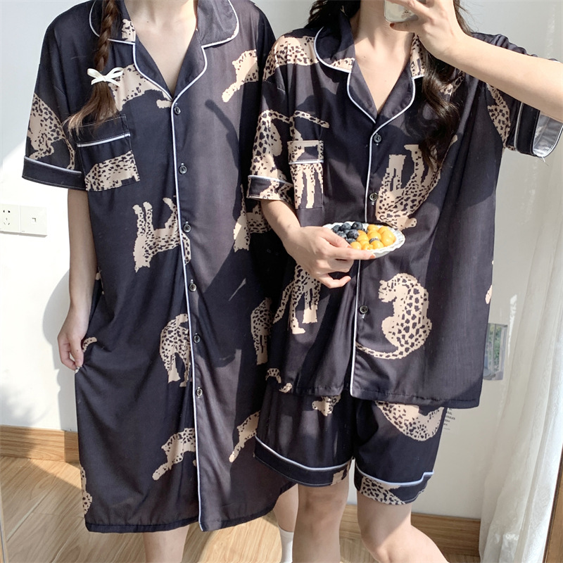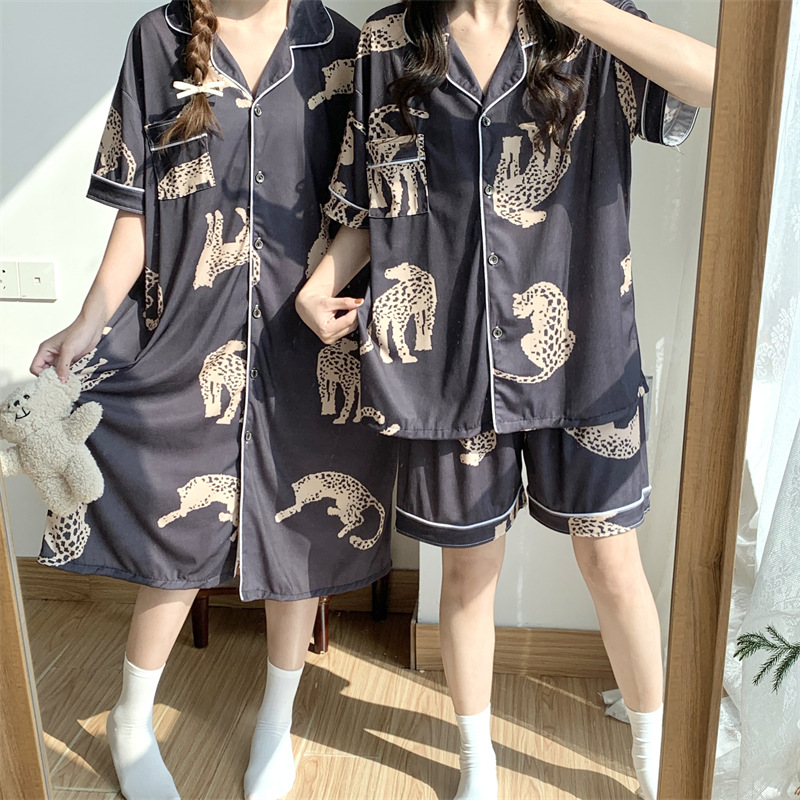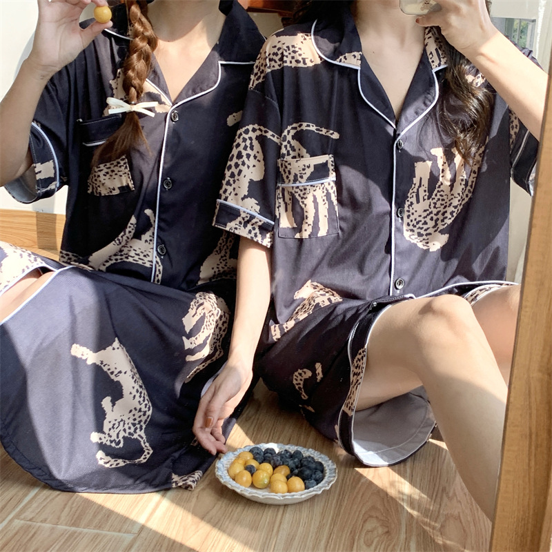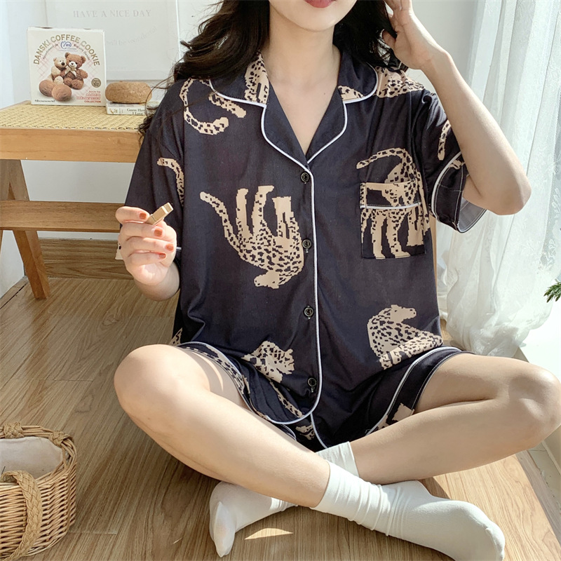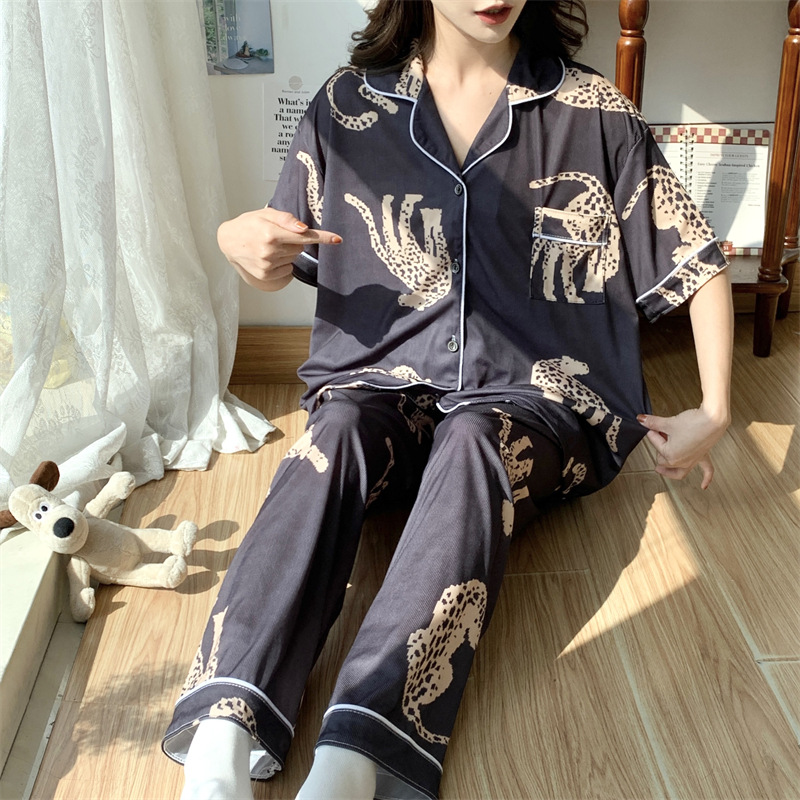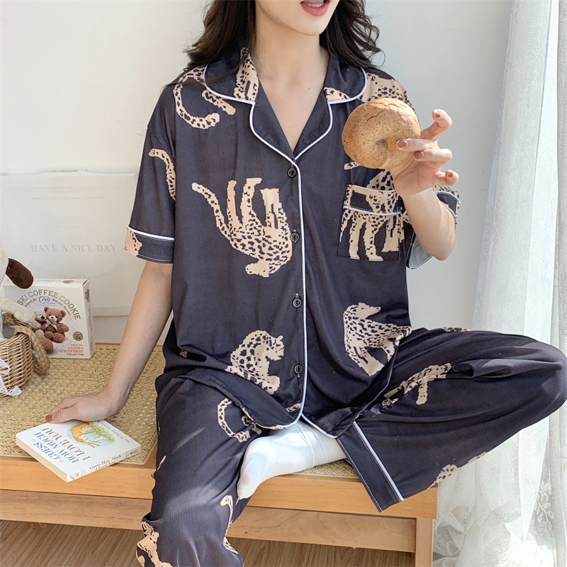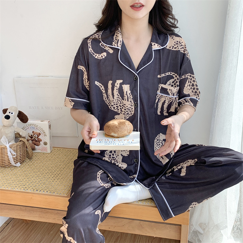 여성용 아이스 실크 반팔 긴바지 3피스 잠옷 세트, 여름용, 큰 사이즈, 뚱뚱한 여성용, 150kg 사이즈, 루즈핏, 만화 캐릭터 홈웨어스토어 가기