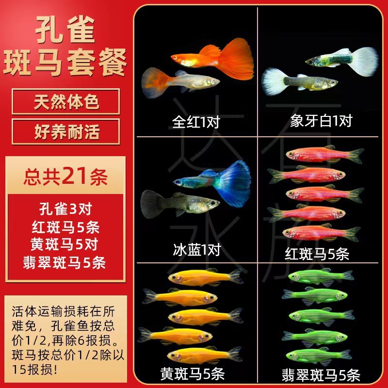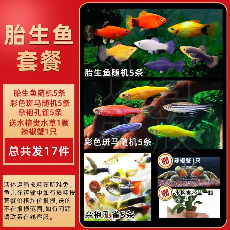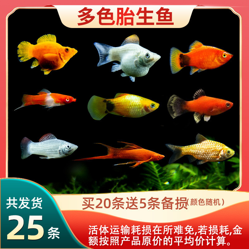 • 다색 태생 물고기 20마리 무료 5마리
