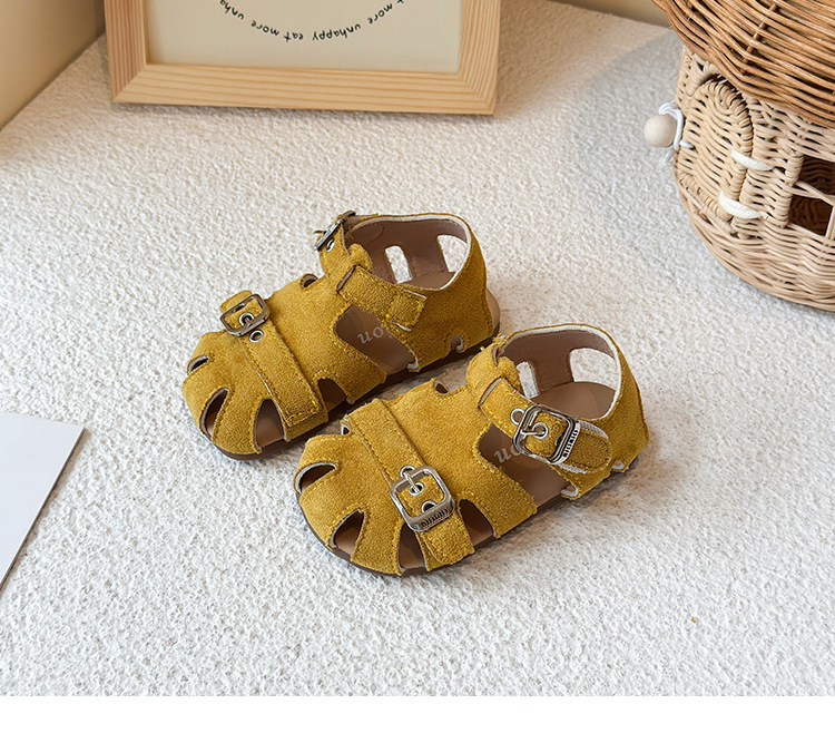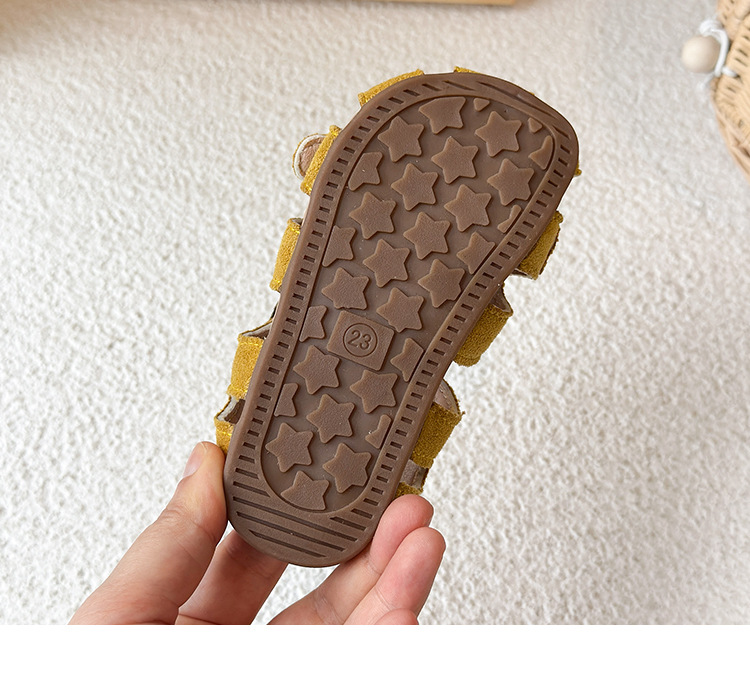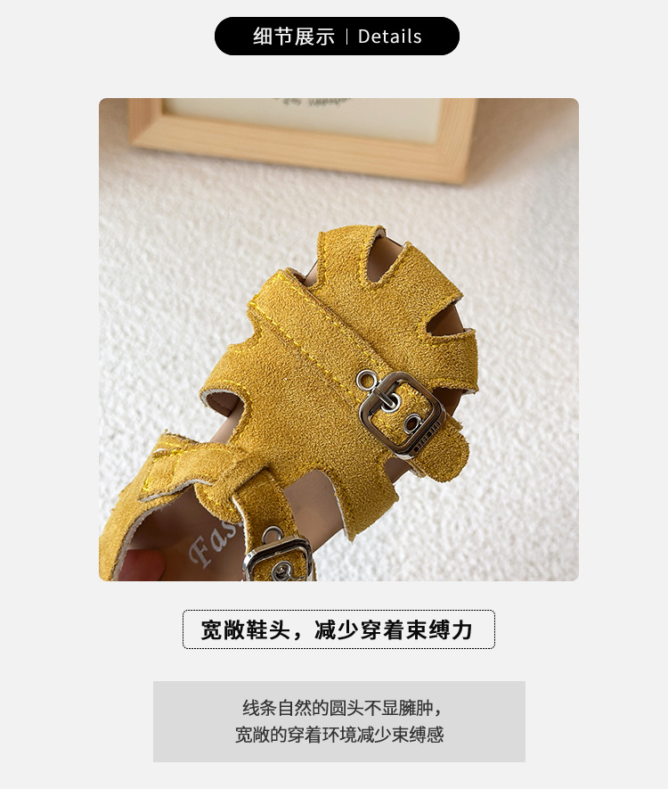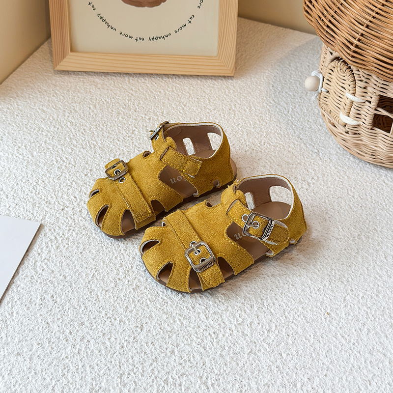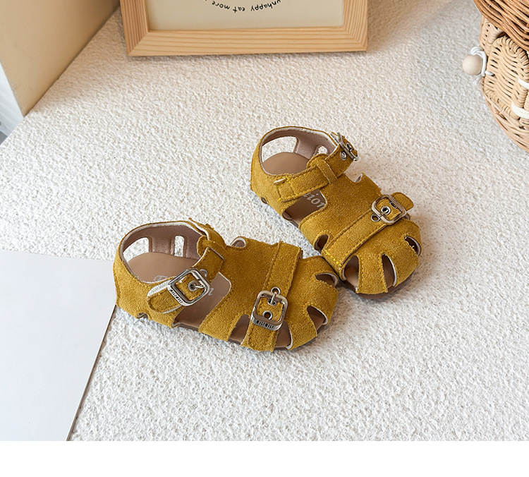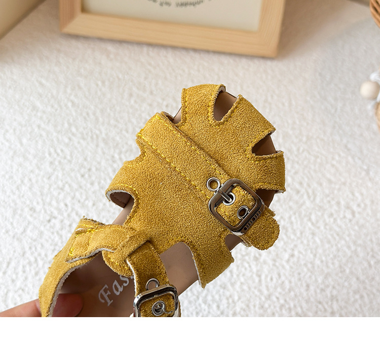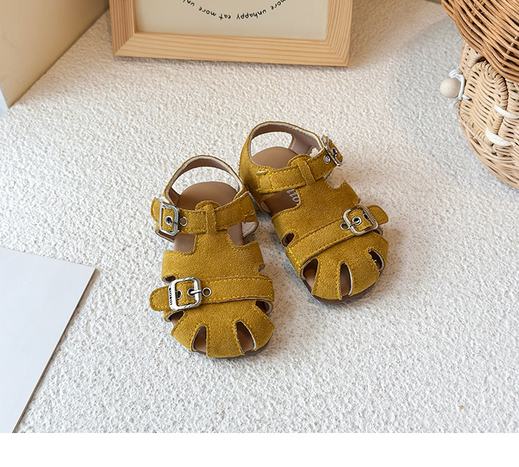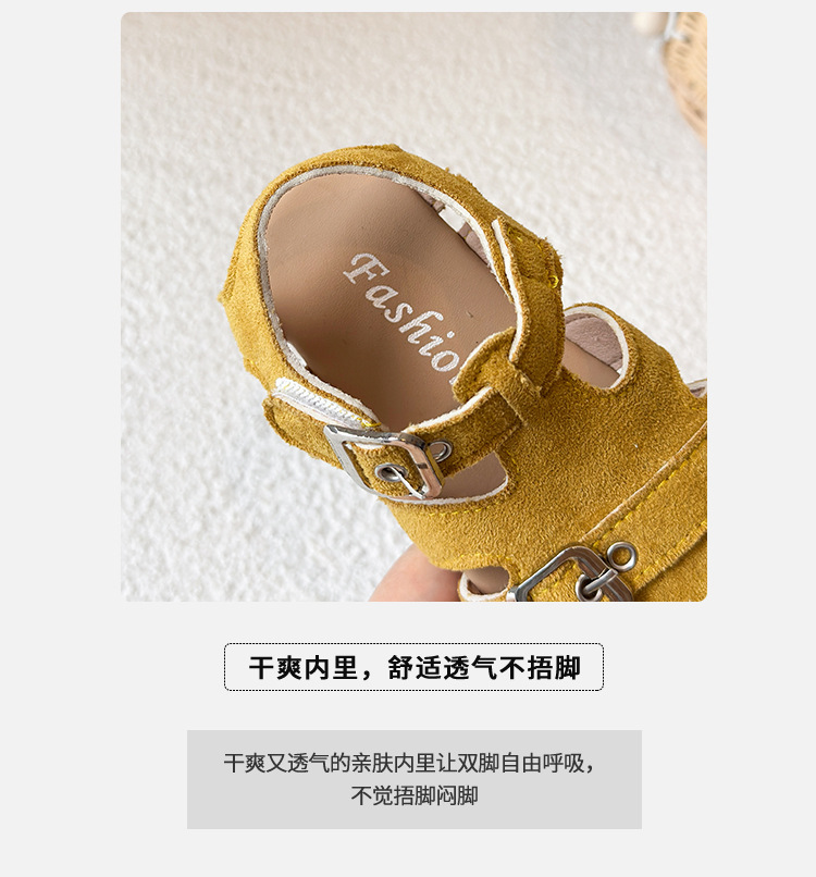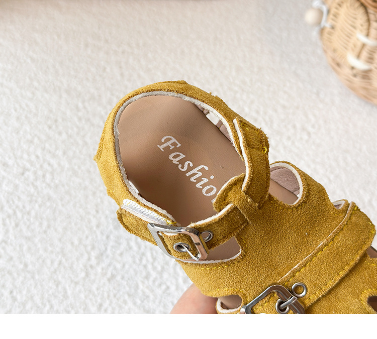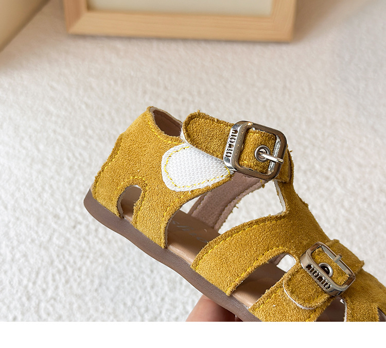Baotou 노란색 슈퍼 아름다운 돼지 케이지 젖빛 가죽 어린이와 소녀 영국 스타일 작은 샌들 힘줄 바닥 미끄럼 방지 신발스토어 가기