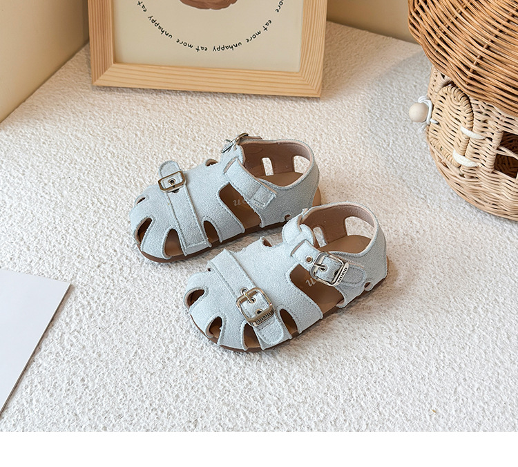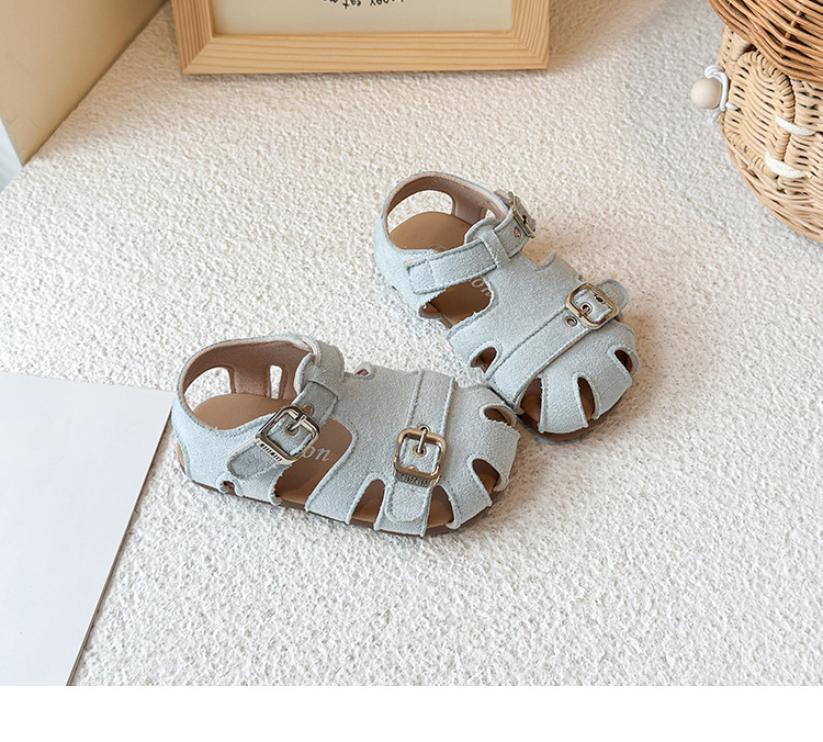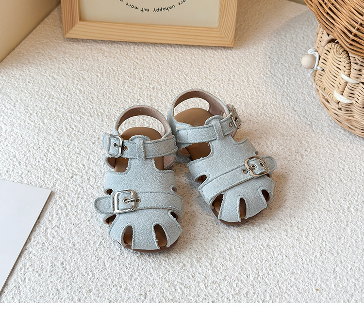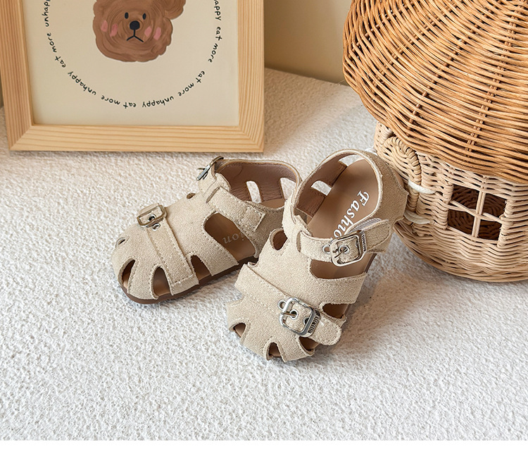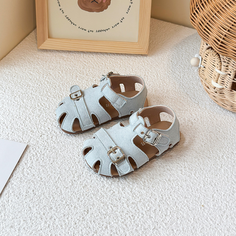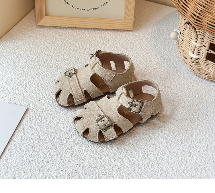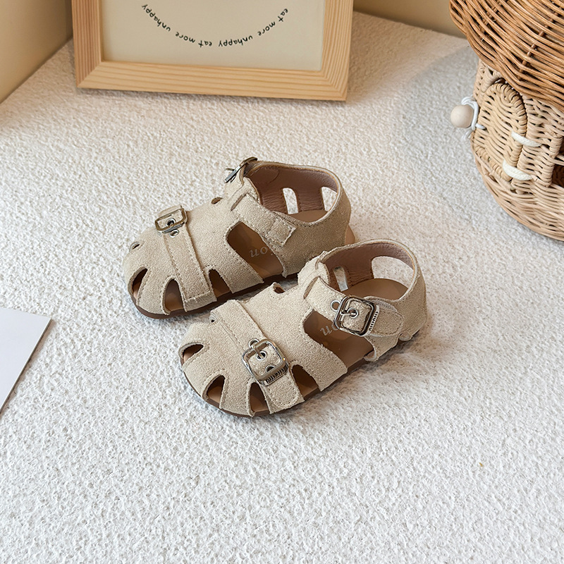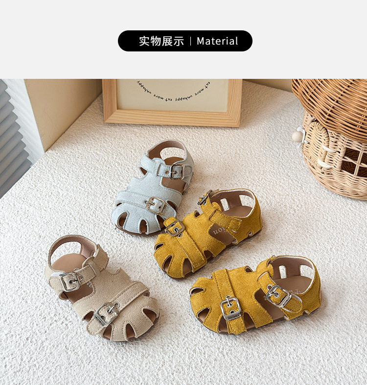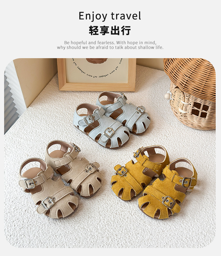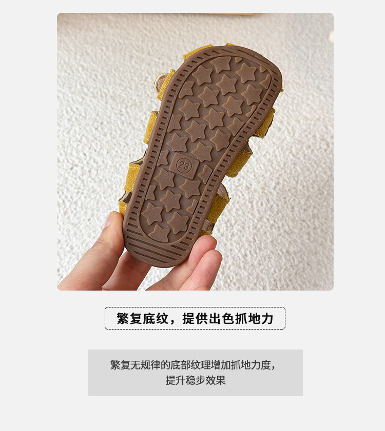 Baotou 노란색 슈퍼 아름다운 돼지 케이지 젖빛 가죽 어린이와 소녀 영국 스타일 작은 샌들 힘줄 바닥 미끄럼 방지 신발스토어 가기