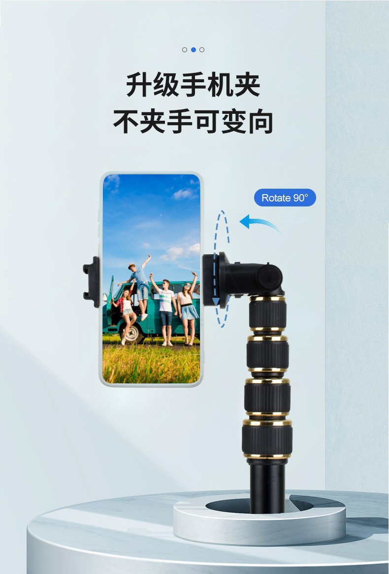 공장 직판 휴대폰 라이브 방송 촬영 스탠드 플로어 스탠딩 텔레스코픽 2.1m도 회전 골드 삼각대 듀얼폰용