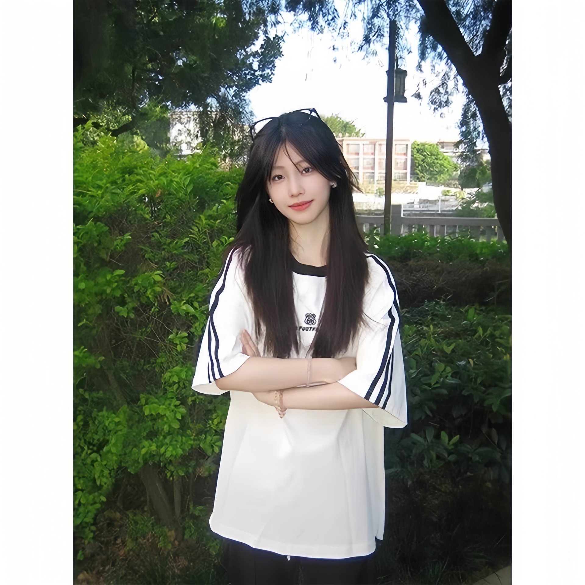 여성, 고등학생 및 대학생을위한 순면 흰색 세 줄무늬 반팔 티셔츠 여름 새 느슨한 반팔 탑