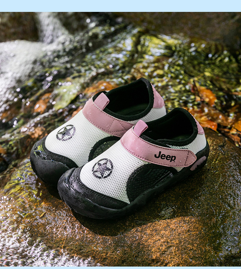 지프 어린이 신발 2025 여름 메쉬 새로운 어린이 발가락 발가락 안티 킥 부드러운 바닥 어린이 신발 소년과 소녀 비치 샌들