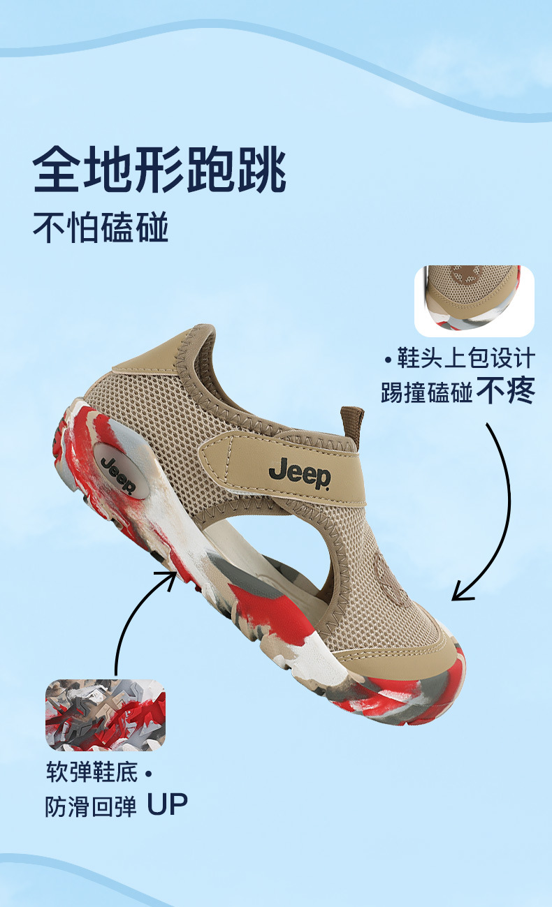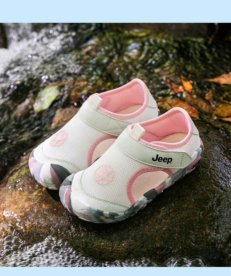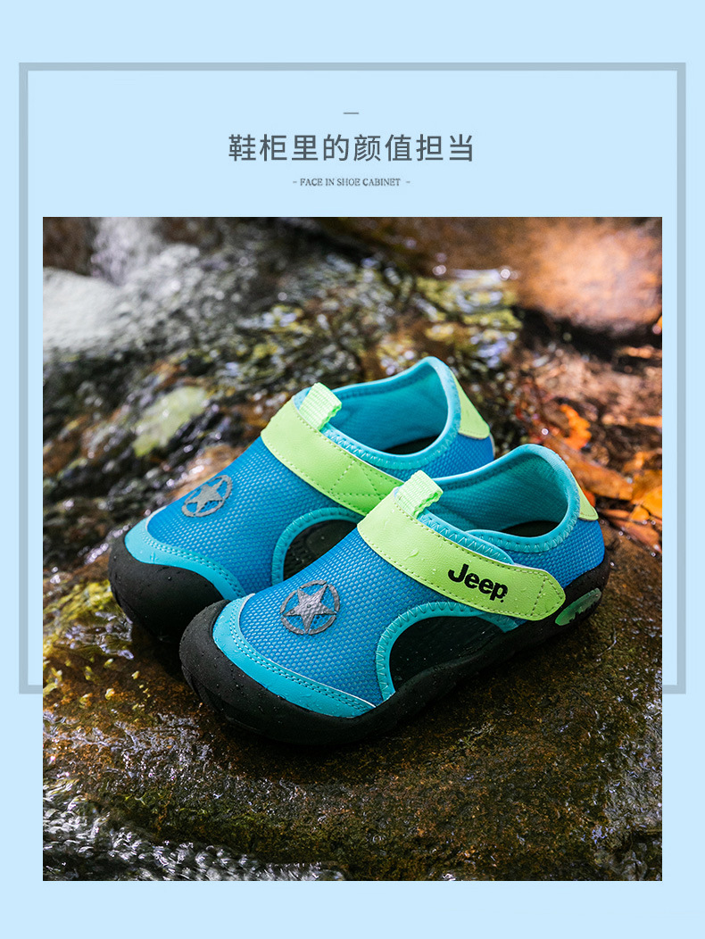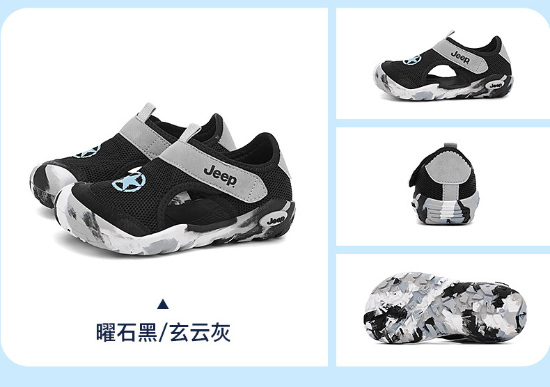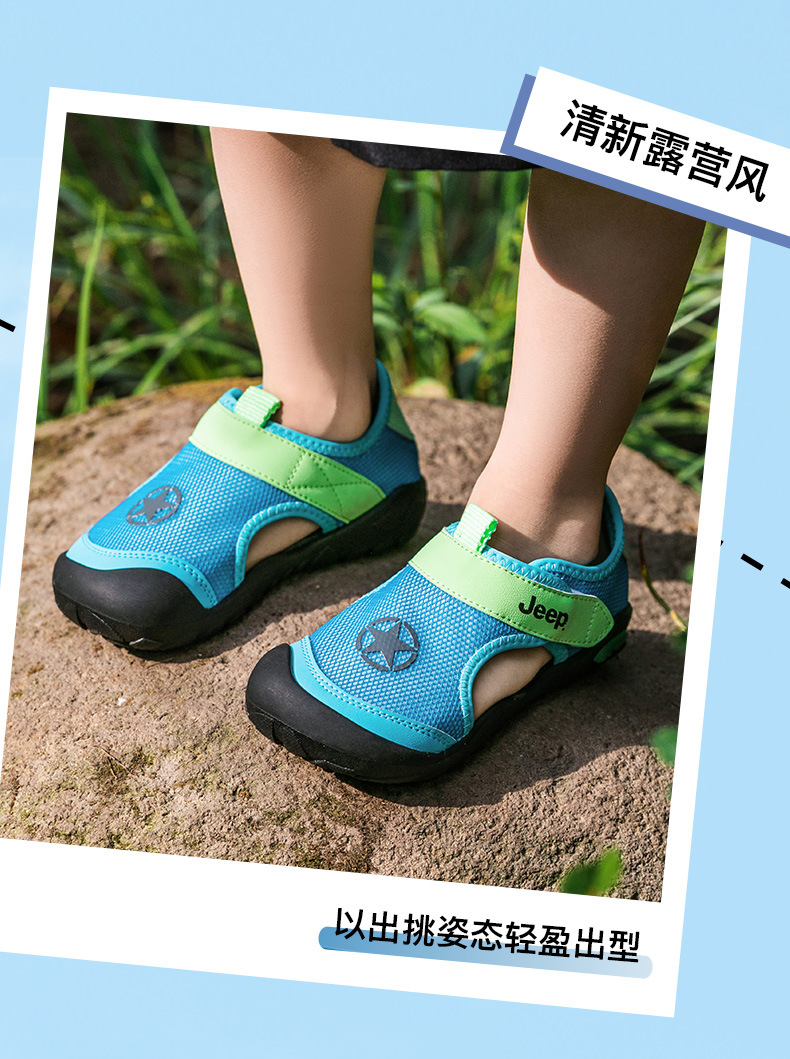 지프 어린이 신발 2025 여름 메쉬 새로운 어린이 발가락 발가락 안티 킥 부드러운 바닥 어린이 신발 소년과 소녀 비치 샌들스토어 가기
