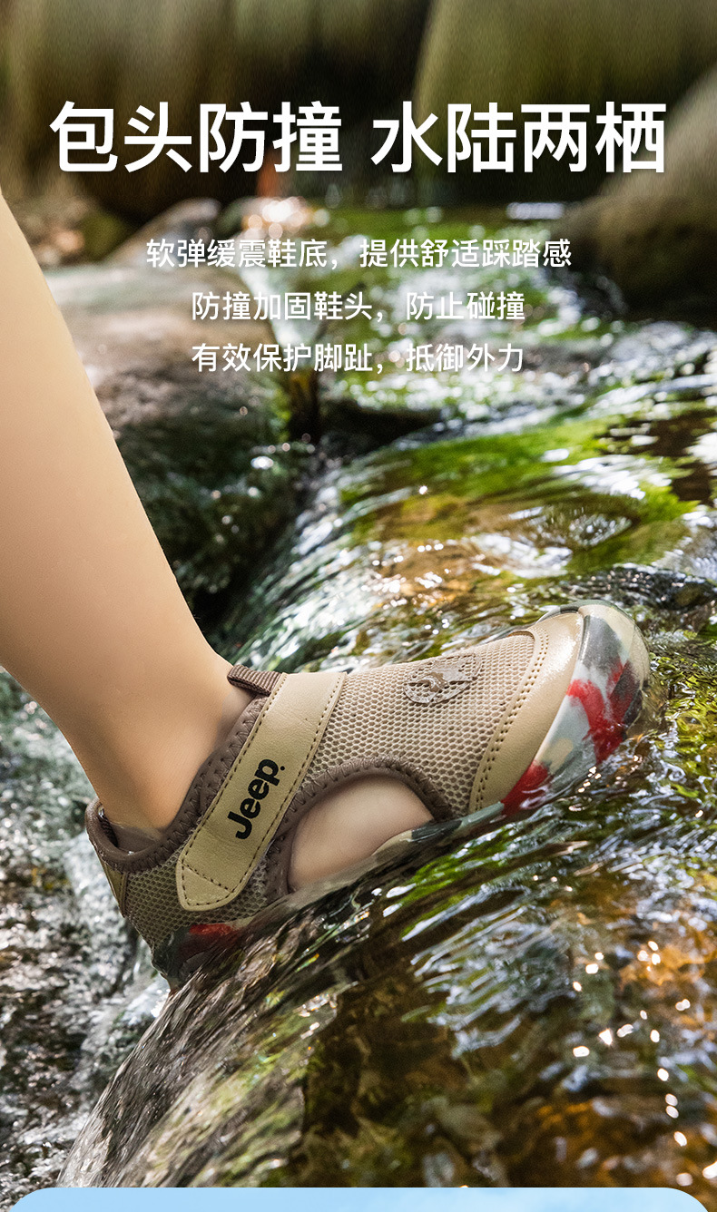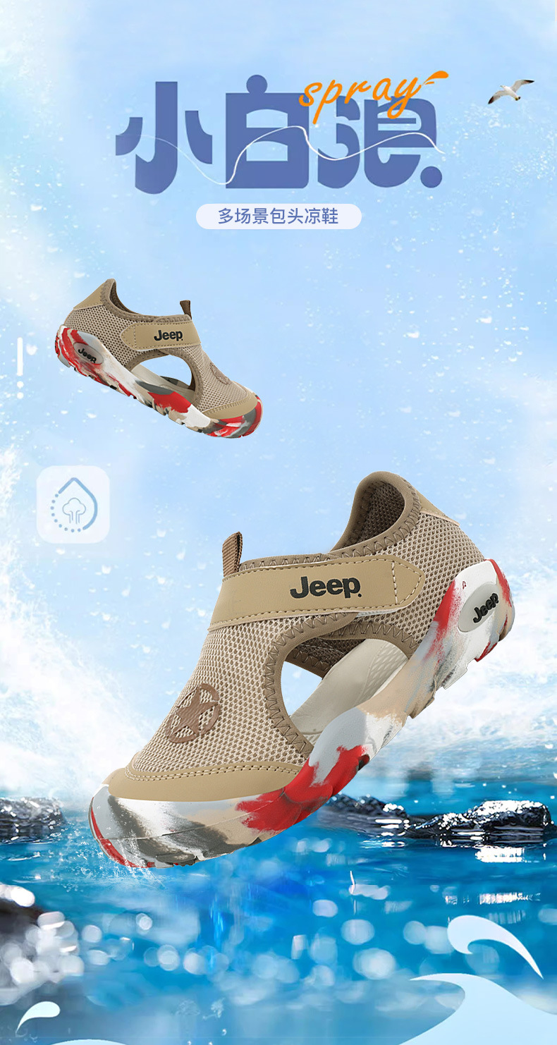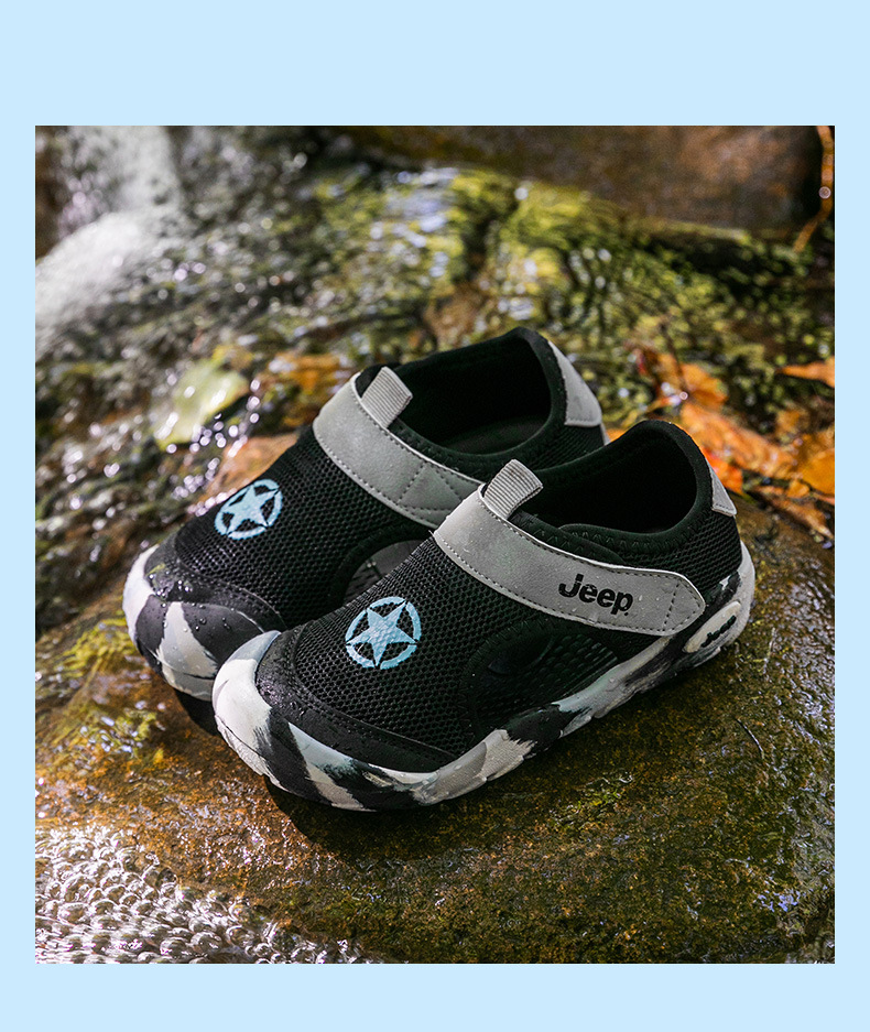 지프 어린이 신발 2025 여름 메쉬 새로운 어린이 발가락 발가락 안티 킥 부드러운 바닥 어린이 신발 소년과 소녀 비치 샌들스토어 가기