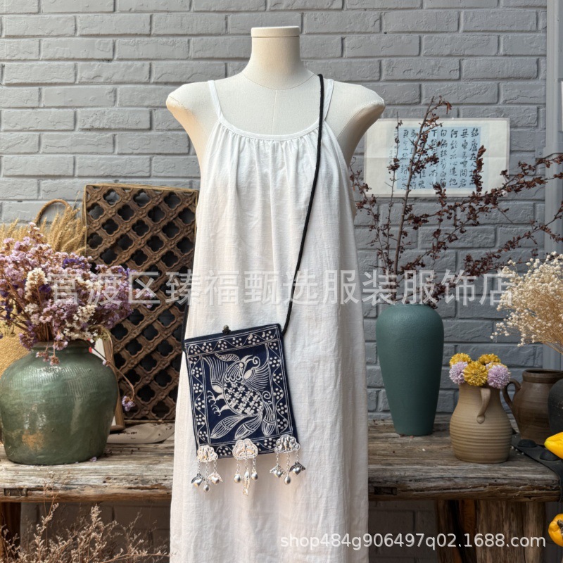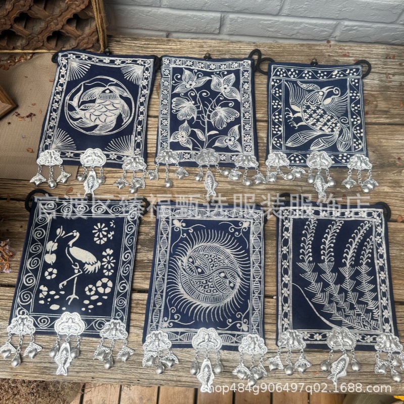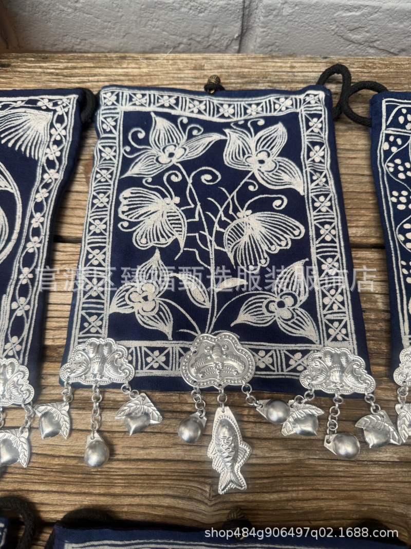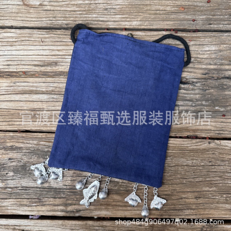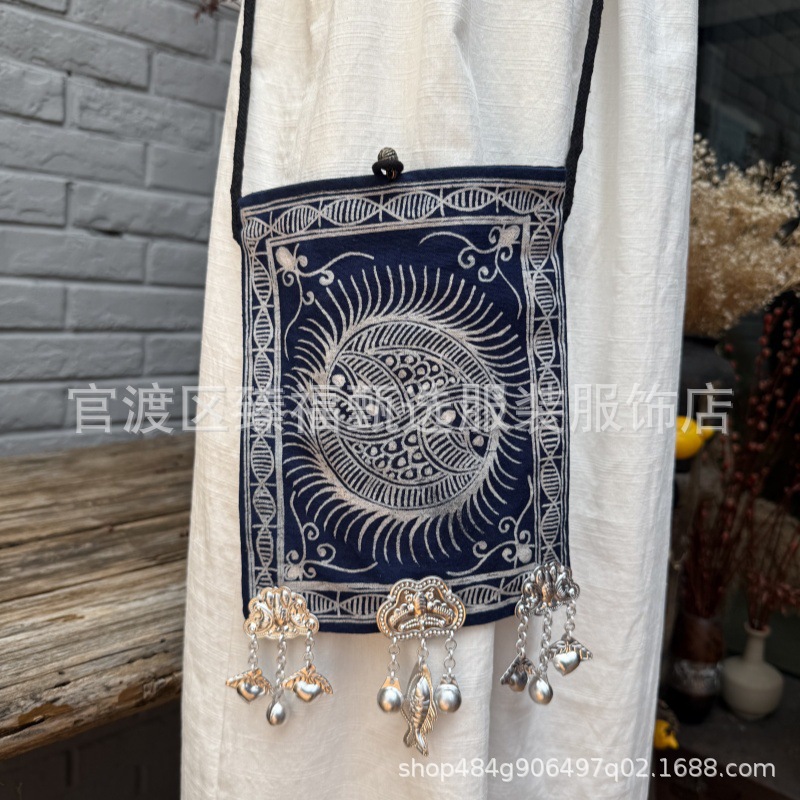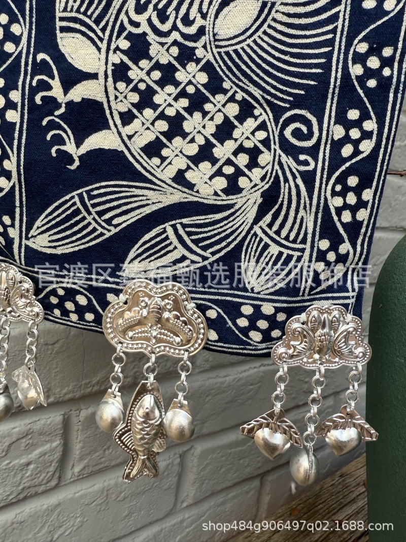 棉麻粗布土布手工画蜡染+苗银流苏坠子